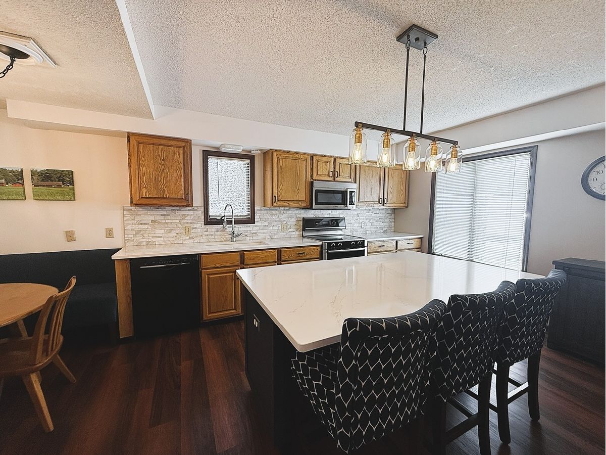 One of a kind family home in a quiet NE Dixon neighborhood! This move-in ready home was custom built by an architect in 1977 for his family, and has been tastefully updated throughout the years to keep its unique charm. Home features a large eat-in kitchen with updated quartz counters, windows, island, built-in nook area, plus new luxury vinyl plank flooring that extends throughout the main floor. There is a formal dining room and a spacious, bright family room with a masonry brick woodburning fireplace as well as patio doors to the screened in porch overlooking the private back yard. To finish the main floor, there is also a new bathroom with an upscale walk-in shower, along with a den/home office. Upstairs, there are 3 large bedrooms with built-in desks and nicely sized closets, and a full bath which has updated fixtures & countertop as well as the 2nd floor laundry. The primary suite has a newer bathroom with walk-in shower and a huge walk in closet. There is a walk-in storage room on the 2nd floor that could be finished as well. The basement is partially finished with a game room & family room. It is plumbed for a bathroom and has great storage. New light fixtures & ceiling fans throughout home, as well as many new Anderson exterior windows and a new front door (with new side lights coming soon!). 2 car attached garage. You don't want to miss out on this wonderful home in great location near the river- call today!