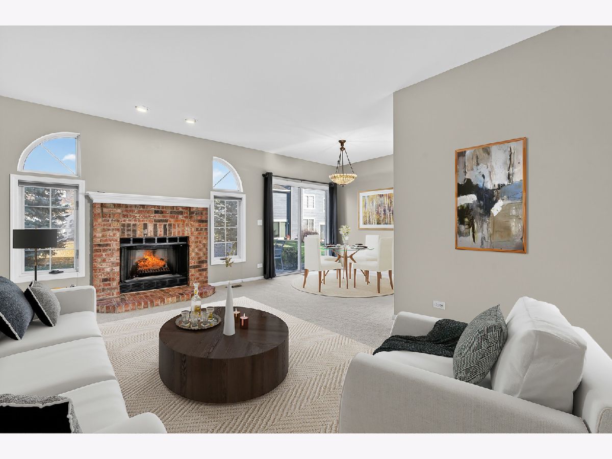 Outstanding opportunity in south Palatine with this top-notch 2-bedroom townhouse in Parkside on the Green. Great layout -- enjoy open living-to-dining with the right-sized kitchen & breakfast nook on the main level, complete with powder room. Find two spacious bedrooms on the second floor with a large full bath & laundry services all upstairs for total ease-of-use privacy. Lovingly maintained by the longtime owner, there's nothing to do but move right in. The gas fireplace anchors your living space. Sliders carry you from interior dining and prep areas out to the private patio, nestled up to green space. Outside, enjoy the recently revamped exterior. Everything pops. The heated garage showcases an epoxy floor and enough bonus space for extra storage. Just down the Palatine Trail from beautiful Birchwood Park (swimming, basketball, baseball / softball, tennis & more), this is a prime location. Just a few blocks to Harper College and Fremd High School, Crunch Fitness and shopping sit adjacent to the property. With nearby businesses & roads in all directions, it's the perfect mix to call home!