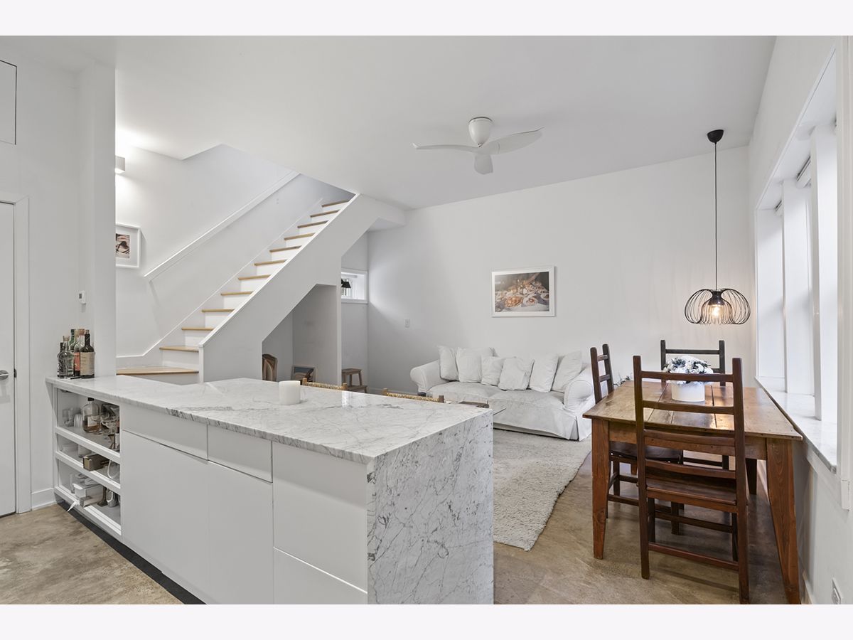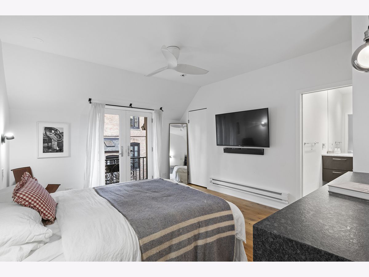 Tucked away within a serene, landscaped courtyard, this rarely available two-story coach house offers a private retreat in the heart of Chicago's coveted Gold Coast. Featuring 1 bedroom and 1.5 bathrooms, the home blends historic neighborhood charm with recent modern updates and true city convenience-just steps from the lakefront, beaches, Michigan Avenue, parks, dining, shopping, and nightlife. The main level showcases soaring ceilings, an open and airy layout, and abundant natural light from oversized east-facing windows overlooking the private gated courtyard. A thoughtfully designed kitchen renovation anchors the space with sleek white cabinetry, stone countertops, high-end stainless steel appliances, island seating, and generous storage, complemented by a convenient first-floor powder room. Upstairs, the expansive primary suite includes space for a home office, a professionally organized walk-in closet with additional loft storage, and a contemporary en-suite bath with a tiled walk-in shower and heated tile flooring. A charming Juliet balcony enhances the upper level with courtyard views and sunlight, nearby parking options, and excellent transit access complete this home that truly lives like a private single-family residence in one of the city's most desirable locations.