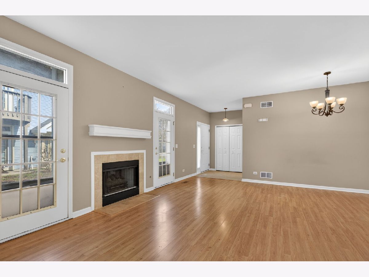 Welcome to this ground level, end unit condo in the highly desirable community of The Fields! Offering the perfect blend of comfort, convenience, and low-maintenance living, this home is ideal for today's lifestyle. Step inside to find a spacious layout featuring 2 bedrooms and 2 full bathrooms, including a private primary suite complete with a charming window bench, walk-in closet, and its own full bath. Both bedrooms feature brand new large windows, allowing for abundant natural light throughout the home. The large family room with a cozy fireplace flows seamlessly into the dining area, creating an inviting space perfect for everyday living and entertaining. Enjoy the ease of an attached 1-car garage, along with the added privacy that comes with being an end unit. Ideally located just minutes from Downtown Naperville, you will love the proximity to upscale shopping, dining and entertainment. You are also close to Fox Valley Mall and the vibrant Block 59, known for its exciting lineup of new restaurants and retail. Enjoy easy, low-maintenance living in a prime location-schedule your private showing today!