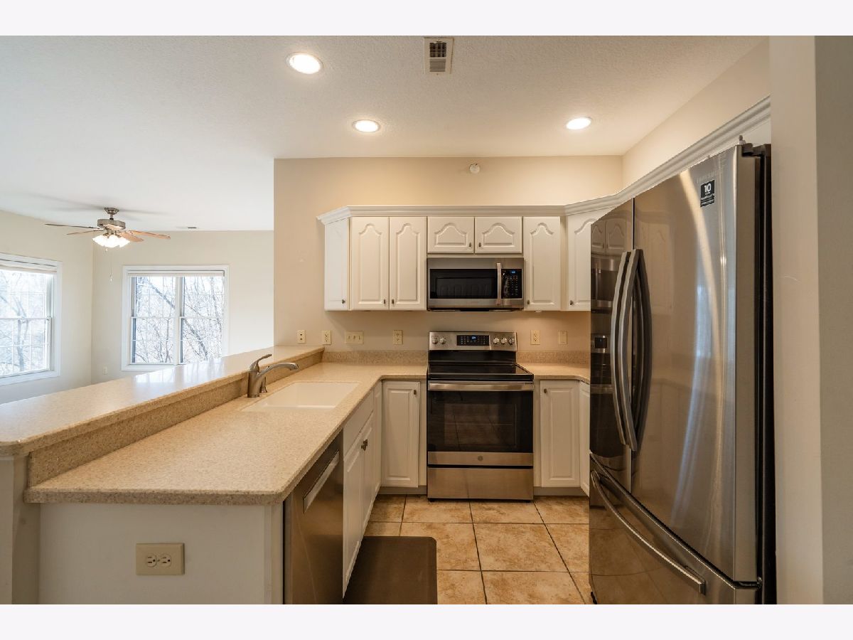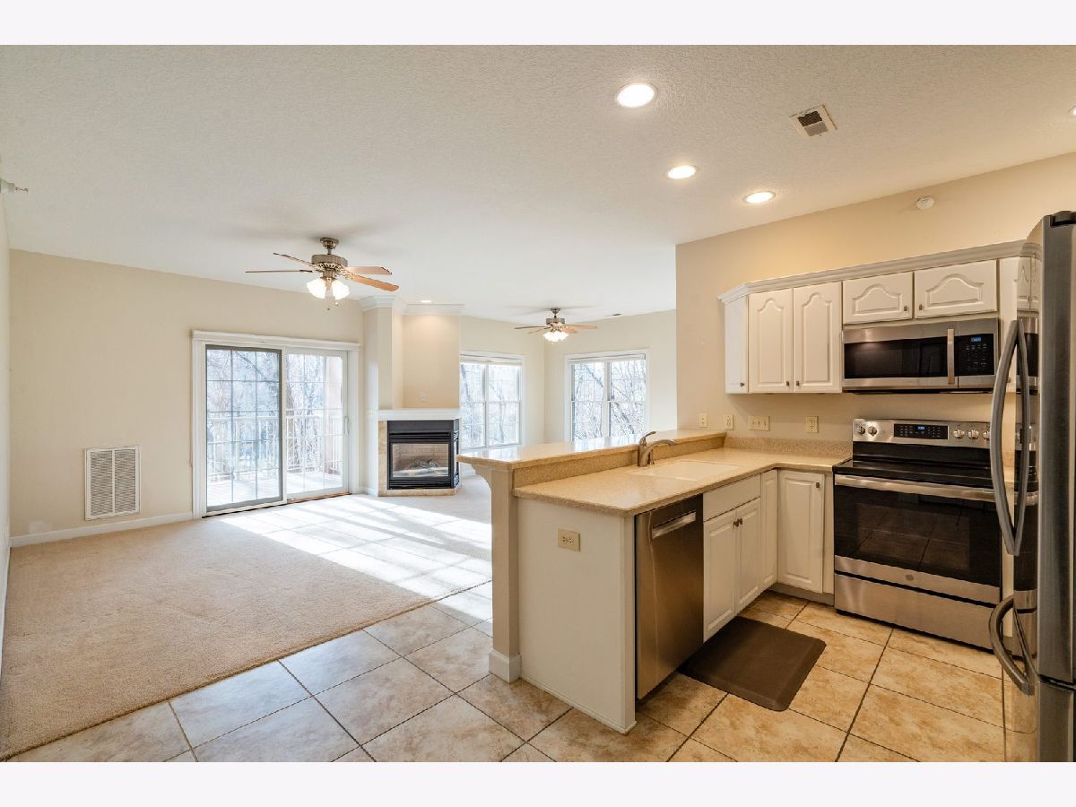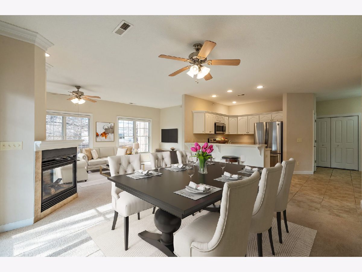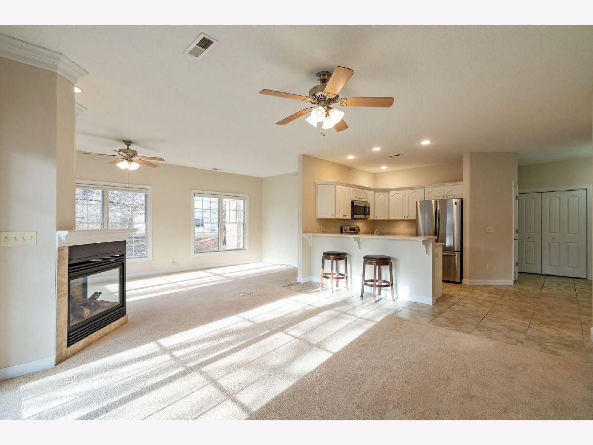 This main floor, zero-entry, two-bedroom condo in Bettendorf boasts a light-filled, expansive layout, nestled on a lot offering great seclusion thanks to mature trees. The open-concept design features an eat-in kitchen with solid surface counters, white cabinets, and stainless steel appliances. The living and formal dining areas are perfect for hosting, complemented by a two-sided fireplace and a lovely deck. The primary bedroom is large, with a walk-in closet, dual vanities, and a walk-in shower. The second bedroom is also spacious, with easy access to the hall's full, walk-through bath. An AHS 1-year home warranty - Shield Plus is included. The property has been pre-inspected. Additionally, the seller is offering a $3,000 credit towards new flooring.