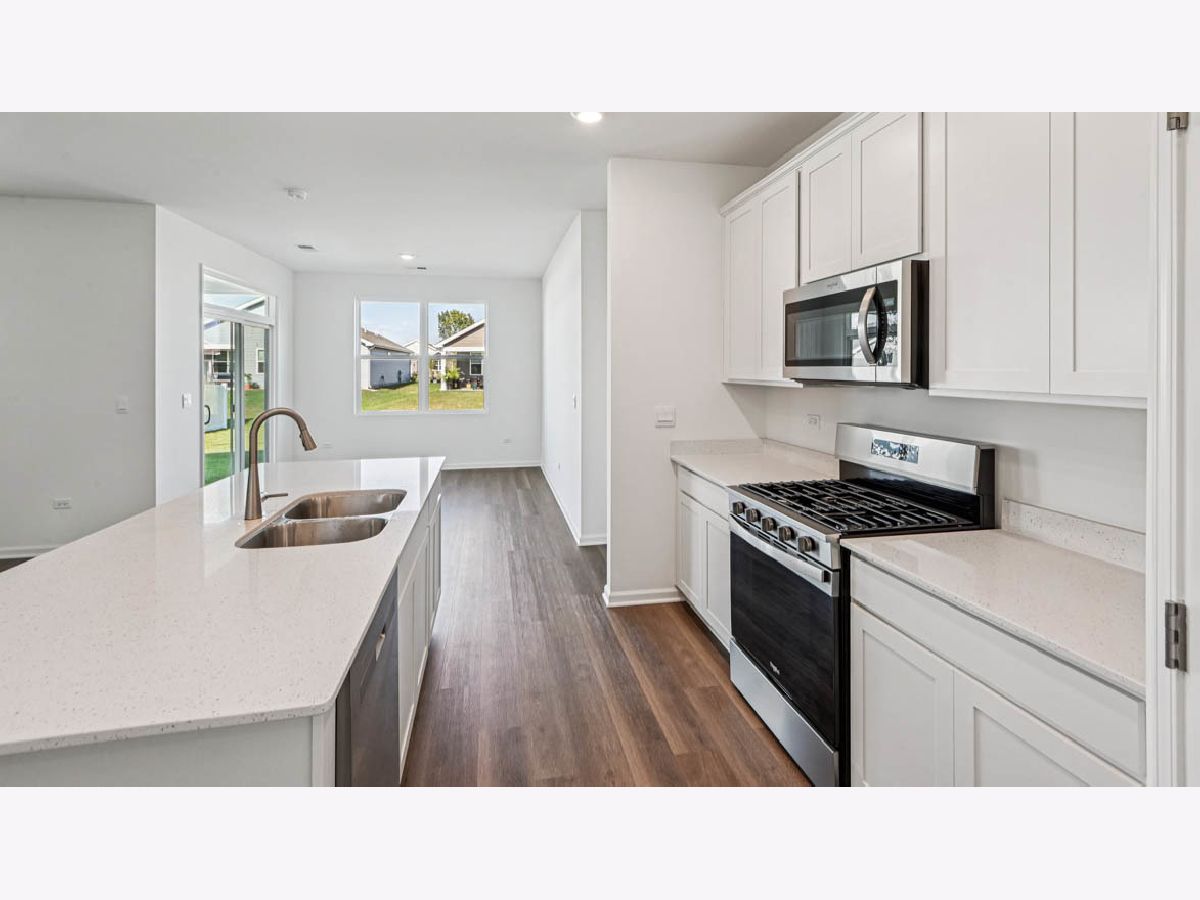 Envision yourself at 1228 Wild Tulip Circle in Bartlett, Illinois, a beautiful new home in The Grasslands community. This ranch home is move-in ready NOW! Scenic homesite includes a fully sodded yard and covered back patio. The Bristol floor plan offers 1,744 square feet of living space with a flex room,2 bedrooms, 2 baths, and 9-foot ceilings. When you first enter the home, there is a secondary bedroom, full bath, and flex room. Down the hall, you will walk into the open concept great room and kitchen. The kitchen layout includes a large island with an overhand for stool, 42-inch designer cabinetry with crown molding and soft close drawers. Additionally, the kitchen features a walk-in-pantry, modern stainless-steel appliances, quartz countertops, and easy-to-maintain luxury vinyl plank flooring. Enjoy your private get away with you spacious primary bedroom and en suite bathroom with a raised height dual sink, quartz top vanity, and walk in shower with clear glass shower doors. Future amenities include walking paths and bike paths. The Grasslands is centrally located between Interstates I-90 and I-88, just a short, 5-minute drive to the Metra, making commuting easy. This charming, historic town evokes a family atmosphere with countless options for shopping, dining and entertainment. All Chicago homes include our America's Smart Home Technology, featuring a smart video doorbell, smart Honeywell thermostat, smart door lock, Deako smart light switches and more. Exterior photo of actual home. Photos are of similar home and model home. Actual home built may vary.