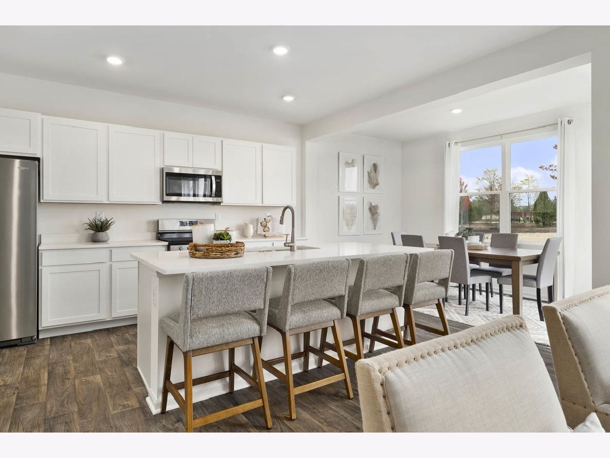Envision yourself at 123 Cornerstone Crossing, Hampshire, Illinois, a beautiful new home in our Prairie Ridge community. This two-story home will be ready for a spring move-in. This home site includes a fully sodded yard. This Meridian plan offers 1,847 square feet of living space with 4 bedrooms, and 2.5 baths. Entertaining will be easy in this open-concept kitchen and family room layout with a large island with an overhang for stools. Additionally, the kitchen features a walk-in pantry, modern stainless-steel appliances, quartz countertops, and easy -to-maintain luxury vinyl plank flooring. Enjoy your private get away with your large primary bedroom and ensuite bathroom with a raised height dual sink, quartz top vanity, and walk-in shower with fiberglass surround and clear shower doors. Convenient walk-in laundry room,3 additional bedrooms with a full second bath with dual vanity and a linen closet complete the second floor. All Chicago homes include our America's Smart Home Technology. Photos are of similar home; actual home may vary.