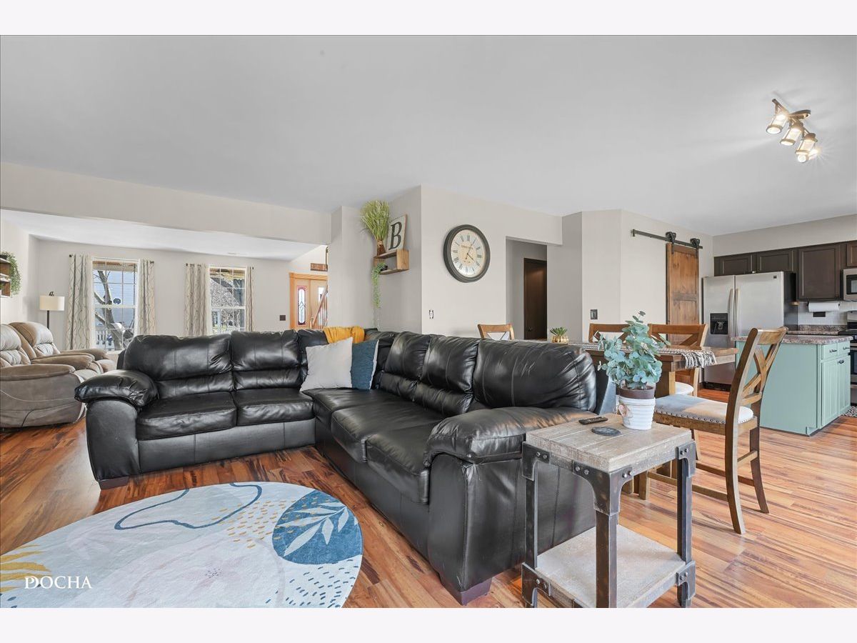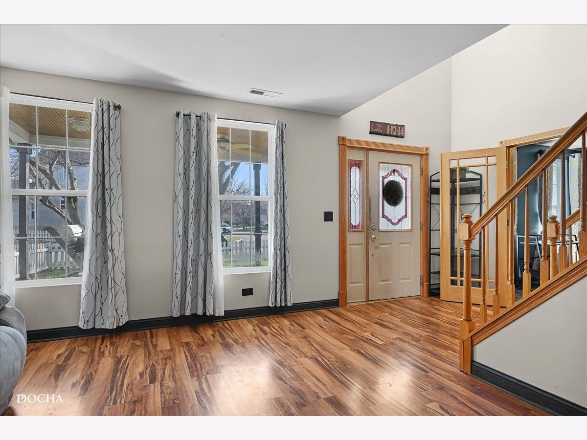 Welcome home to this charming property featuring a classic white picket fence that welcomes you to an oversized covered front porch complete with ceiling fans-perfect for enjoying a quiet morning coffee or unwinding in the evening at sunset. Step inside to a warm and inviting two-story foyer that opens into a spacious, open-concept floor plan with beautiful wood laminate flooring throughout the main level. To the left, you'll find a versatile room enhanced with custom French doors, currently used as a private den and office-ideal for today's flexible living needs. The living room flows seamlessly into the expansive family room, creating the perfect space for gathering and entertaining. The family room opens to the eat-in kitchen, which features abundant cabinet and counter space, a center island, and a pantry with a custom sliding barn door, new microwave (2025), dishwasher and fresh paint. A convenient half bath and a laundry/mudroom complete the main level, offering direct access to the attached two-car garage with ample storage space and asphalt driveway. Upstairs, you'll find five generously sized bedrooms, including a spacious primary suite with vaulted ceilings, a walk-in closet, and a private full bath featuring double sinks and a separate shower. The additional full hall bath down the hallway is also nicely sized with double sink and vanity with storage. Each bedroom offers carpeting and window blinds for added privacy. This home is packed with updates, including a brand-new furnace (February 2026), roof (2019) new trim throughout (2025) . Step outside to enjoy the backyard featuring a concrete patio, gazebo, fenced yard, and a dedicated dog run with gates-perfect for outdoor entertaining and pet lovers alike. Walking distance to Downtown stores, restaurants and community events! With nine total rooms and a thoughtfully designed layout, this well-maintained two-story home offers the perfect blend of space, comfort, and functionality-ready to welcome its next owner's home!