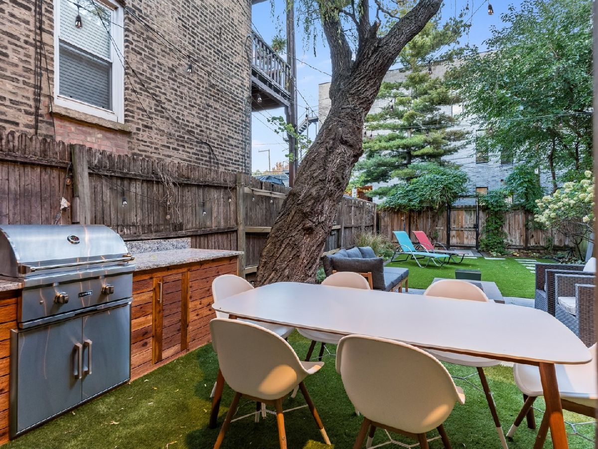 Rare Single-Family Home in the Heart of Wicker Park with Private Parking & Designer Outdoor Living A truly rare opportunity to own a 2,912 square foot SINGLE FAMILY STANDALONE home in one of Chicago's most vibrant neighborhoods. Located on Damen Avenue just one block north of Division Street, this exceptional property offers the space, privacy, and lifestyle that are incredibly difficult to find in Wicker Park. The home features 4 bedrooms and 3 full bathrooms, along with a recently remodeled interior showcasing brand new hardwood flooring throughout. Offered fully furnished and fully stocked, this property is completely turnkey-perfect as a primary residence, second home, or investment opportunity. One of the standout features is the rare private parking area accommodating 2-3 vehicles, a true luxury in this location. Even more impressive is the professionally designed fenced backyard, creating a private outdoor retreat rarely found in the city. The space has been thoughtfully upgraded with a premium turf lawn, professional landscaping, and multiple entertainment zones, including a seating area with fire pit, dining table and chairs, sun loungers, and a fully equipped outdoor kitchen featuring a natural gas grill, granite countertops, and custom-built wood grill enclosure. Situated in the heart of Wicker Park, the home is just steps from the energy of Division Street and is walkable to countless restaurants, boutiques, coffee shops, parks, and nightlife in Wicker Park, Bucktown, and Logan Square. Commuting is effortless with quick access to the Blue Line train and multiple public transportation options. Opportunities to own a move-in ready single-family home with private parking and a fully built-out backyard oasis in this location are exceptionally limited. This is city living at its finest-combining space, convenience, and lifestyle in one remarkable property.