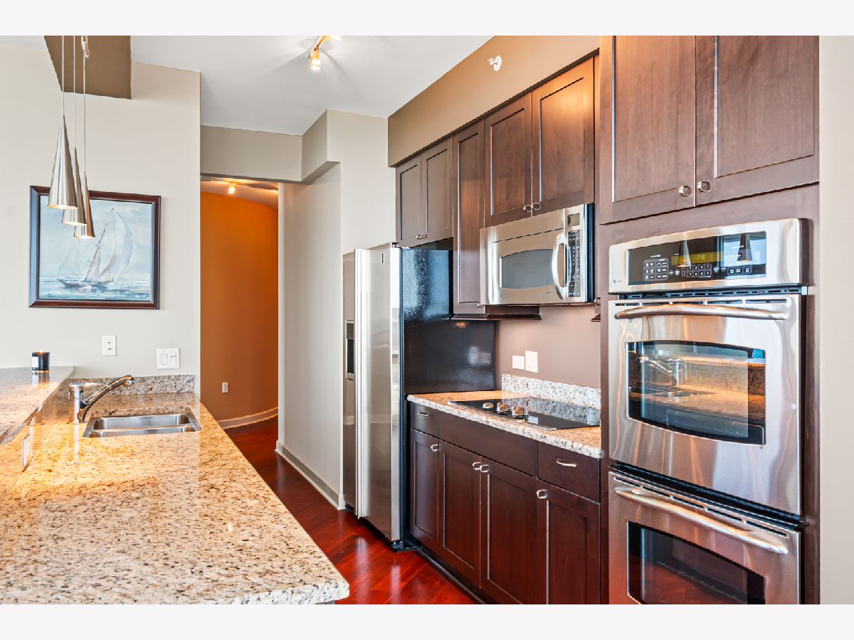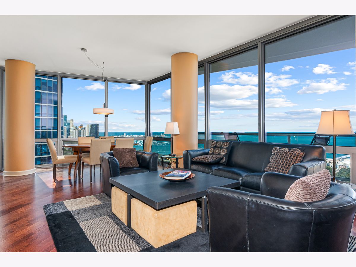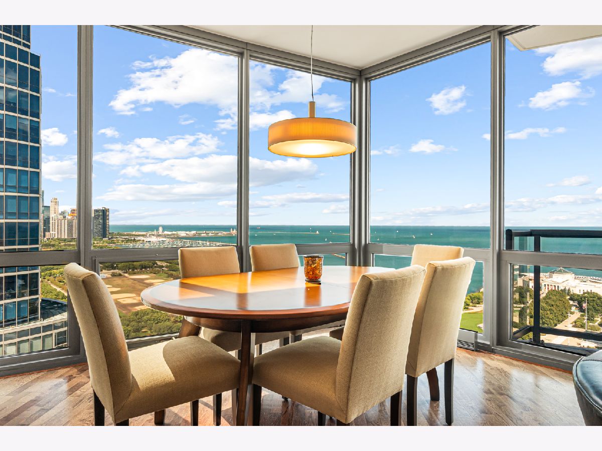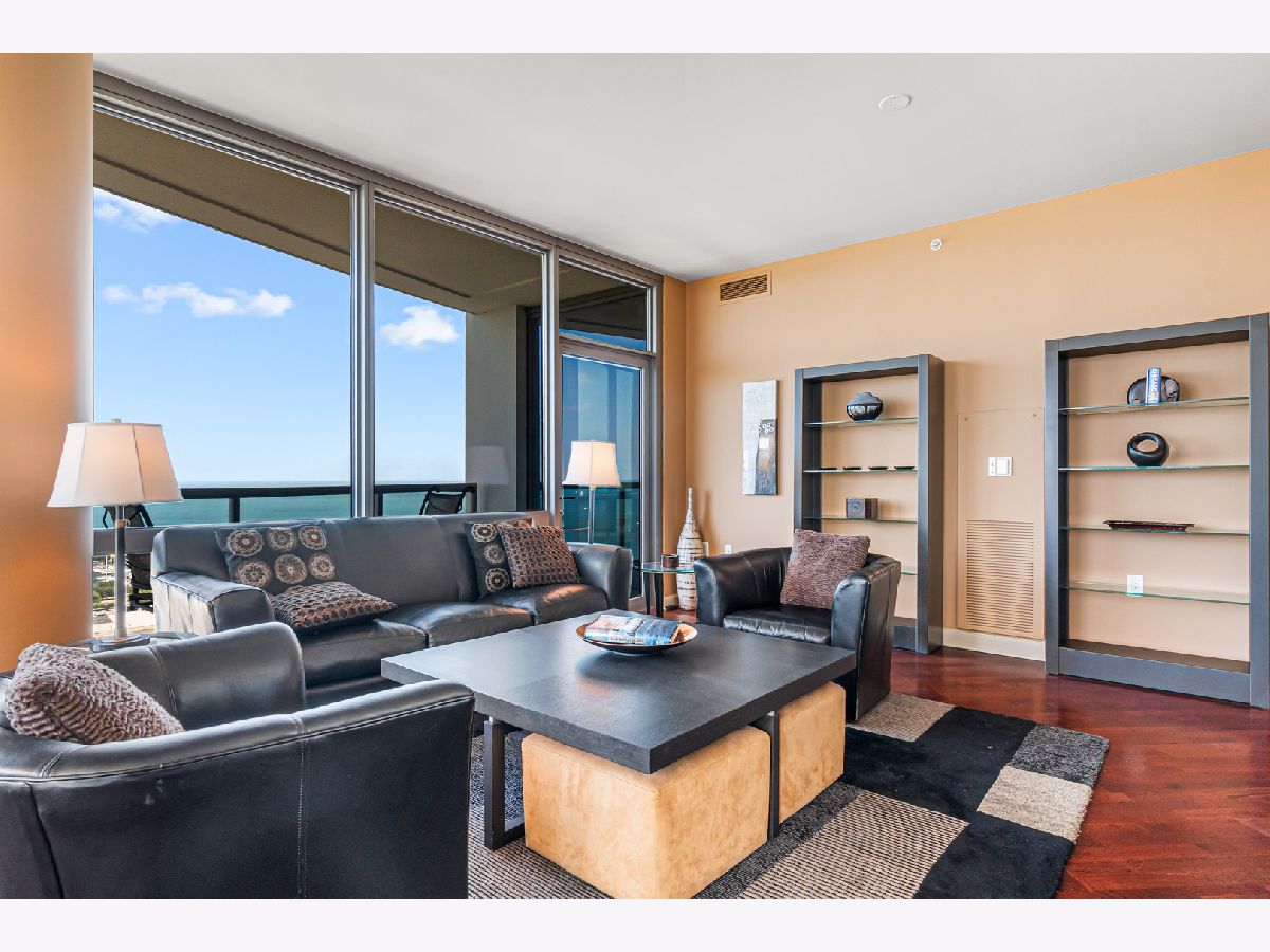 Experience stunning north and east views overlooking the Museum Campus, Lake Michigan, and the Chicago skyline from this high-floor residence in the coveted "01" tier at Museum Park. This spacious 2 bedroom, 2 bath plus den home features an open layout with hardwood floors throughout, floor-to-ceiling windows, and a private balcony with sweeping lake and city views. The den is ideal for a home office or flex space. The kitchen offers granite countertops, stainless steel appliances, double ovens, and ample cabinet space, opening to a bright dining area surrounded by glass. The primary suite includes a walk-in closet and en-suite bath, while the second bedroom offers generous proportions and equally impressive views. Additional highlights include in-unit laundry, abundant storage, and one of the most desirable floor plans in the building. Located in the heart of the South Loop, Museum Park offers full amenities, steps to the lakefront, museums, dining, and public transit. Two side by side parking spots sold separately.