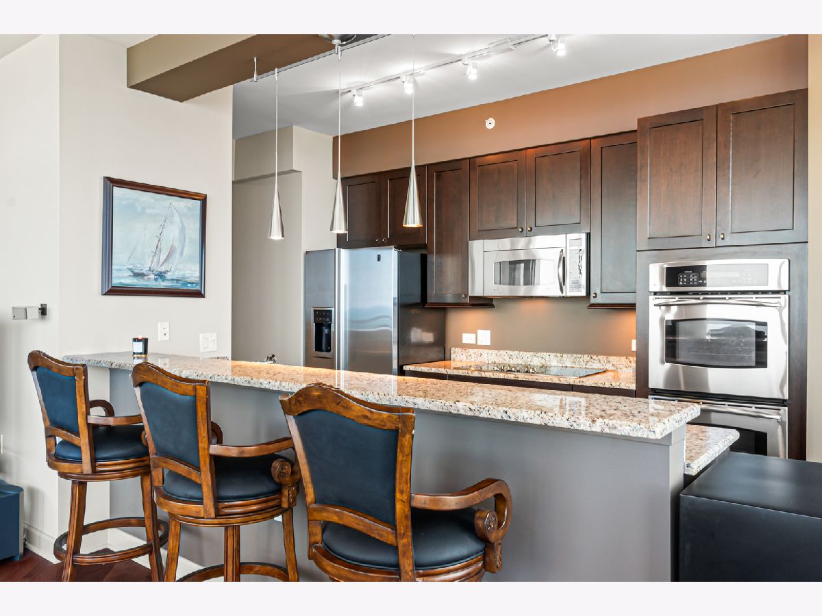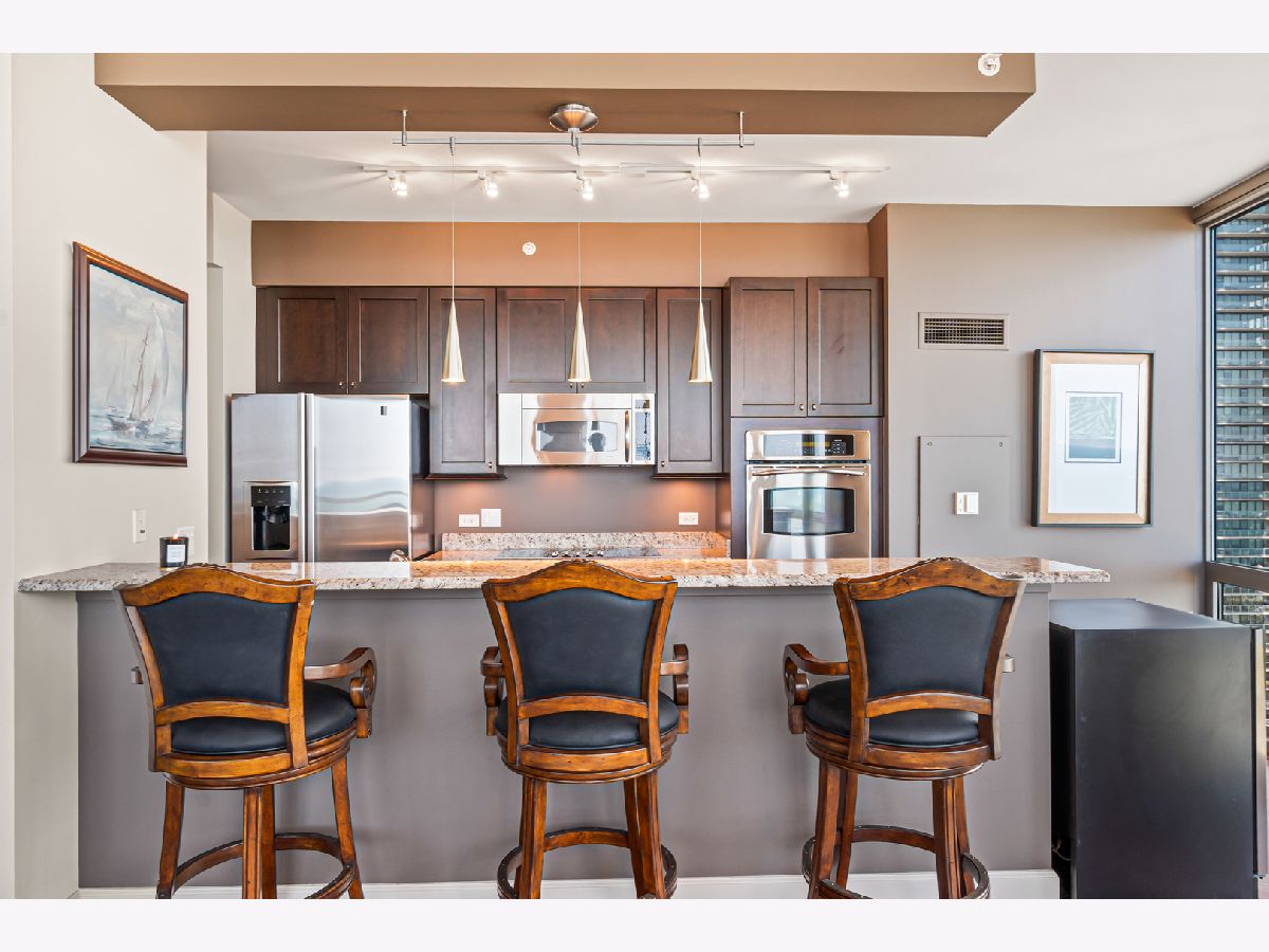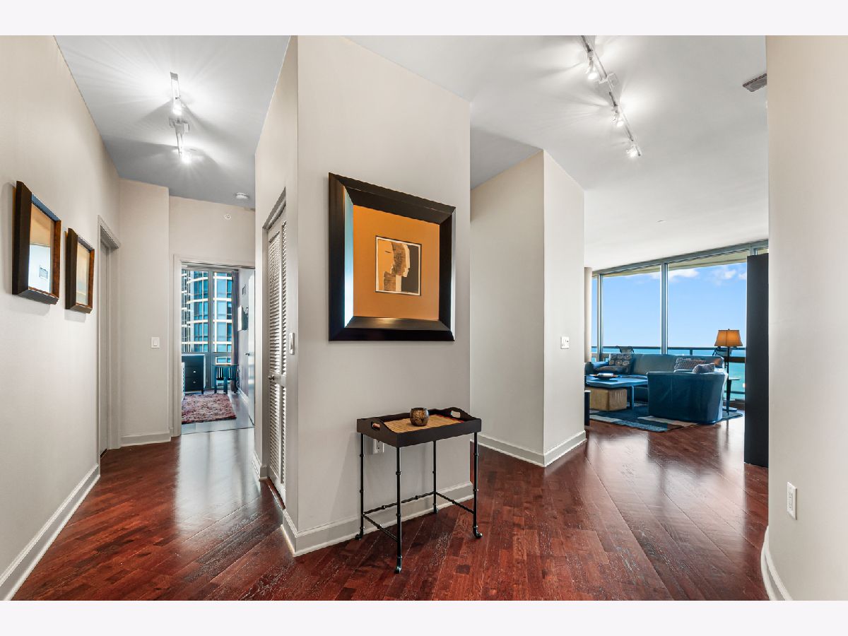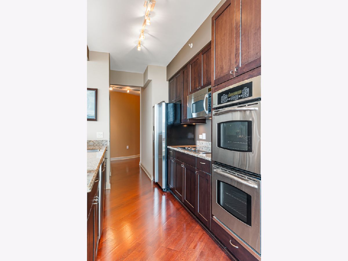 Experience stunning north and east views overlooking the Museum Campus, Lake Michigan, and the Chicago skyline from this high-floor residence in the coveted "01" tier at Museum Park. This spacious 2 bedroom, 2 bath plus den home features an open layout with hardwood floors throughout, floor-to-ceiling windows, and a private balcony with sweeping lake and city views. The den is ideal for a home office or flex space. The kitchen offers granite countertops, stainless steel appliances, double ovens, and ample cabinet space, opening to a bright dining area surrounded by glass. The primary suite includes a walk-in closet and en-suite bath, while the second bedroom offers generous proportions and equally impressive views. Additional highlights include in-unit laundry, abundant storage, and one of the most desirable floor plans in the building. Located in the heart of the South Loop, Museum Park offers full amenities, steps to the lakefront, museums, dining, and public transit. Two side by side parking spots sold separately.