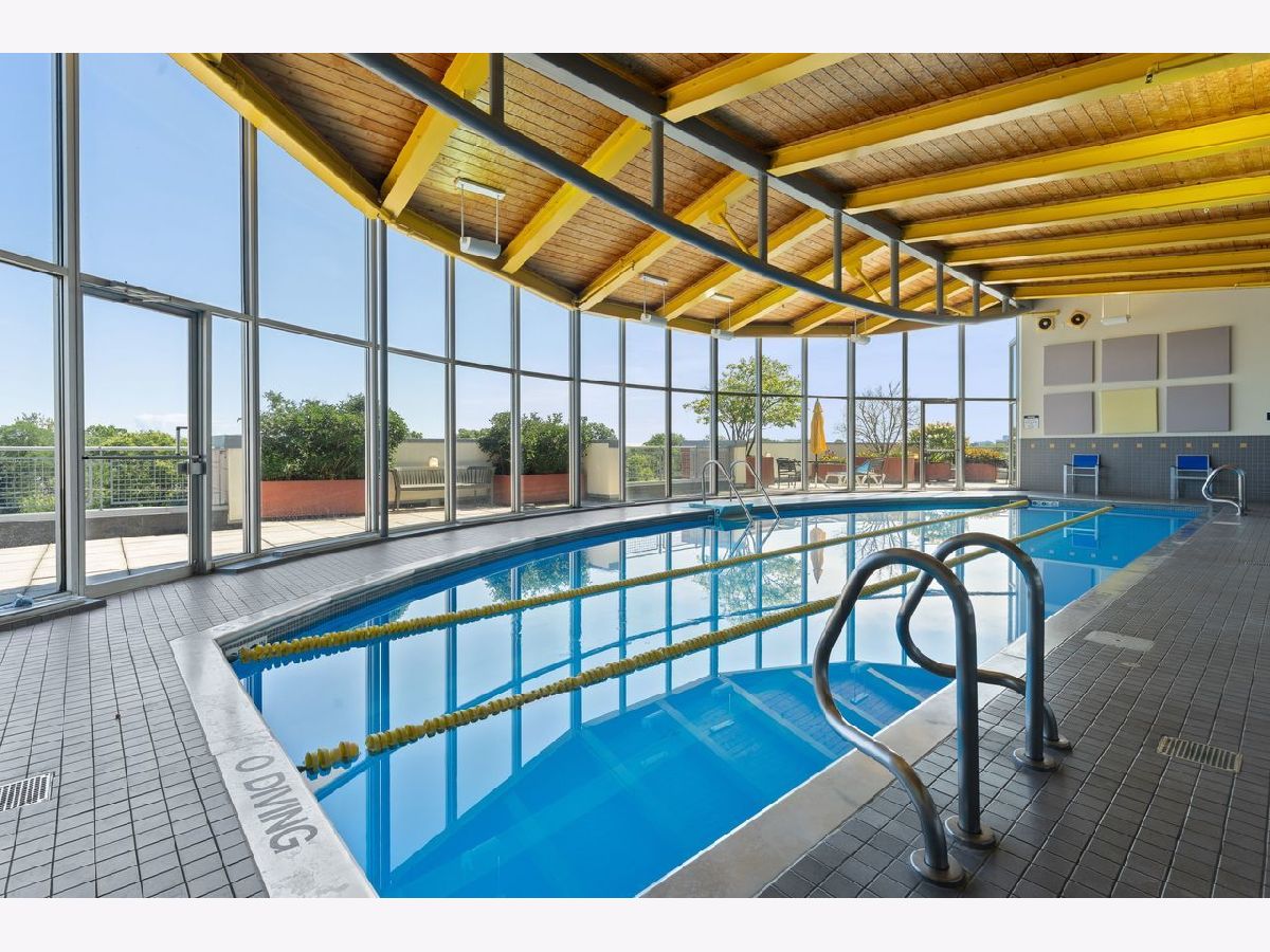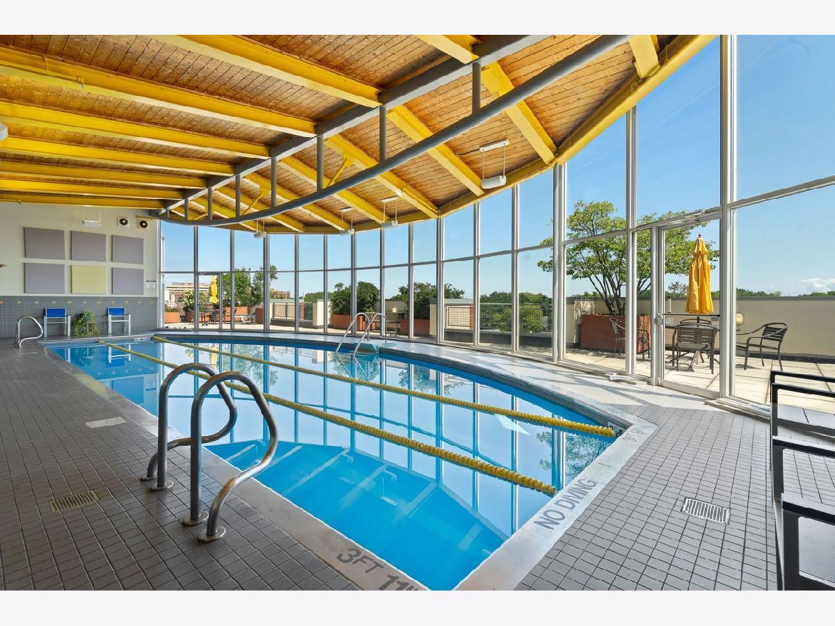 Enjoy living in a south facing unit with its own balcony. Fourth floor units have a higher ceiling than the rest of the building. The living area has room for a dining table, and the kitchen has a breakfast bar for more casual dining. The bedroom has great walk-in closet space and also has south views. Enjoy the convenience of owner-controlled heat and air conditioning, plus in-unit washer and dryer. Carpeting was replaced two years ago. The unit includes a heated parking space (184) and a storage locker on the upper garage level. The driveway is heated for easy winter access. The complex has an indoor pool, exercise, and party rooms, whirlpool plus sundeck. Basic extended cable and internet are included in the assessment. Dempster/Chicago Avenue offers easy acce ss to transportation with Purple Line around the corner and Metra 3 blocks away. Shop for food at nearby Jewel and Trader Joe's. Great restaurants, coffee shops and gelato are nearby, also a bike shop, jewelry stores and pottery shops. Lake Michigan is four blocks away.
