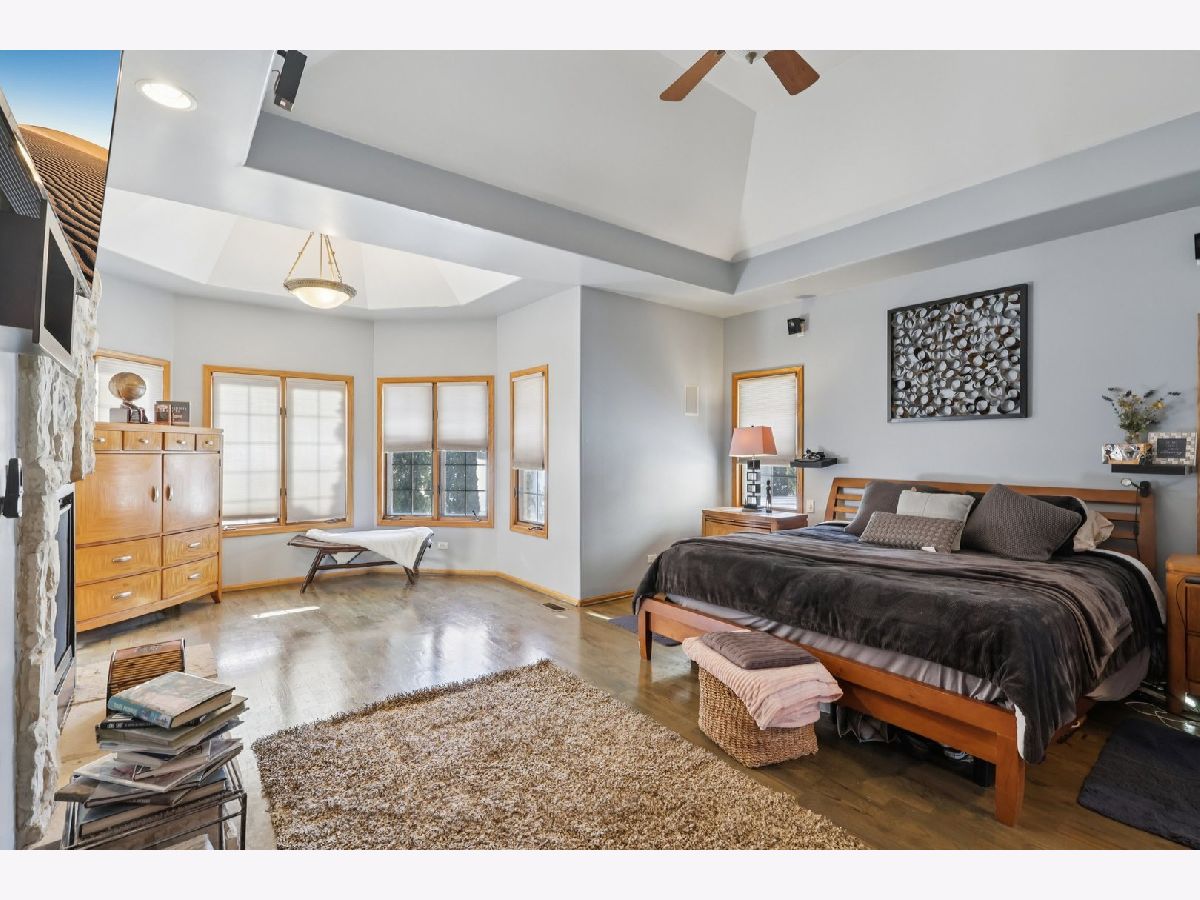 Welcome home to this Williamsburg Place gem, where a welcoming two-story foyer sets the tone for the spacious layout. The private living and dining rooms are ideal for entertaining, with the dining room showcasing elegant tray ceilings. The inviting two-story family room is perfect for relaxing around the fireplace. The spacious eat-in kitchen offers abundant cabinet and countertop space and features new appliances, a large island with breakfast bar, pantry, and a butler station. The first-floor primary suite is a true retreat, highlighted by vaulted ceilings, a fireplace, generous closet space, and a private en-suite bathroom with a freshly tiled shower. The primary suite also features access to the rear patio. Upstairs, brand-new carpet runs throughout and leads to three additional generously sized bedrooms, including a secondary suite with vaulted ceilings and a private bathroom. The deep-pour basement includes a modern finished full bathroom and two additional office spaces, while the remaining area has been studded and plumbed with copper piping, offering excellent potential for future finishing with 2,200 SqFt of additional space. The backyard provides a private oasis with a large stone patio. A three-car garage offers ample space for vehicles and storage and includes a bonus interior stairwell with direct access to the basement. Notable updates include new architectural shingles in 2023, HVAC in 2019, and upgraded exterior brickwork with tuckpointing and custom detailing, including basket-weave patterns and gray keystones that enhance the exterior, particularly around the windows with soldiered sides.