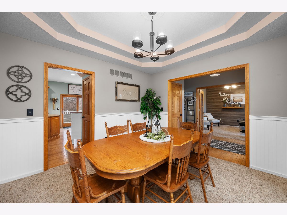Welcome to your own private retreat! Nestled on 1.05 acres, this spacious home offers the perfect blend of comfort, functionality, and room to grow. Inside, you'll find four generously sized bedrooms, including a beautiful primary suite designed for relaxation with ample space and privacy. The layout provides both everyday comfort and great entertaining flow. The fully finished basement expands your living space, offering endless possibilities - whether you envision a home theater, game room, workout space, or additional family room. It's move-in ready and adds incredible versatility to the home. Step outside and enjoy the freedom of over an acre of land - perfect for outdoor entertaining, gardening, play space, or simply enjoying peaceful country-style living with room between you and the neighbors. Even better, the property includes access to a nearby lake, where you can spend your free time fishing, canoeing, or simply enjoying the peaceful water views. It's a wonderful opportunity to embrace a slower pace and create lasting family memories. If you're looking for space, privacy, and a home that offers both comfort and flexibility, this property checks all the boxes. Architectural roof 2018, Anderson Windows throughout, 2 stall garage, with 3rd stall separated. New garage doors 2025 and with Ultra quite shaft driven openers, Chamberlain my Q. Listing agent related to seller.
