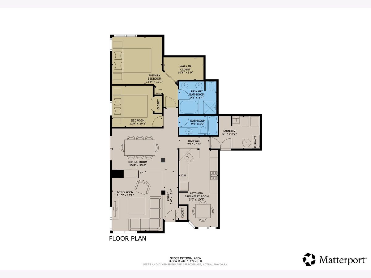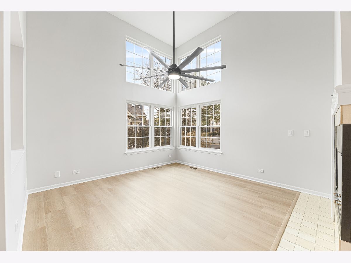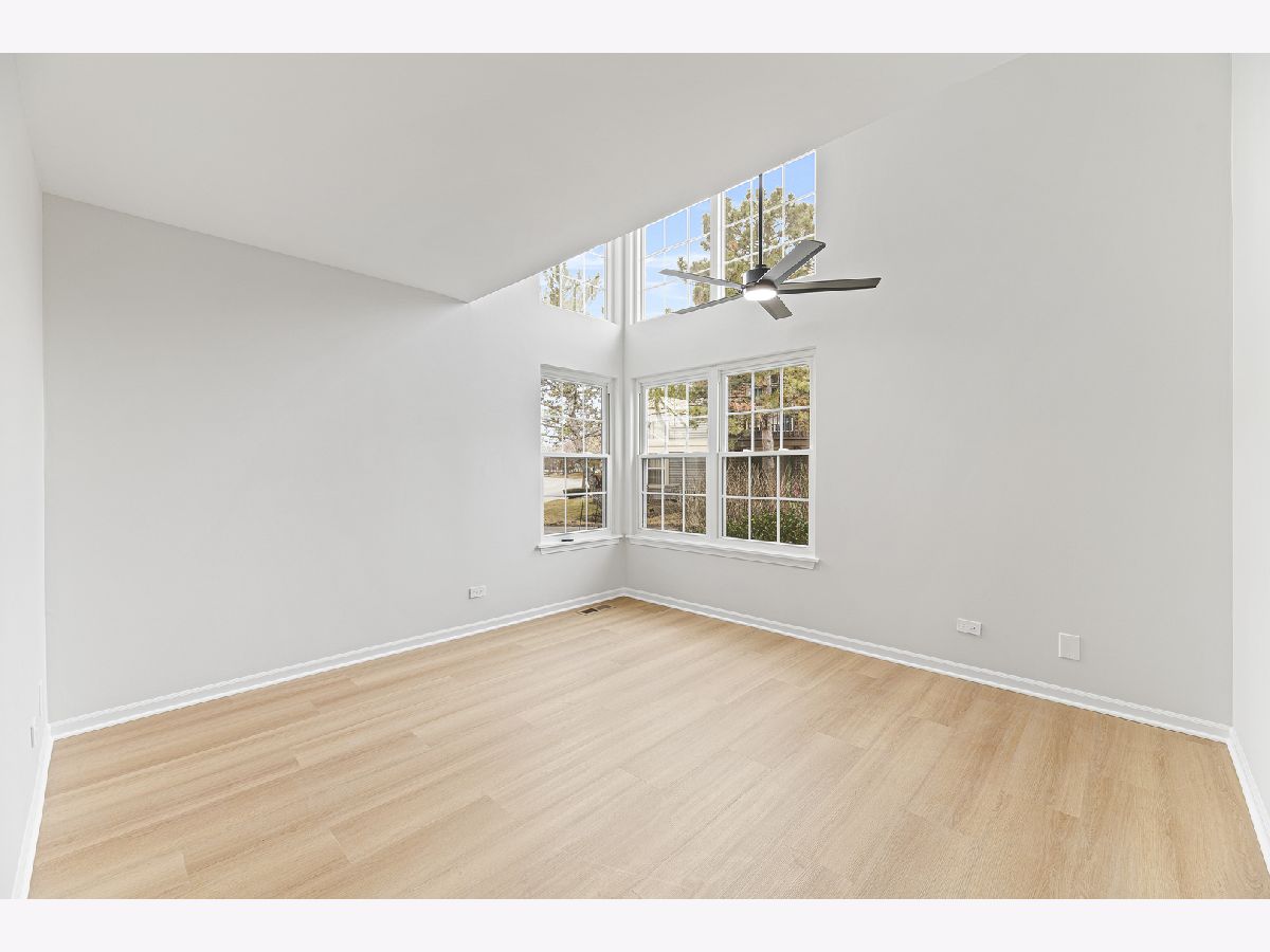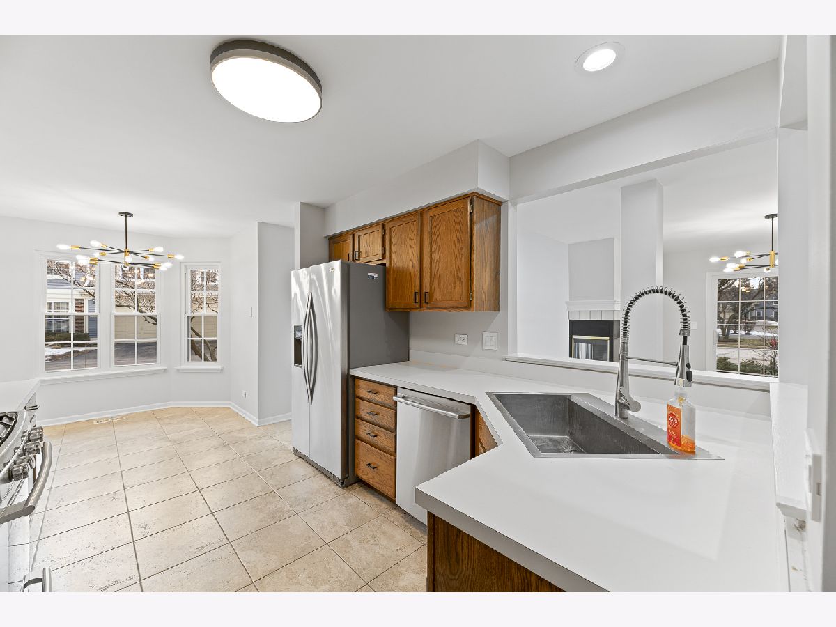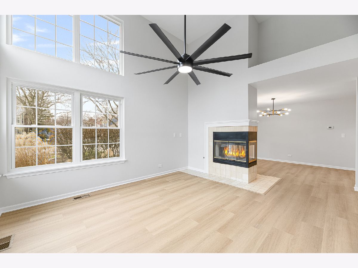 Beautifully updated 2 bedroom, 2 bathroom ranch-style townhome located in the desirable Talbots Mill subdivision offering true single-level living with a 1 car attached garage. Freshly painted throughout with brand new vinyl flooring, baseboards, and modern light fixtures, this home features a bright and open layout with vaulted ceilings, abundant natural light, and a spacious living and dining area centered around a stunning double-sided fireplace. The kitchen offers ample cabinet space, stainless steel appliances, and a functional layout ideal for everyday living and entertaining. The spacious primary suite includes a private full bathroom and generous closet space, while the second bedroom and additional full bathroom provide flexibility for guests or home office use. Additional updates include Furnace (2026), AC (2023), Washer/Dryer (2020), and Water Heater (2019). Ideally located near shopping, dining, expressways, Woodfield Mall, parks, and forest preserves, this move-in ready home offers comfort, convenience, and low-maintenance living in a prime Elk Grove Village location.