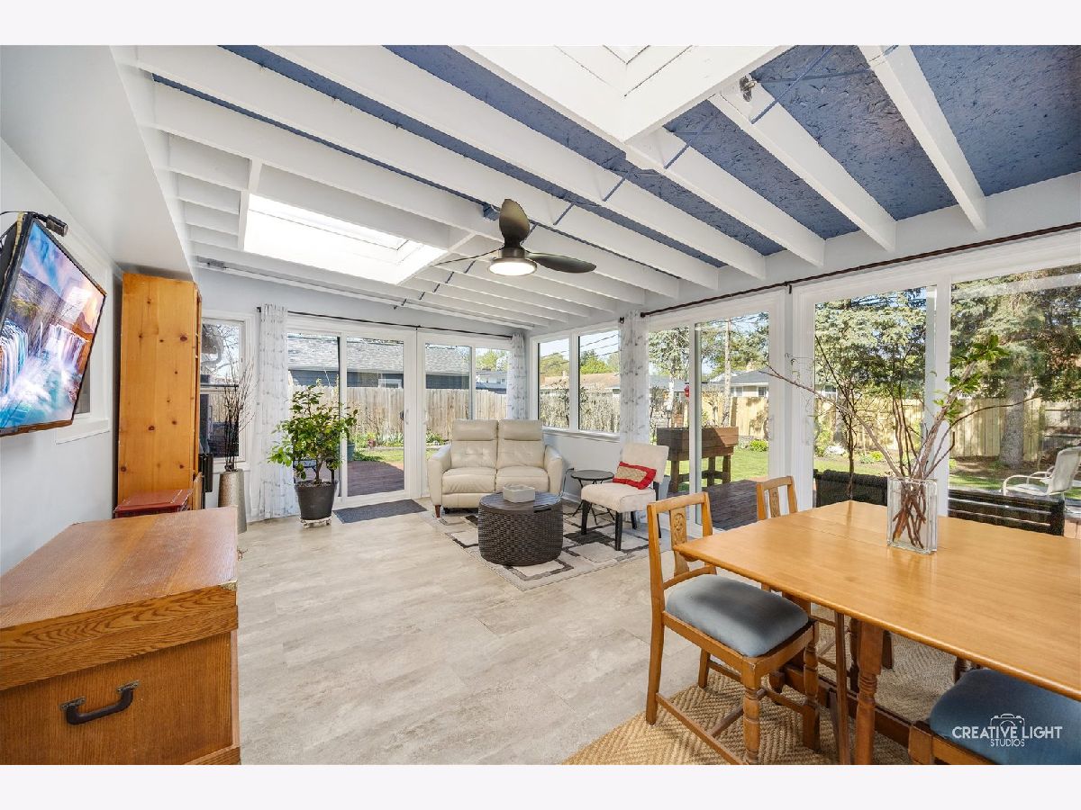 Beautifully updated 3-bedroom ranch in a prime location, offering over $140,000 in recent improvements. Major updates include upgraded upstairs bathroom, a newer A/C (2024), roof, windows, doors, sump pump, dryer, and refrigerator (2022), along with a garage door (2023). This home boasts striking curb appeal with a welcoming covered front porch. Inside, you'll find a cozy living room anchored by a classic brick fireplace and a light-filled kitchen featuring white cabinetry, coordinating backsplash, and stainless-steel appliances. Additional highlights include a bedroom with chair rail wainscoting and a finished basement providing versatile recreation space and an additional bathroom and bedroom with large walk in closet. The laundry room features a spacious, king-size utility tub-perfect for a variety of uses, including pet bathing. The basement also offers an expansive storage area with excellent potential for a workshop, matching the generous size of the lower-level apartment. The sunroom is filled with natural light and features sliding glass doors that open to a fully fenced yard with beautiful landscaping and a wraparound deck built in 2023-perfect for relaxing or entertaining. Spacious, atttached 2-car garage offering ample parking and storage. Just minutes to schools!