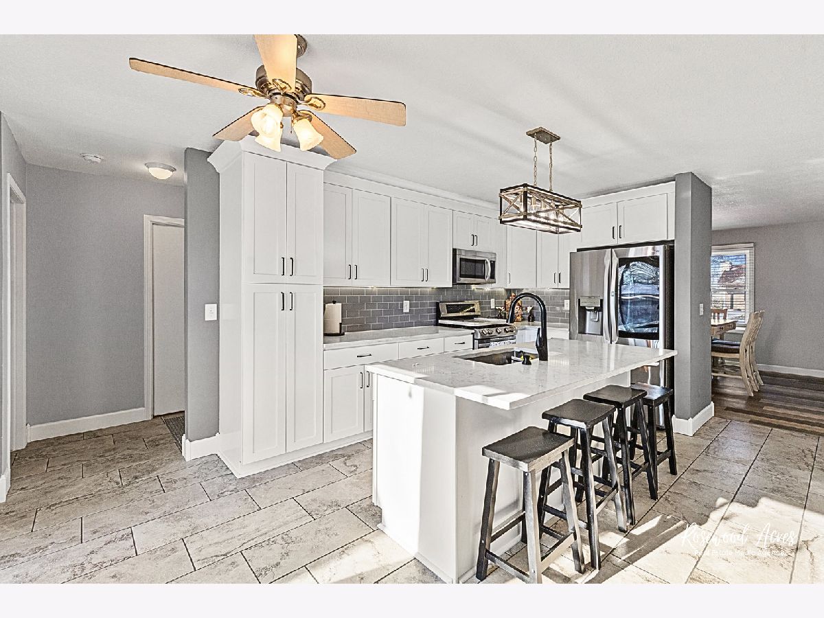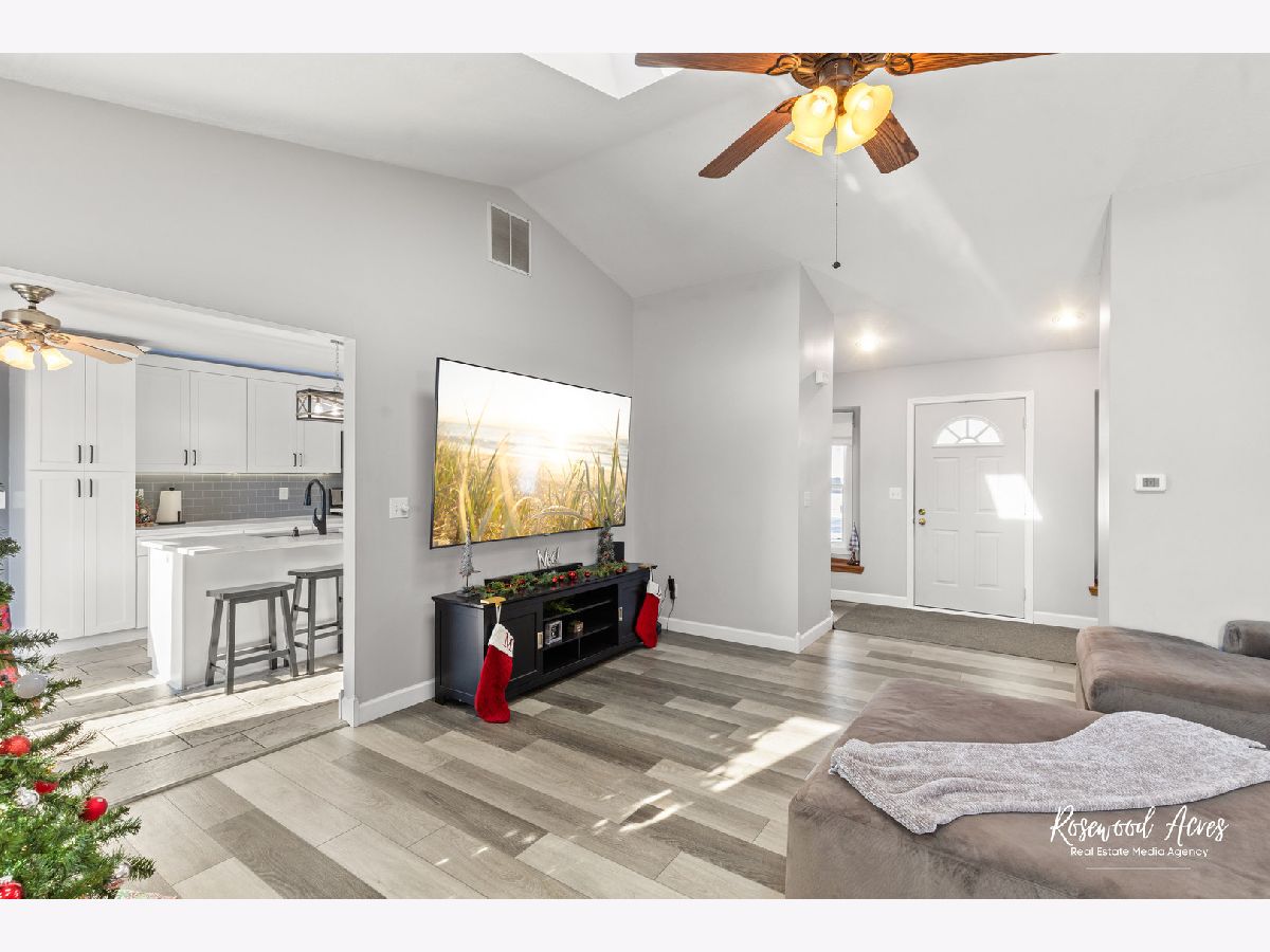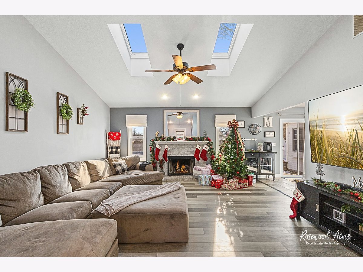 Nothing to do at this lovely 3 bedroom, 2 bathroom ranch home in Bradley, but bring your stuff! First up, is the spacious living room, featuring vaulted ceilings and skylights for tons of natural lighting, and newer luxury vinyl plank floors. There's even a cozy gas fireplace that is perfect for snowy winter evenings. This flows right into the beautiful kitchen, which was updated in 2023, and includes newer stainless steel appliances, loads of modern white cabinetry, quartz countertops, and a large island for additional seating. There is also an attached dining room that makes this space great for hosting or spending time with family and friends. Featuring a split floor plan, the spacious primary bedroom is designed for comfort by offering a cozy window seat, walk-in closet, and an updated private bathroom with double sinks and must-see modern finishes. The additional two bedrooms are generous in size and share a tastefully updated guest bathroom. The first-floor laundry room provides extra cabinets for additional storage. Heading outside you will find a fully fenced-in yard, large patio, pergola area, shed, and heated above group swimming pool-- creating a backyard oasis great for the upcoming summer season. The attached 2-car garage offers shelves for storage and a workbench for hobbies. New AC, tankless water heater, and conveniently located near near Lills Park, with a walking trail, playground, and splash pad. TODAY is the perfect time to find your next home, so call to schedule your private showing!