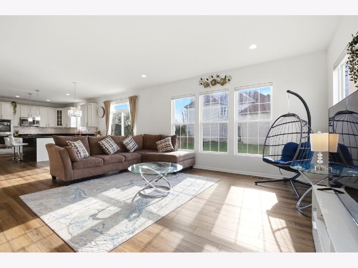 2022 well built Dunbar model in Chatham Square in highly acclaimed 308 school district. Custom built home features 3 bedrooms plus 2nd floor loft & full basement now looking for new owners. Tremendous curb appeal with this corner lot, 2-story home that includes front porch that's perfect for soaking in the sunlight or watching children playing. Grand 2-story entryway has staircase to 2nd floor or leads to the heart of the home. Open floor concept on the main level with the kitchen and family room. The kitchen has 42" white cabinets/granite countertops/center island with glass lighting/pantry/double oven & tiled backsplash. Separate eat-in area. Lots of entertainment awaits in the family room that exudes sunlight & includes canned lighting. High-end luxury vinyl plank flooring is throughout the 1st floor! The office has french doors & plenty of room for working from home, also possibly a 4th bedroom. Upstairs offers 3 good sized bedrooms including 16x13 double-doored entry primary bedroom with canned lighting/massive walk-in closet. Private bathroom has 36" double vanity and step-in shower. The secondary bedrooms have good sized closets & canned lighting. 2nd floor full-sized laundry room. Head downstairs to the basement that is fully insulated, includes a patterned carpet with partial crawl. High efficiency Carrier HVAC system with 1 year old furnace. Additional features to the home: Whole-home Culligan water filtration system, Under-sink purified drinking system in the kitcheh, window treatments & smart controlled lighting for bedrooms & kitchen!