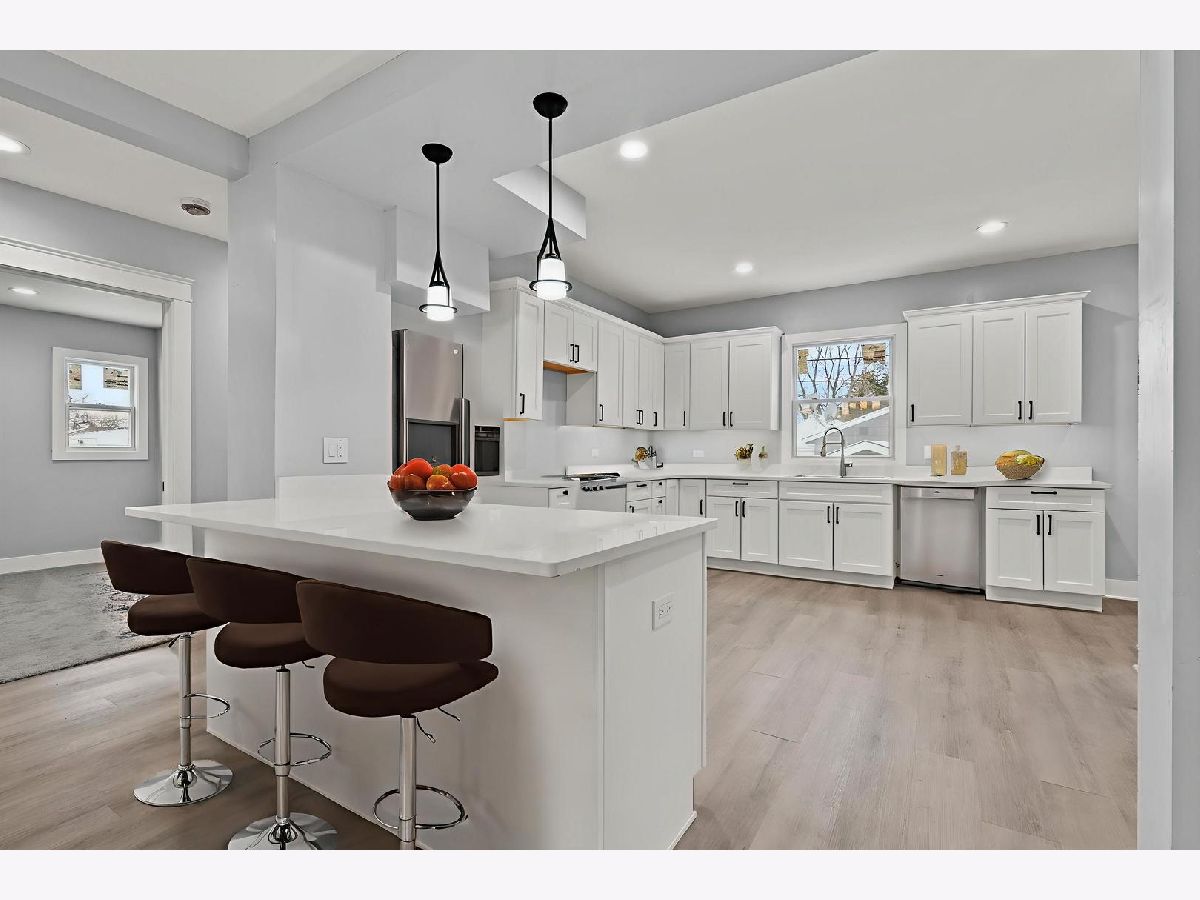Welcome to 12404 S. Wood Street in Calumet Park, your newly renovated home with 5 bedrooms, a den, 3 bathrooms and a full basement! The home is located on a large corner lot with 3 parcels and has great investor potential! Upon arrival you'll notice brand new windows and siding, new steps leading to front door, sustainable landscaping, and new leaf guard gutters! Inside the home, there's a comprehensive list of brand new renovations already completed for you. You can't miss the original detailed trim and solid panel doors, adding charm and interest to the space! In the kitchen, you'll love the gorgeous quartz countertops that are showcased perfectly by the under cabinet lighting. The brand new cabinets have everyone's favorite feature, soft close hinges! Whether you're hosting a large meal or just a casual get together, everyone will appreciate all the room for entertaining and cooking! The living room is the perfect place to unwind at the end of the day and a cozy space to wait out the rest of the winter! The main level features 2 great sized bedrooms, with the other 3 bedrooms and the den upstairs. Each bedroom has new flooring with neutral paint colors and spacious closets! 1st floor Primary Bedroom with private bathroom! Head downstairs to the full basement (with a finished bathroom) awaiting your finishing touches! The perfect spot for having a TV hangout spot, exercise room, an area for hobbies, or just extra living space! The backyard provides an amazing outdoor experience with the brand new wooden deck, brick patio and tons of space, all concealed by the brand new fence! For enhanced security, the home comes equipped with a new ADT security system, ensuring professional home protection at all hours of the day! Endless recent updates include brand new Kitchen and bathrooms (2025), new HVAC and AC air compressors (2025), new mechanicals, Electrical panel, Plumbing, New windows, leaf proof gutters, new flooring, fresh paint, exterior front steps and deck, and fence all 2025. Each finish of this home has been carefully thought out, creating a perfectly custom and modern feel. Close to highway 57 and just around the corner from tons of shopping and dining! Don't miss your chance to view this beautiful new home! Take the first step and schedule a private showing today!