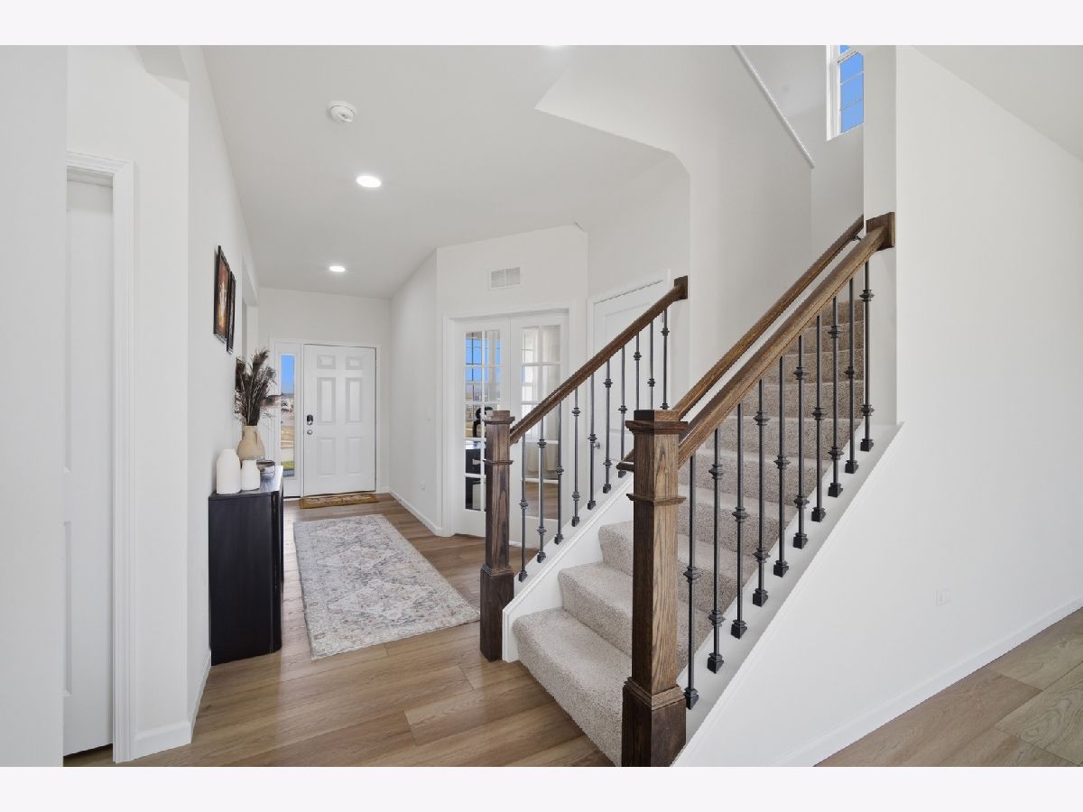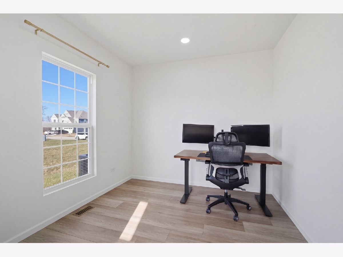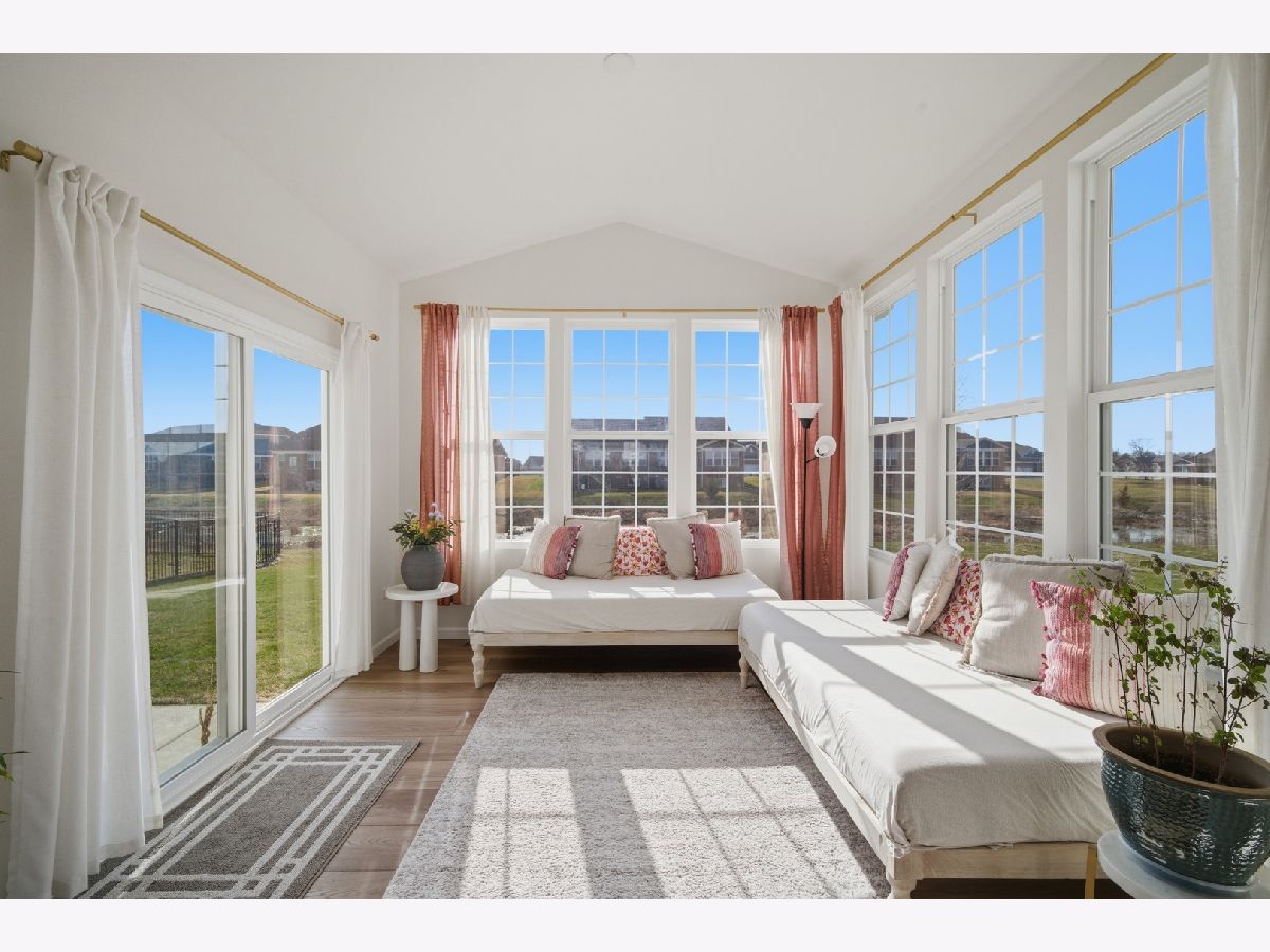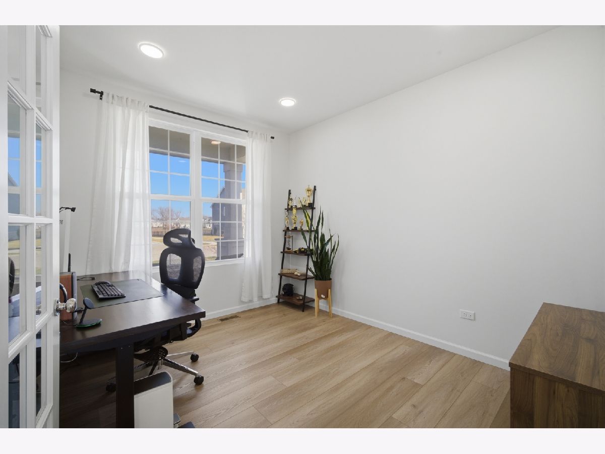 Do not miss an opportunity to own a beautiful newer construction home in highly sought after Gleneagles in Lemont! Situated on a premium quarter-acre, pond-facing lot, this Riverton model home built by reputable Pulte features 4 large bedrooms, 2.5 baths, a sunroom, two first-floor offices, a planning center/homework station, a second-floor loft, and a full unfinished basement. Functional open floor plan features 9' ceilings, overhead can lighting, and wide plank vinyl flooring. This leads you to the spacious kitchen, which offers 42" white shaker cabinetry with gold accents and a sleek subway style backsplash, large island with quartz countertops and breakfast bar seating, a large undermount single basin sink, stainless steel Whirlpool appliances, a Samsung side by side fridge, and a convenient pantry closet. The sunroom has vaulted ceilings and is flooded with western facing natural light. From there, you can step out to the concrete patio overlooking the backyard and pond. Modern wrought iron staircase takes you upstairs to find a cozy loft space, laundry room with front loading washer/dryer and utility sink, an ensuite guest bedroom, and two other large guest bedrooms each with walk in closets. The spacious primary suite includes a custom walk-in closet, dual vanity, and private bath. Full unfinished basement has 9' ceilings, egress windows, and rough plumbing for an additional bathroom, ready for your ideas. Also included is an added water softener with filtration, and a reverse osmosis system for clean drinking. The two-car drywalled garage offers extra storage space for lawn equipment, and comes upgraded for electric vehicle charging. Incredible Lemont school district, near downtown Lemont and Metra station, famous Cog Hill Country Club, and easy expressway access.