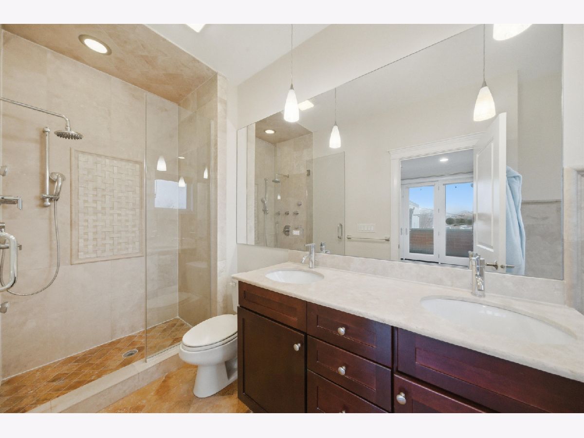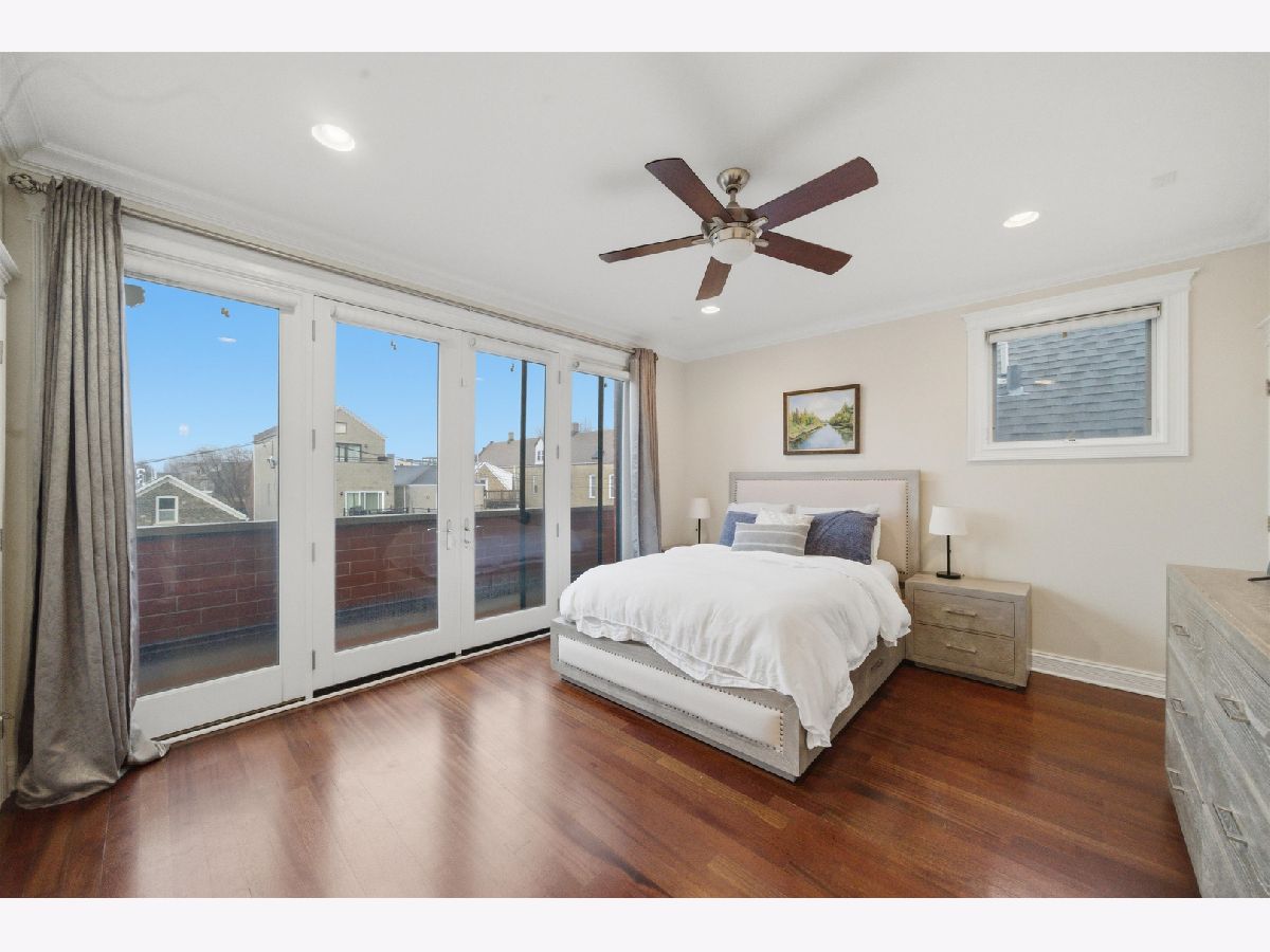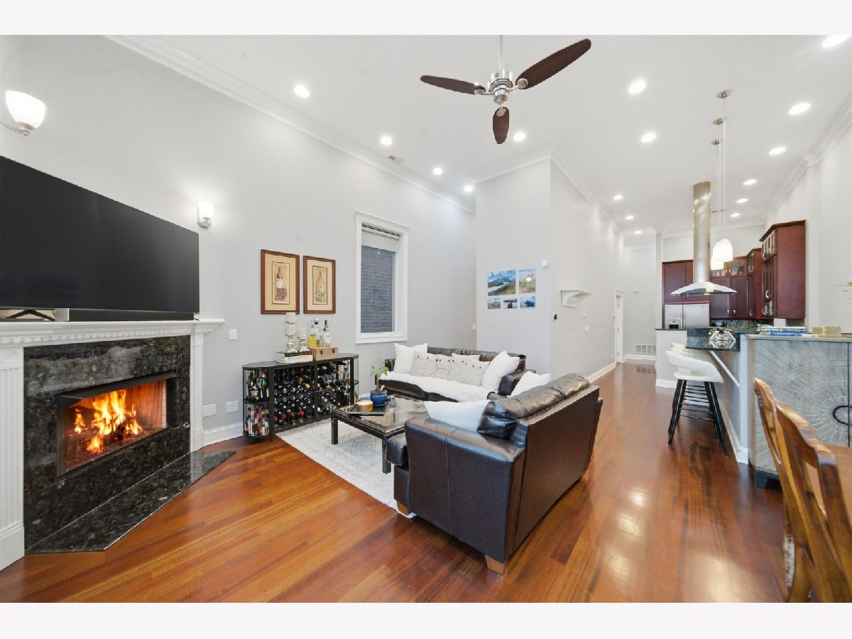 Stunning 3-bedroom, 2.1-bath PENTHOUSE in the heart of Wicker Park featuring a spectacular custom-built private rooftop deck with breathtaking Chicago skyline views. This top-floor home lives like a single-family residence in the sky, offering a unique multi-level layout that thoughtfully separates living and private spaces. The main living level welcomes you with an immediate "wow" factor-a bright and airy living and dining room showcasing soaring 14-foot ceilings and a dramatic wall of windows overlooking tree-lined Greenview Avenue. French doors lead to a spacious front terrace, perfect for easy outdoor access right off the main living space. The living room is anchored by a gas fireplace and features cherry hardwood floors, crown molding, and incredible natural light throughout. The kitchen offers double-height shaker-style cherry cabinetry with illuminated glass-front uppers for additional storage, granite countertops, tile backsplash, and stainless steel appliances, creating a functional and stylish space for cooking and entertaining. Upstairs, escape to your fully built-out private rooftop oasis, professionally designed by Chicago Urban Rooftops. Enjoy panoramic skyline views while relaxing under the custom pergola with freestanding fire pit, or host unforgettable gatherings in the tiled outdoor dining and kitchen area complete with custom cabinetry and granite counters. A turf area with built-in planters provides additional space ideal for lounging, a putting green, or a hammock retreat. The primary suite offers a spacious bedroom, two closets, and a large ensuite bath with double vanity, soaking tub, and walk-in shower. French doors open to a private balcony off the primary bedroom. The lower level includes two additional bedrooms, a full bathroom, and a newer stackable washer and dryer. Additional features include California Closets throughout the bedrooms, custom-made bar, one garage parking space and an unbeatable location just steps from the restaurants, bars, and shopping along Division Street and North Avenue, plus only two blocks to the Division Blue Line stop for easy commuting. A truly unique home with exceptional outdoor living-just in time to enjoy summer on your private rooftop retreat. Explore the property in 3D! Click the 3D button to take a virtual tour and walk through every detail.