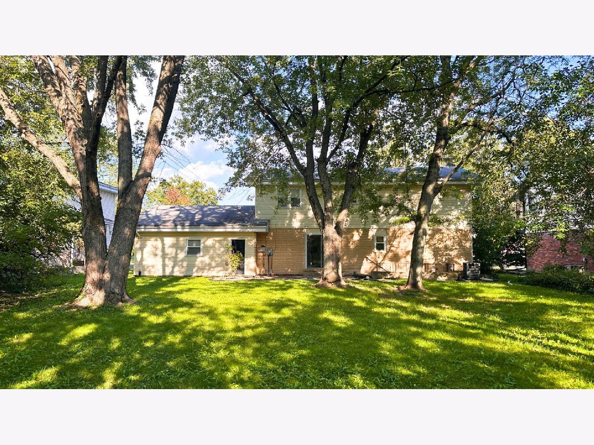 This beautifully maintained 4-bedroom, 2.5-bath home offers over 2,100 square feet of refined living space in a quiet, residential neighborhood. The main level features rich dark hardwood floors, a spacious living area with a wood-burning fireplace, and oversized portrait windows that flood the space with natural light. A stylish half bath adds convenience for guests. The updated kitchen is a true highlight-featuring custom cabinetry, a gas cooktop with oven range, dishwasher, and detailed tile backsplash. Dual sliding glass doors lead directly to a lush, tree-lined backyard offering privacy, space, and shade-ideal for entertaining or unwinding. Upstairs, you'll find hardwood flooring throughout, including a large primary suite with its own full bathroom and walk-in closet. Three additional bedrooms share a full hallway bath, and each room includes ample closet space and large windows for plenty of natural light. The finished basement offers even more living space with tile flooring, a dedicated laundry room, extra storage, and a walk-out stairwell leading directly to the backyard. Additional features include a brick exterior, attached 2-car garage, beautifully kept lawn, and mature landscaping in a peaceful, established neighborhood. This home combines style, space, and functionality-perfect for anyone seeking a move-in-ready property with timeless charm and modern convenience.