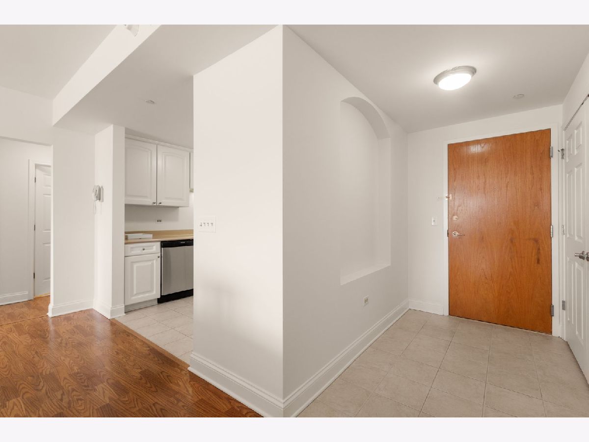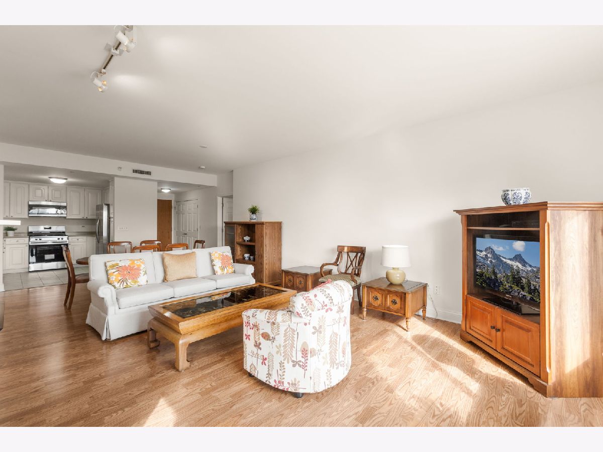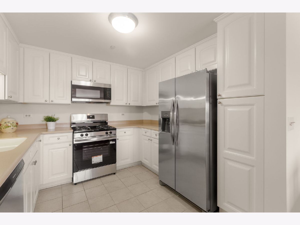 Rare larger 2 bedroom, 2 bath model, affordably priced. Units don't come on the market often in this building. Great floor plan with a bedroom on each side of the main living space. Perfect for guests! New updates include brand new stainless steel appliances, freshly painted, new disposal & faucet. Primary bathroom has new shower doors, toilet & faucet. Large walk in closet. All countertops are Corian. Neutral throughout. Laminate flooring throughout. Custom closet organizers in the closets. Cozy electric fireplace in living room. Cable & internet is included in monthly HOA. Centrally located to everything. Indoor parking w/storage unit. 2 elevator building. Stevenson High School district.