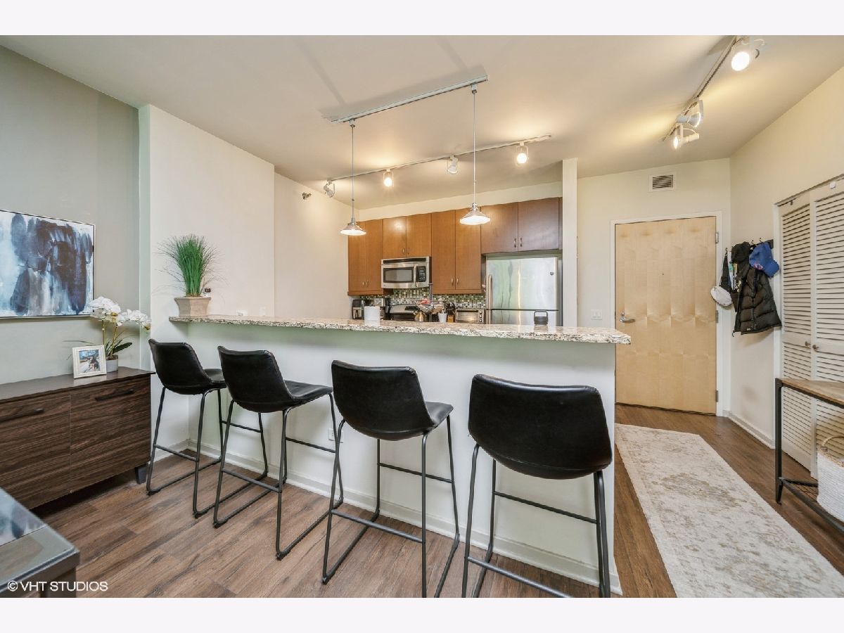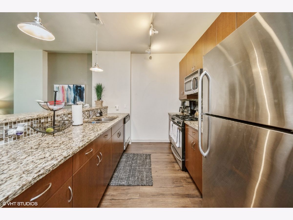 Live at the heart of it all in this modern West Loop condo at the coveted Emerald building! This flawless condo features floor-to-ceiling windows that flood the space with natural light, a massive private balcony, and wide plank hardwood floors throughout. The sleek kitchen boasts granite countertops, premium stainless steel appliances, and 42" custom cabinetry, while the spacious bathroom offers a soaking tub, custom tilework, and a separate glass-enclosed shower. Live with ease in a LEED-certified, full-amenity building offering 24/7 door staff, a state-of-the-art fitness center, resident lounges, and more. HOA covers everything except electricity. Step outside and experience the best of West Loop, just moments from Randolph Street's Restaurant Row, Fulton Market, Whole Foods, public transit, and the top-rated Skinner School District. Heated garage parking available for purchase. Don't miss the opportunity to make this stunning condo yours today!