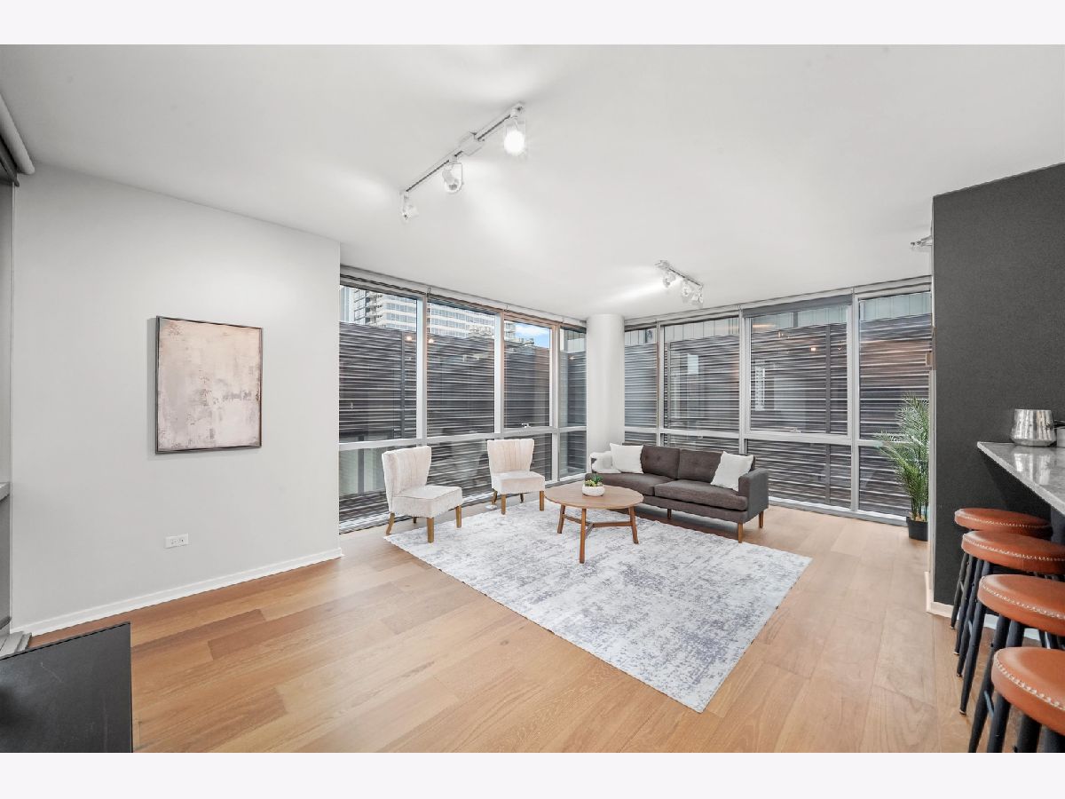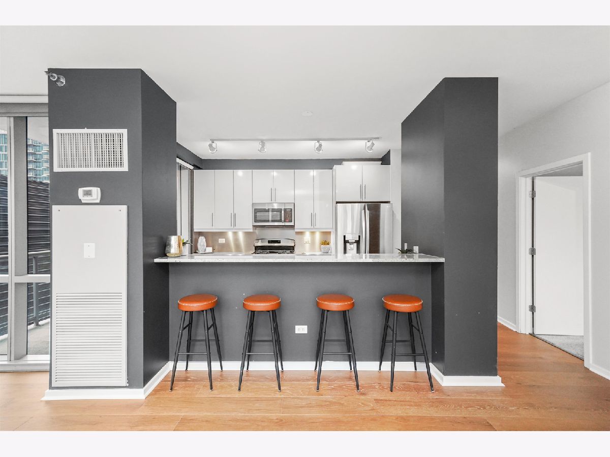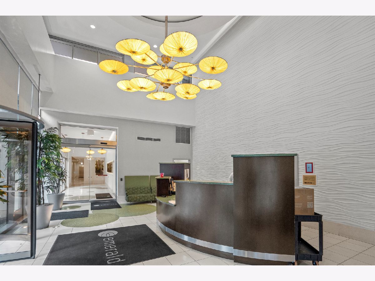 Stunning 8th-Floor Corner Unit with Skyline Views! This gorgeous 2-bedroom, 2-bath corner residence offers breathtaking east and south-facing skyline views from every angle. Enjoy the city from the comfort of your home on two private outdoor terraces - perfect for relaxing or entertaining. Spanning approximately 1,300 sq. ft., this spacious unit is move-in ready and features brand-new gleaming hardwood floors. Floor-to-ceiling windows fill the home with natural light, complementing the open-concept layout designed for modern living. The large kitchen boasts stainless steel appliances, granite countertops, and ample cabinet space. The split-bedroom floor plan provides privacy, with the primary suite showcasing stunning eastern views, a walk-in closet, and a luxurious en-suite bath with dual vanity and a walk-in shower. The second bedroom, with beautiful southern exposure, is perfect for a guest room or home office. Additional highlights include in-unit laundry, extra storage, and deeded garage parking (available for $35k). Residents of The Emerald enjoy resort-style amenities, including 24-hour door staff, a fitness center, two entertainment lounges with private bars, a business center, bike storage, package receiving, and on-site management and engineering. This pet-friendly, investor-friendly building (no rental cap) is ideally located near Randolph's "Restaurant Row," Fulton Market, Greektown, parks, grocery stores, public transit, and top-rated schools. Explore in 3D! Click the 3D button for a virtual walkthrough and experience every detail of this remarkable home.
