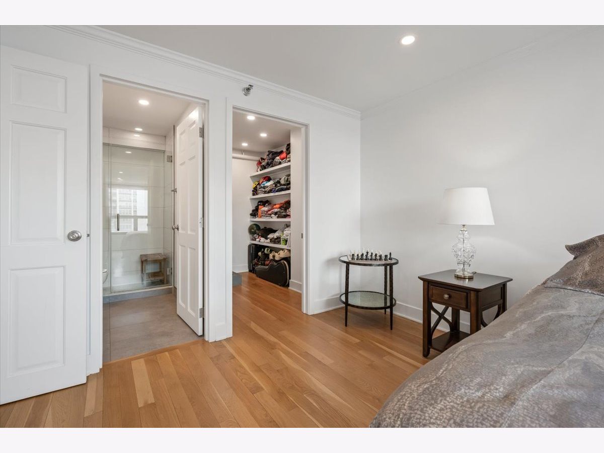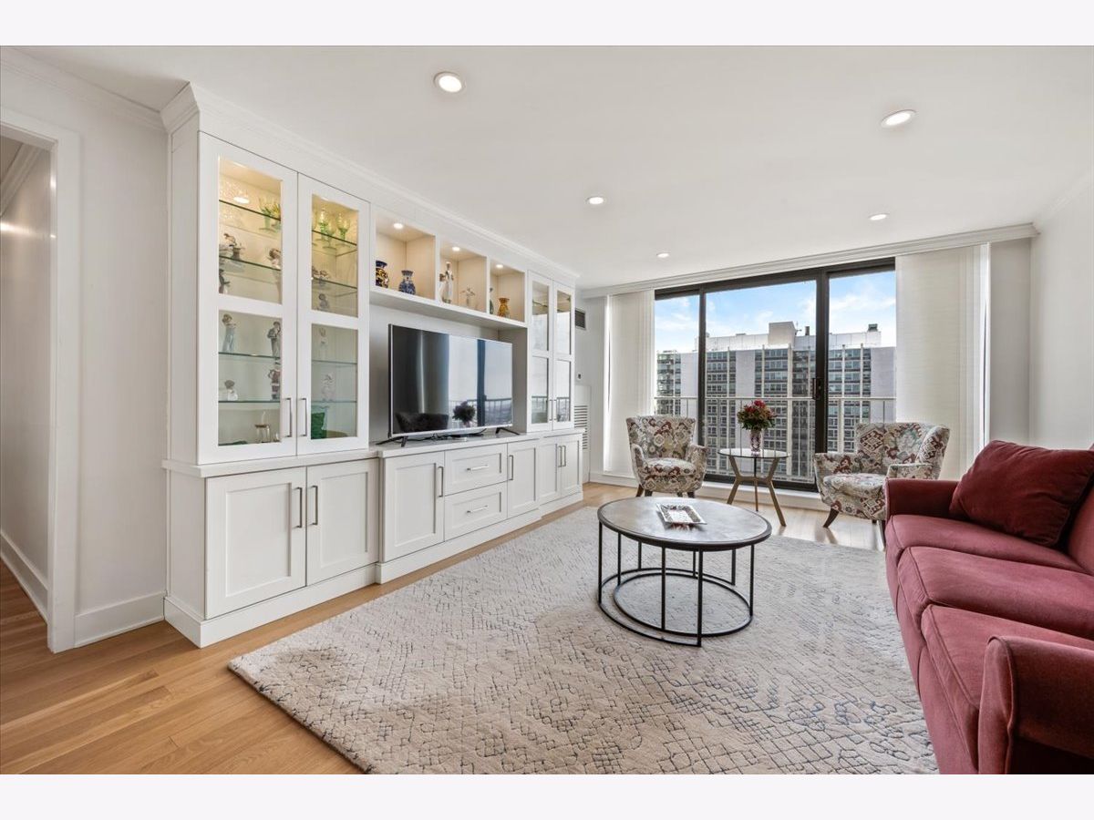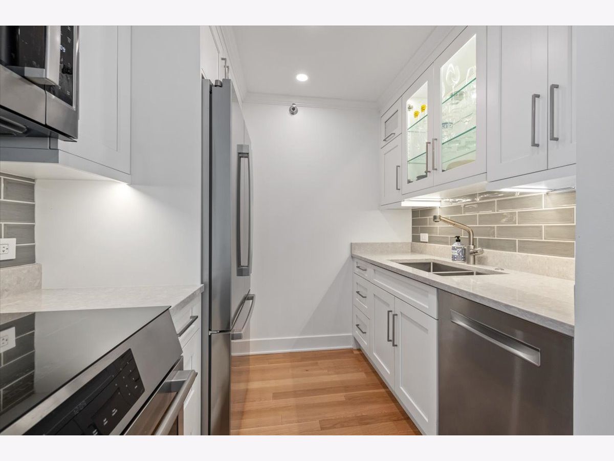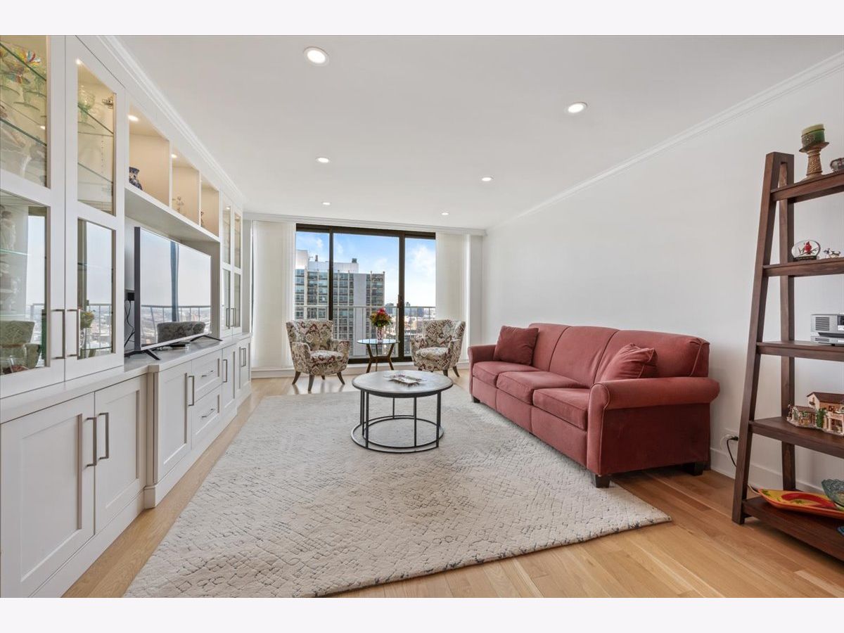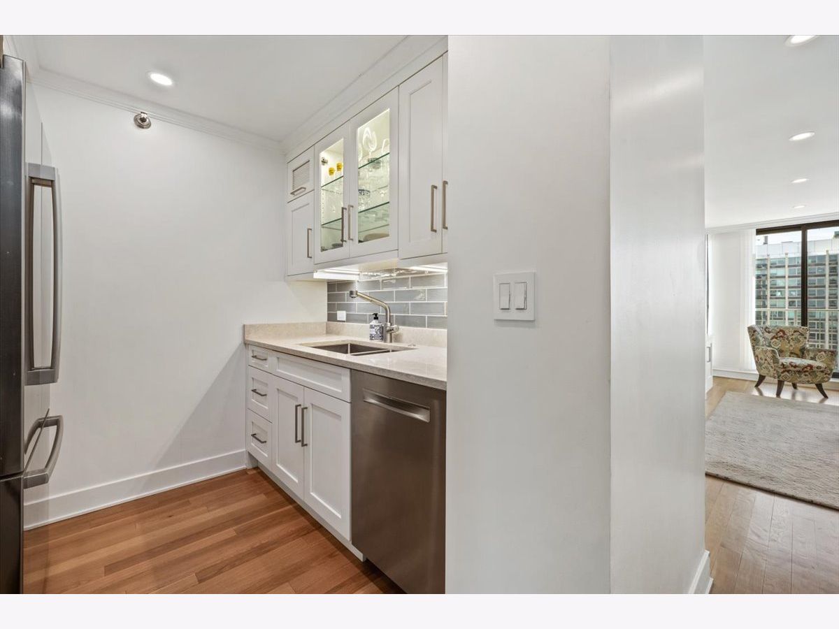 Residence 24E is a beautifully renovated home offering sophisticated finishes and sweeping sunset and skyline views. This move-in-ready residence features stunning hardwood floors throughout, complemented by all-new doors, trim, and a fresh look.The open-concept kitchen is designed for both everyday living and entertaining, with white cabinetry, quartz countertops, and stainless steel appliances seamlessly flowing into the dining space. Both bathrooms have been completely updated with timeless finishes, and the convenience of an in-unit washer and dryer adds to the home's functionality.Bedrooms offer great space and exceptional closet space. Take in the views and check the weather from your private balcony. The building offers an incredible rooftop deck showcasing panoramic views of Lake Michigan and the Chicago skyline, along with an exercise room and additional laundry facilities, plus a 24-hour door staff. Garage parking is available for rent within the building. Move into this turnkey home in a premier Gold Coast location close to public transportation, restaurants and shopping as well as the park and the beach. The riser project has been completed in this unit and the special paid off.