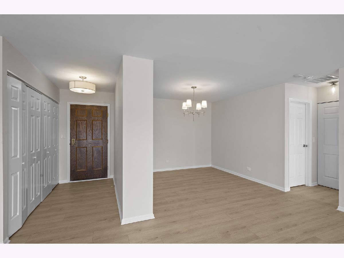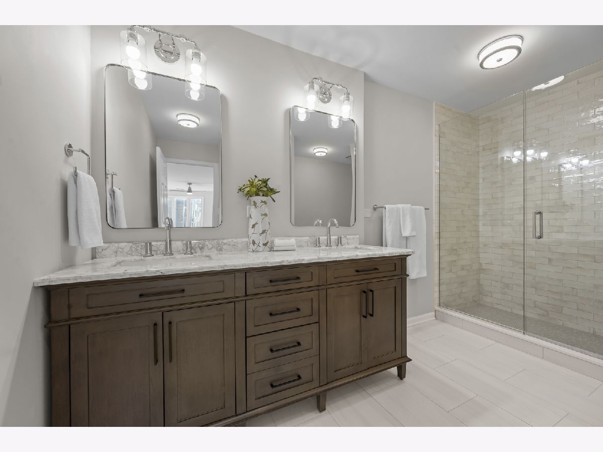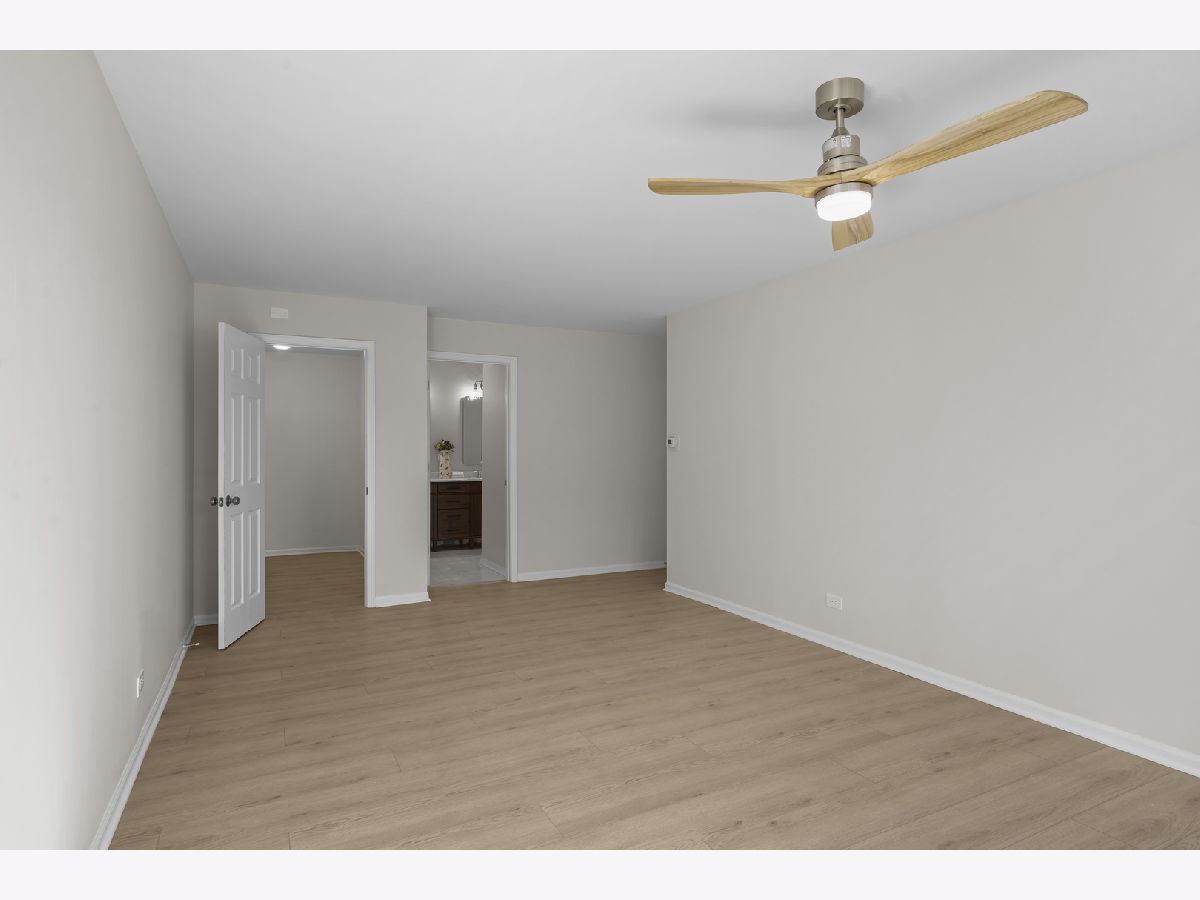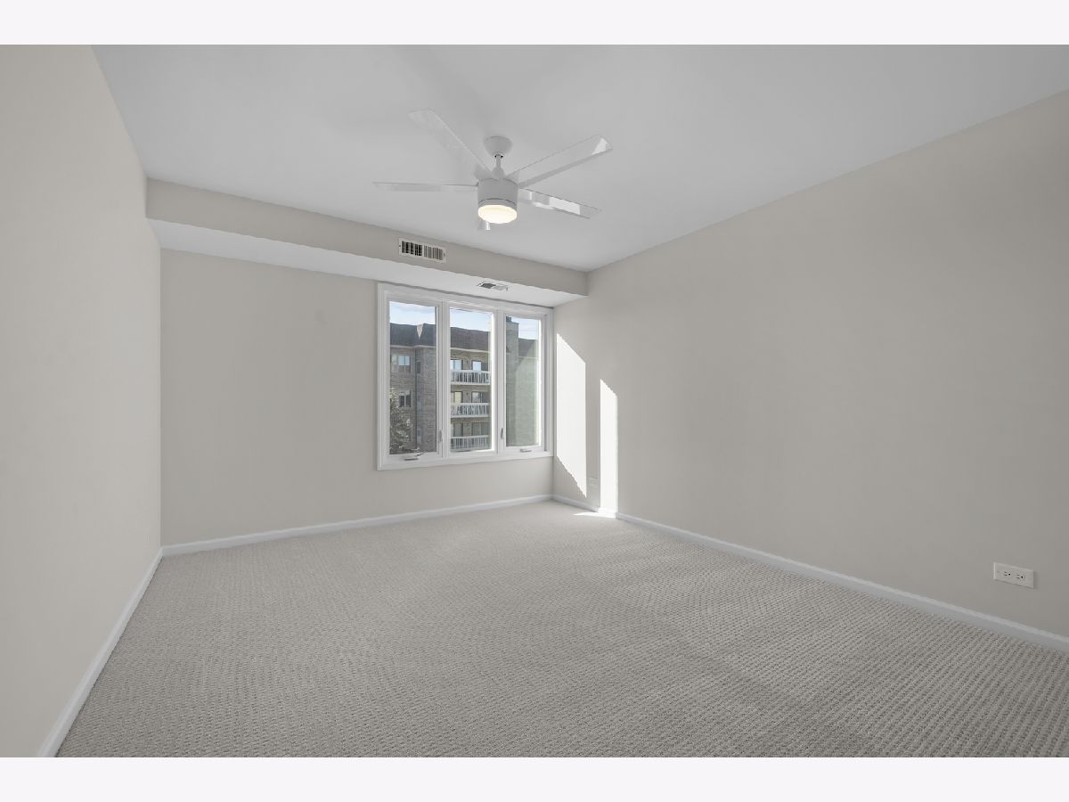 Highly desirable Condos of Northbrook. This bright and sunny fourth-floor three bedroom, three bath unit has been recently renovated with stunning designer finishes from top to bottom. Wide plank luxury vinyl flooring runs throughout the main living areas, hallway, and primary suite. The galley kitchen features white cabinetry, quartz countertops, new GE appliances, a custom backsplash, and a breakfast nook overlooking a private balcony with pool views. The spacious living room includes a gas fireplace, sliding doors accessing the large balcony, and the separate dining room is accented by a beautiful chandelier. The primary bedroom has been reconfigured into a private retreat with a spa-like bath that includes a double vanity, walk-in shower with glass doors and designer tile, a separate toilet area, and an additional storage closet. A large walk-in closet completes the suite. Two additional bedrooms feature new carpeting, abundant natural light, and generous closet space, each with access to a dedicated full bathroom conveniently located just across the hall. The unit also includes an in-unit laundry area with storage cabinets. Additional amenities include two tandem garage spaces (23-24), an outdoor pool, tennis courts, a party room, exercise room, sun deck, a large storage unit on the same floor, and secured gate entry. Ideally located minutes from restaurants, shopping, transportation, Downtown Northbrook, the Botanic Gardens, and Ravinia, this well-managed building offers a welcoming and friendly community. This is the one you have been waiting for!