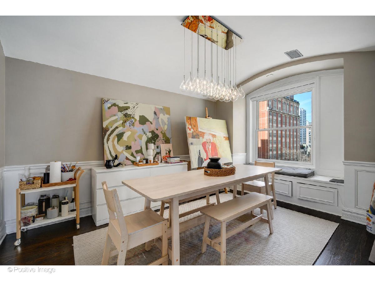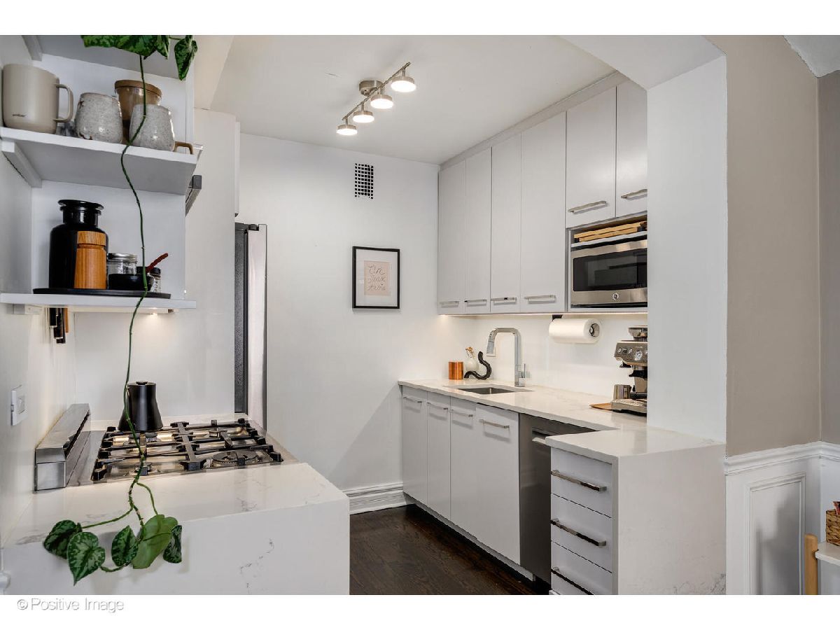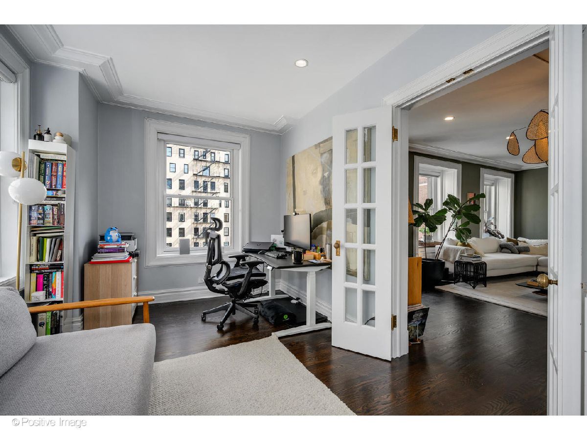 Rarely does a home of this caliber come to market in the Gold Coast. Set on the seventh floor of a distinguished 1924 landmark building at the corner of State Parkway and Goethe, this meticulously gut-renovated 2-bedroom, 2-bath residence delivers the enduring elegance of pre-war architecture alongside thoroughly modern, move-in-ready living. Step through a gracious foyer into one of the most generously proportioned floor plans you will find at this price point. The oversized living room is anchored by a real wood-burning fireplace (currently configured with gas for everyday convenience) and bathed in natural light from coveted north and east exposures. It flows seamlessly into a generous separate dining area made for entertaining. Currently configured as an office, the second bedroom is adjacent to the main living space. Solid oak hardwood floors, custom wood trim, and Hunter Douglas shades run throughout. Set at the quiet end of the hall on a corner with lake views, this unit offers a rare sense of calm and privacy in the heart of the city. The completely redesigned kitchen showcases Caesarstone quartz countertops, Omega/Studio41 cabinetry, a premium Bertazzoni appliance suite (refrigerator, range, and oven), Bosch dishwasher, and a breakfast bar that makes casual mornings as enjoyable as dinner parties. Both bedrooms are generously sized and impeccably finished. The primary suite offers custom California Closets built-in wardrobes and a spa-caliber ensuite bath finished entirely in Porcelanosa tile and fixtures, and a custom floating marble vanity. The second full bath is equally refined - also clad entirely in Porcelanosa throughout. In-unit LG washer and dryer, Nest thermostat, and Pella windows complete the picture. The building's history of careful stewardship speaks for itself. Originally constructed in 1924 and comprehensively revitalized with new piping, boiler system, tuckpointing, masonry, and a stunning new common roof deck, this is a building that has genuinely been invested in. Current amenities include 24-hour door staff, the rooftop deck, and a fitness room under construction. The all-inclusive monthly assessment covers heat, AC, water, electric, gas, cable, doorman service, exterior maintenance, scavenger, and snow removal - backed by $2.9M in building reserves. Two storage options included: a private hall closet adjacent to the front door and a storage cage in the building's lower level. Leased valet available within one block at 1325 N State ($360/mo) or 1340 N Astor ($350/mo). Two pets per unit, no weight limit. 80% owner occupied. Moments from Oak Street Beach, Lincoln Park, and the world-class shopping, five-star dining, and cultural richness that define Chicago's Gold Coast.