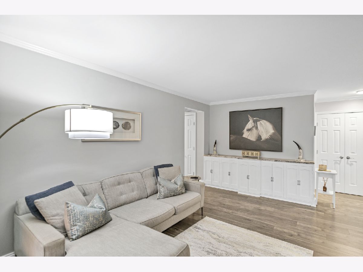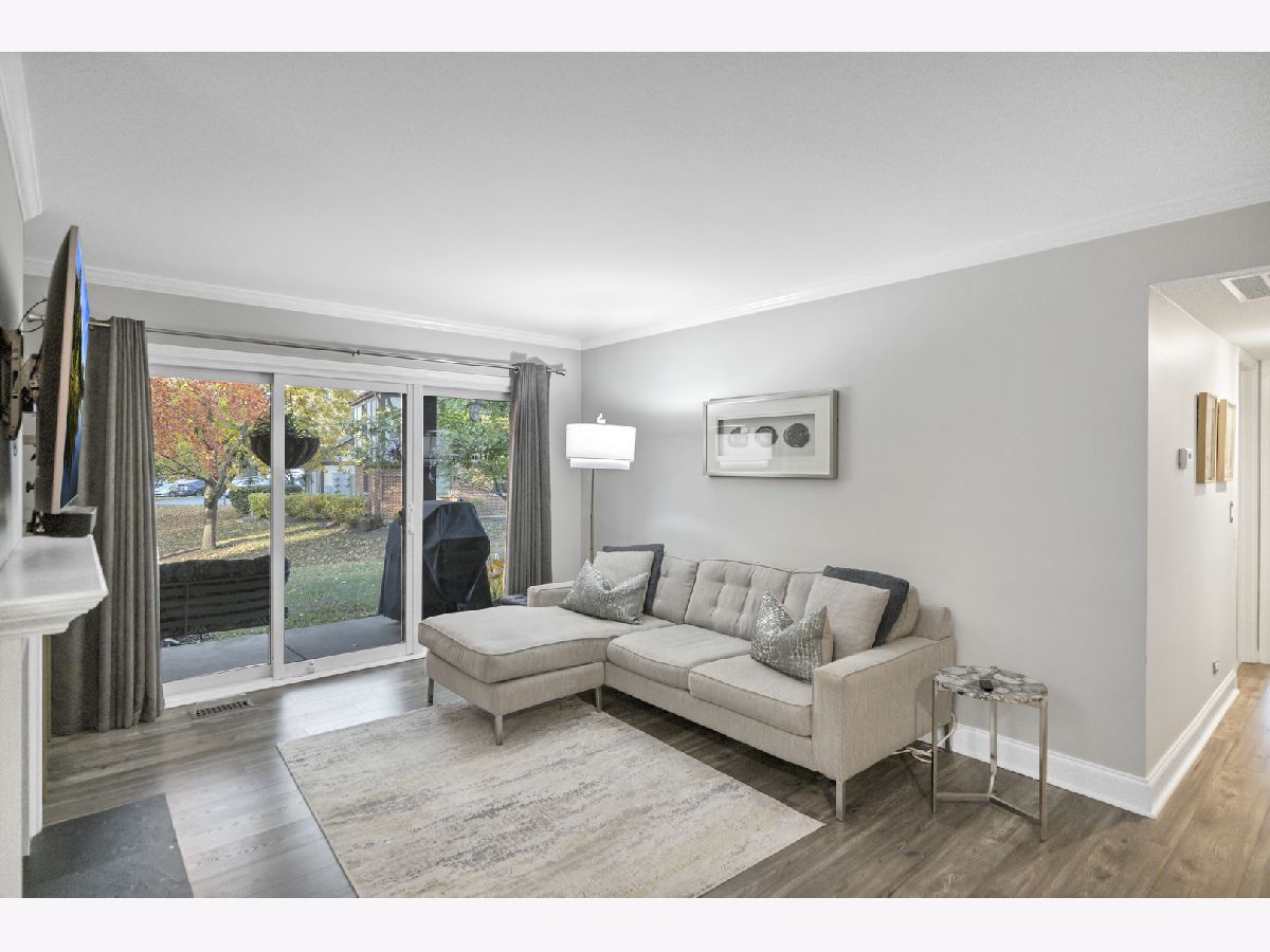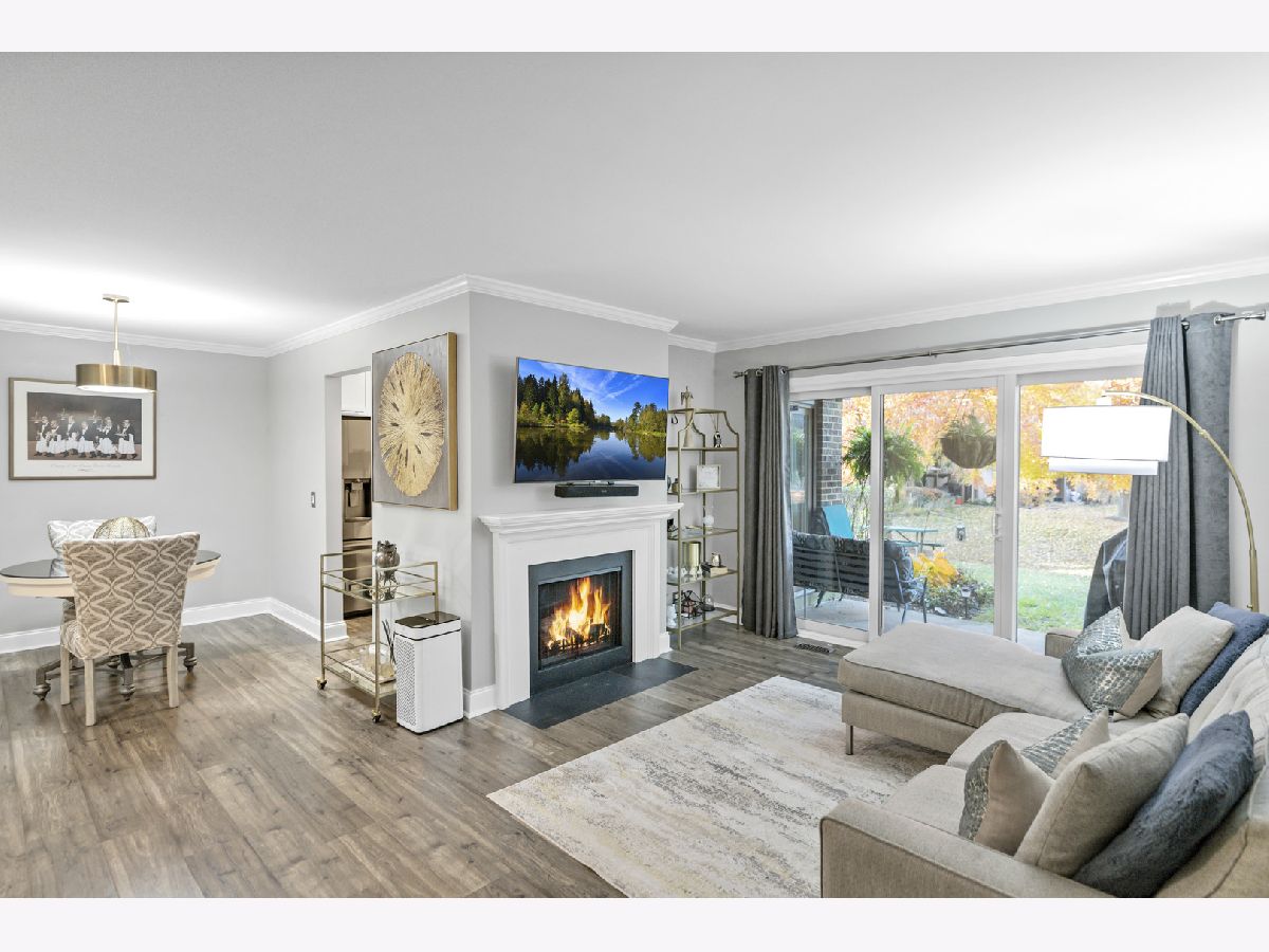 Beautifully updated 2-bedroom, first-floor condo in the desirable Lexington Green community of Schaumburg. This home features an open-concept floor plan with a bright living room offering newer wood laminate flooring, crown molding, a cozy fireplace, and a sliding glass door to the private covered patio, flowing right into the dining area. The completely updated kitchen boasts 42" white cabinetry, under cabinet lighting, granite countertops, LG black stainless steel appliances, subway tile backsplash, a pantry cabinet, and an additional eating area with a second slider to the patio. The spacious primary bedroom includes a walk-in closet and an en-suite bath with an oversized shower and quartz counters. A second bedroom and beautifully updated full hall bath complete the layout. Enjoy being just steps from the clubhouse, outdoor pool, and park, with close proximity to shopping, restaurants, and easy interstate access. Truly move-in ready and a wonderful place to call home!