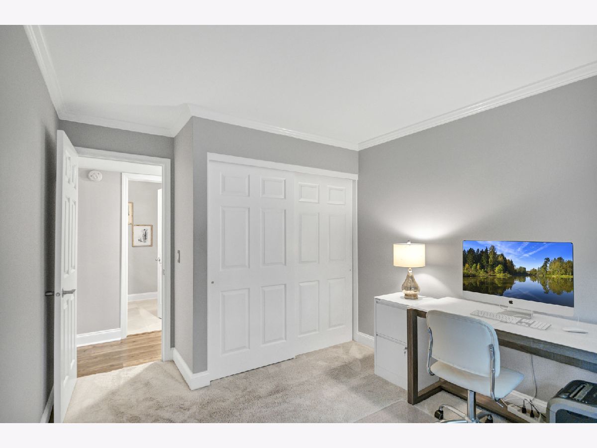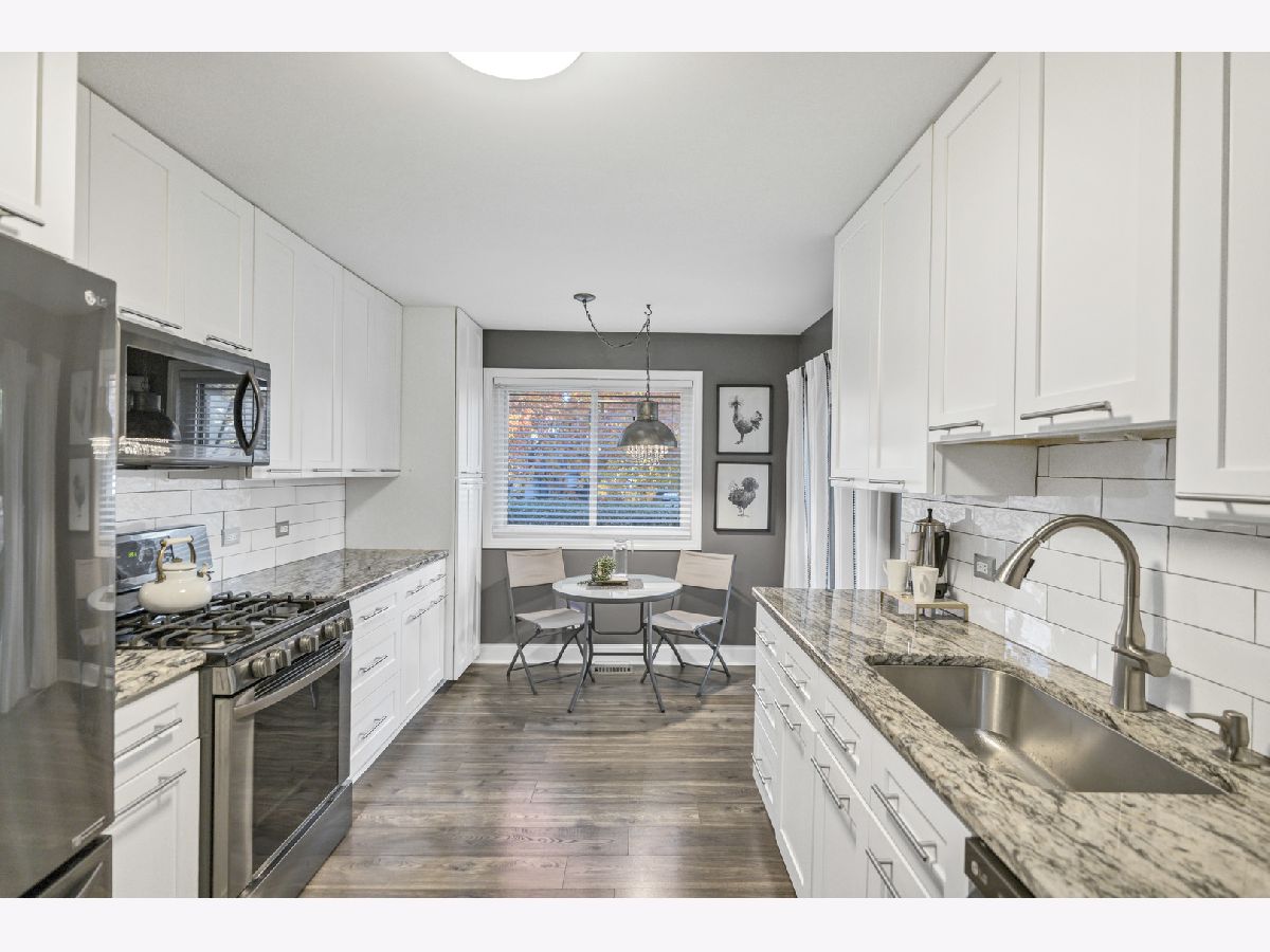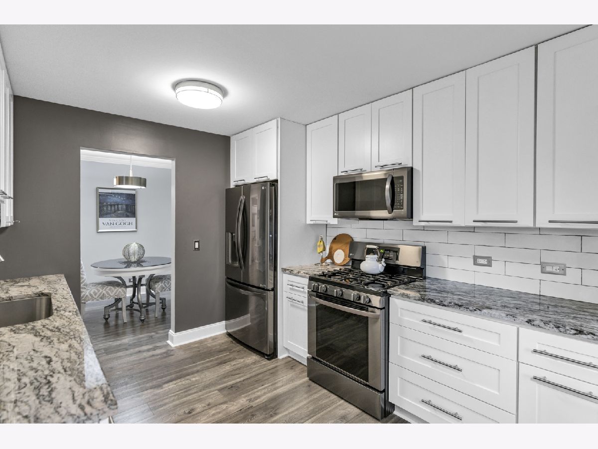 Beautifully updated 2-bedroom, first-floor condo in the desirable Lexington Green community of Schaumburg. This home features an open-concept floor plan with a bright living room offering newer wood laminate flooring, crown molding, a cozy fireplace, and a sliding glass door to the private covered patio, flowing right into the dining area. The completely updated kitchen boasts 42" white cabinetry, under cabinet lighting, granite countertops, LG black stainless steel appliances, subway tile backsplash, a pantry cabinet, and an additional eating area with a second slider to the patio. The spacious primary bedroom includes a walk-in closet and an en-suite bath with an oversized shower and quartz counters. A second bedroom and beautifully updated full hall bath complete the layout. Enjoy being just steps from the clubhouse, outdoor pool, and park, with close proximity to shopping, restaurants, and easy interstate access. Truly move-in ready and a wonderful place to call home!