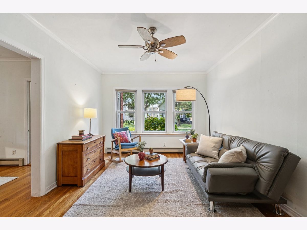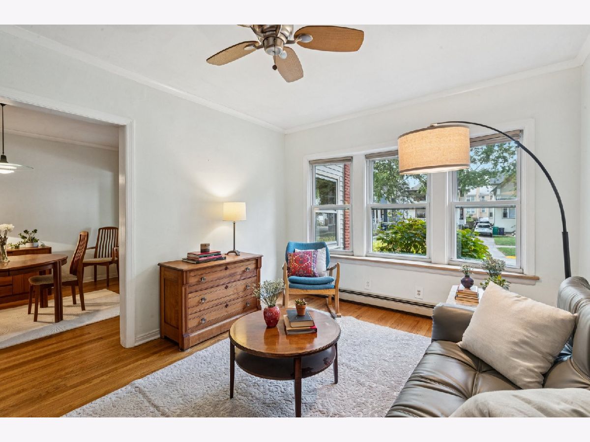 Stylish 1 Bed + Den Condo - Walk-to-Everything Living! This beautifully detailed, high first-floor condo blends timeless vintage charm with modern updates. Flooded with natural light, the spacious layout features rich hardwood floors, oversized windows with serene views, and gorgeous original woodwork that adds warmth and character. The kitchen is perfect for cooking and entertaining, featuring granite countertops, under-cabinet lighting, and plenty of prep and storage space. In-unit laundry room is a huge bonus! Step out to the peaceful back porch-an ideal spot for morning coffee, remote work, or relaxing with friends. Enjoy the convenience of your own assigned parking space just steps from the door, plus a large private storage area in the basement. Perfectly located across from Stevenson Park and within walking distance to schools, Pete's Market, One Lake Brewery, the Green Line, Ridgeland Commons, and the Farmer's Market-this is the ultimate in Oak Park living!