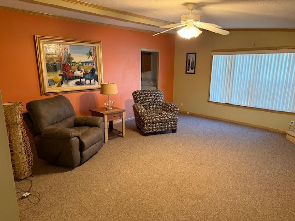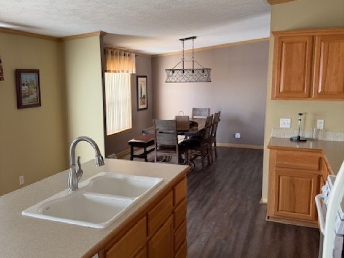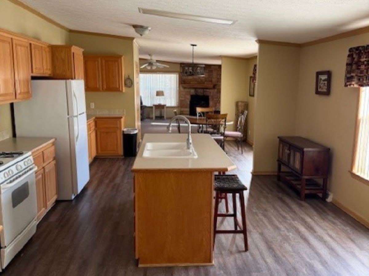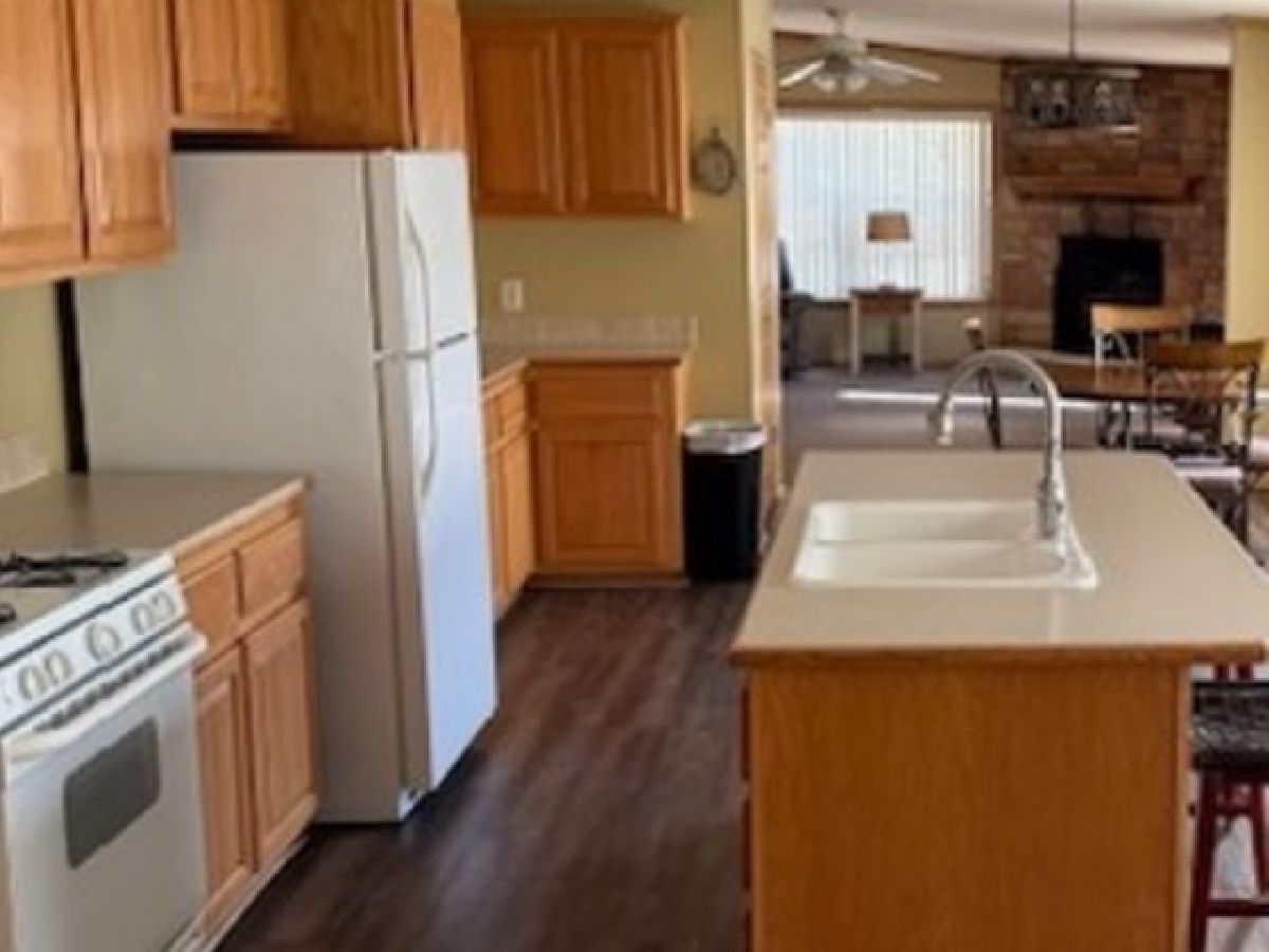 You will love this very spacious 3 bedroom, 2 full bath Redman Home with over 2350 square feet of living space. There is a formal living room for entertaining plus a family room where you can enjoy the stone woodburning fireplace with rustic mantel. The kitchen features an island with a breakfast bar as well as a lovely breakfast nook. There is an abundance of cabinets plus a walk-in pantry. Brand New roof is currently being installed, furnace installed 2019, Newer luxury vinyl flooring in living room, dining room, kitchen and breakfast nook installed in 2018, new carpeting in family room 2018, new Bosch dishwasher in 2023, new industrial style lighting in Dining Room, Living Room and Breakfast nook in 2018. Total of 3 walk-in closets, utility sink in laundry room. Outdoors there is a large patio in between the home and garage, a very spacious garage and lots of perennials. Home has also just been professionally cleaned. This is an Estate Sale and sold "AS-IS". There will also be several pieces of furniture for sale. This is a 55+ Community. Park approval required.