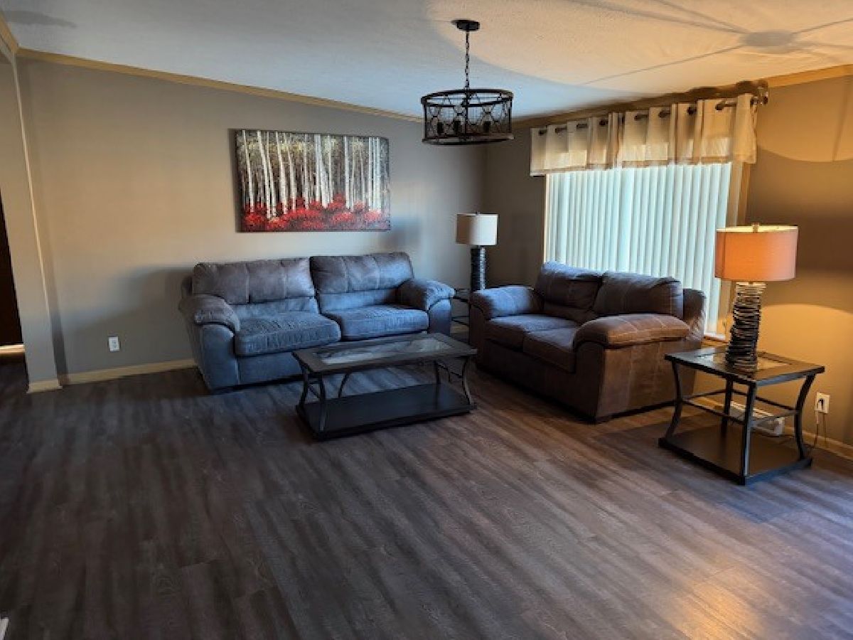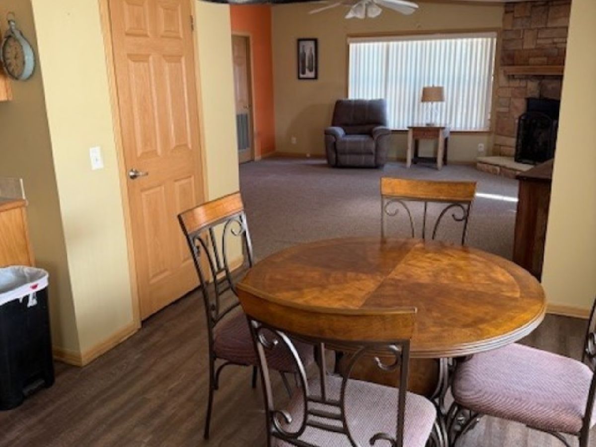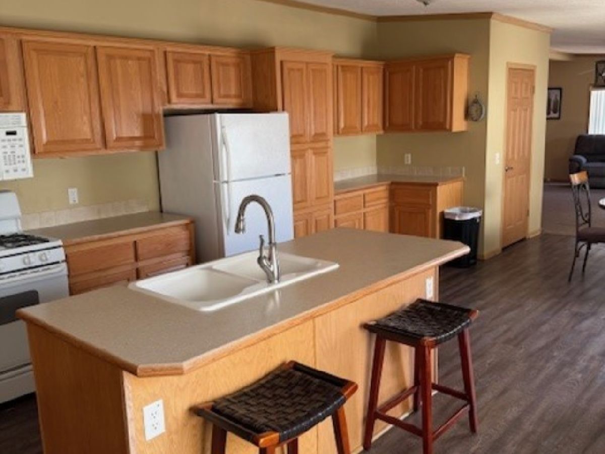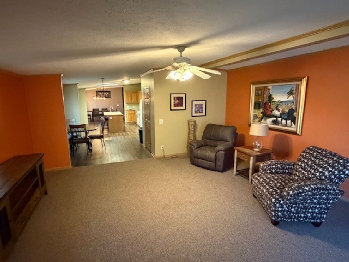 You will love this very spacious 3 bedroom, 2 full bath Redman Home with over 2350 square feet of living space. There is a formal living room for entertaining plus a family room where you can enjoy the stone woodburning fireplace with rustic mantel. The kitchen features an island with a breakfast bar as well as a lovely breakfast nook. There is an abundance of cabinets plus a walk-in pantry. Brand New roof is currently being installed, furnace installed 2019, Newer luxury vinyl flooring in living room, dining room, kitchen and breakfast nook installed in 2018, new carpeting in family room 2018, new Bosch dishwasher in 2023, new industrial style lighting in Dining Room, Living Room and Breakfast nook in 2018. Total of 3 walk-in closets, utility sink in laundry room. Outdoors there is a large patio in between the home and garage, a very spacious garage and lots of perennials. Home has also just been professionally cleaned. This is an Estate Sale and sold "AS-IS". There will also be several pieces of furniture for sale. This is a 55+ Community. Park approval required.