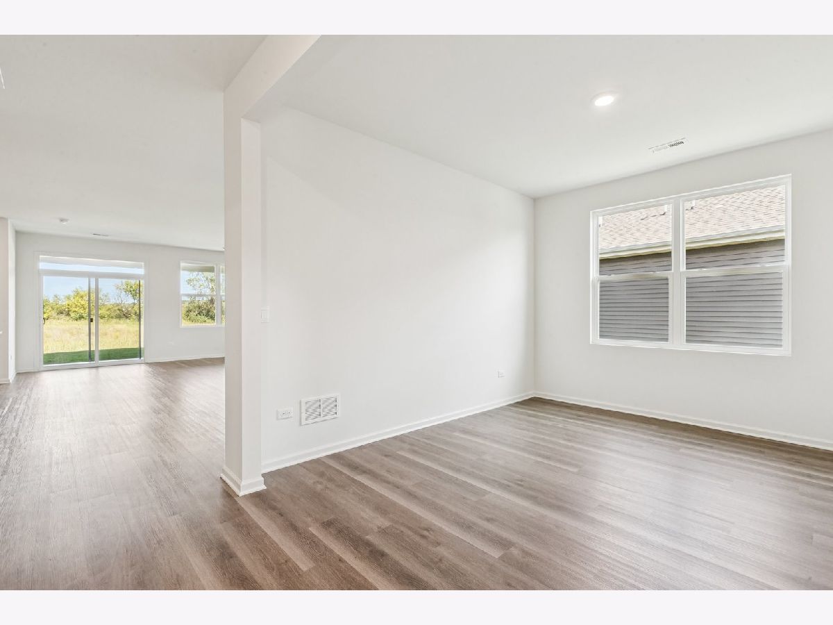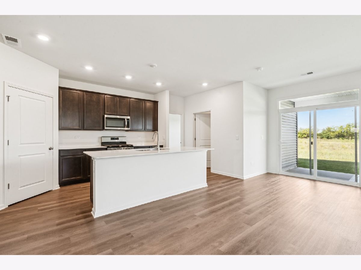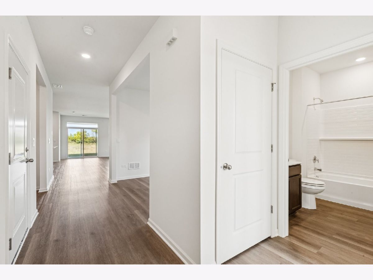 Envision yourself at 1270 Wild Tulip Circle in Bartlett, Illinois, a beautiful new home in The Grasslands community. This ranch home is move-in ready! Scenic homesite backs to an open ground and includes a fully sodded yard and covered back patio. This Clifton plan offers 1,863 square feet of living space with a flex room, 2 bedrooms, 2 baths, and 9-foot ceilings. When you first enter the home, there is a secondary bedroom, full bath, and a flex room. Down the hall, you will walk into the open concept great room and kitchen. The kitchen layout includes a large island with an overhang for stools, 42-inch designer cabinetry with crown molding and soft close drawers. Additionally, the kitchen features a walk-in pantry, modern stainless-steel appliances, quartz countertops, and easy-to-maintain luxury vinyl plank flooring. Enjoy your private get away with your spacious primary bedroom and en suite bathroom with a raised height dual sink, quartz top vanity, and walk-in seated shower with ceramic tile walls, and clear class shower doors. Future amenities include walking paths, and bike paths. All Chicago homes include our America's Smart-Home Technology, featuring a smart video doorbell, smart Honeywell thermostat, smart door lock, Deako smart light switches and more. Photos are of actual home.