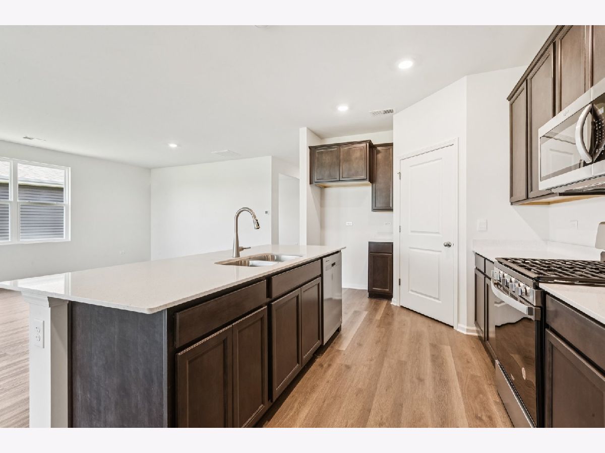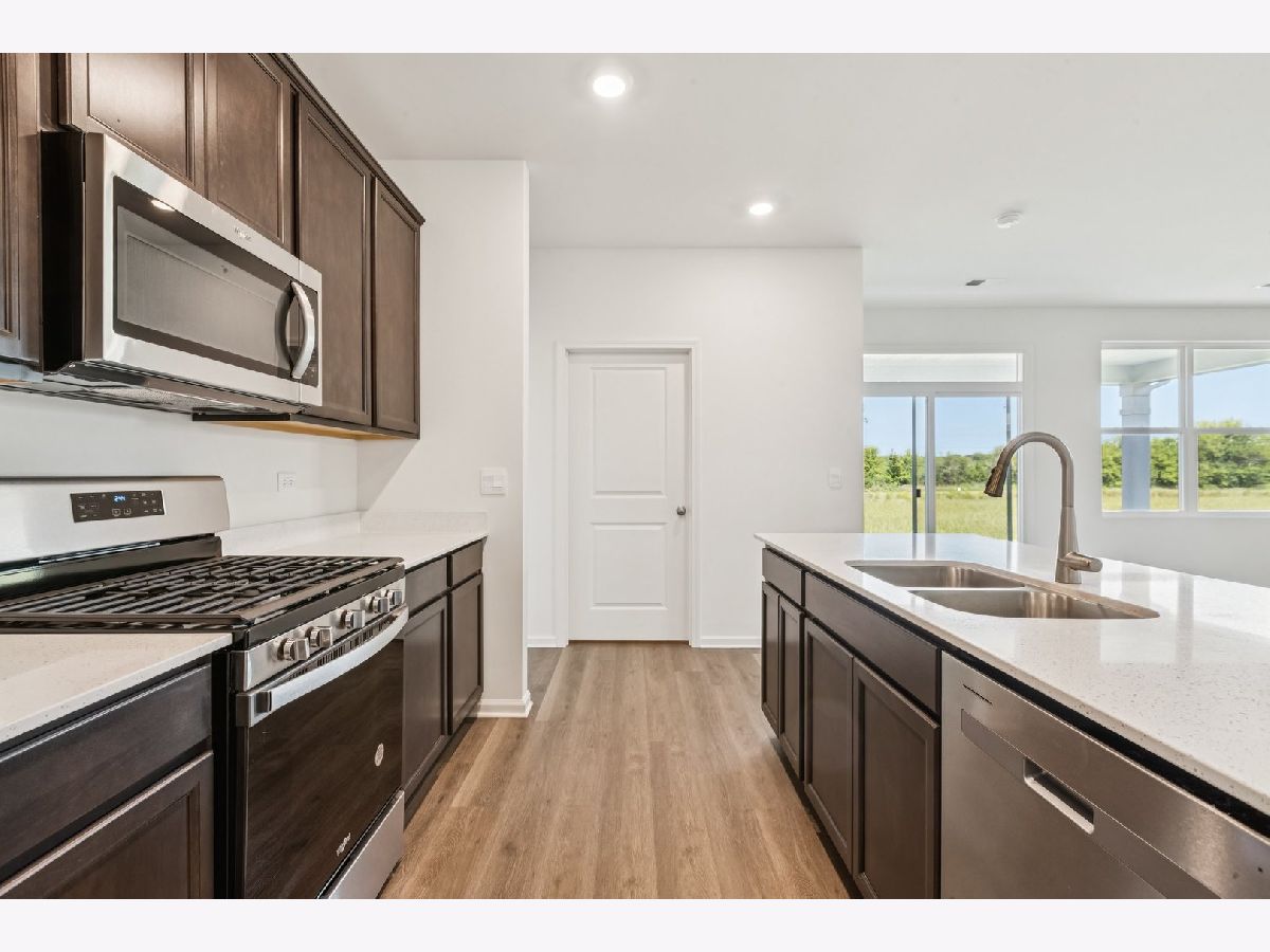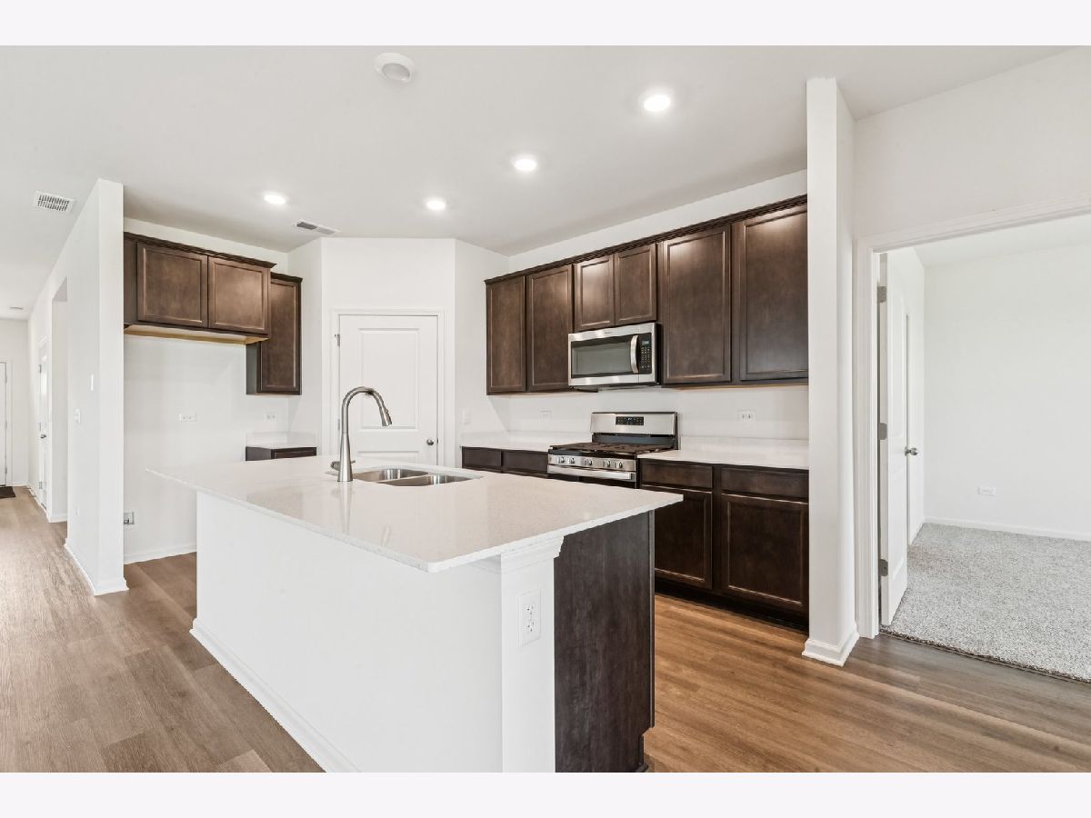 Envision yourself at 1270 Wild Tulip Circle in Bartlett, Illinois, a beautiful new home in The Grasslands community. This ranch home is move-in ready! Scenic homesite backs to an open ground and includes a fully sodded yard and covered back patio. This Clifton plan offers 1,863 square feet of living space with a flex room, 2 bedrooms, 2 baths, and 9-foot ceilings. When you first enter the home, there is a secondary bedroom, full bath, and a flex room. Down the hall, you will walk into the open concept great room and kitchen. The kitchen layout includes a large island with an overhang for stools, 42-inch designer cabinetry with crown molding and soft close drawers. Additionally, the kitchen features a walk-in pantry, modern stainless-steel appliances, quartz countertops, and easy-to-maintain luxury vinyl plank flooring. Enjoy your private get away with your spacious primary bedroom and en suite bathroom with a raised height dual sink, quartz top vanity, and walk-in seated shower with ceramic tile walls, and clear class shower doors. Future amenities include walking paths, and bike paths. All Chicago homes include our America's Smart-Home Technology, featuring a smart video doorbell, smart Honeywell thermostat, smart door lock, Deako smart light switches and more. Photos are of actual home.