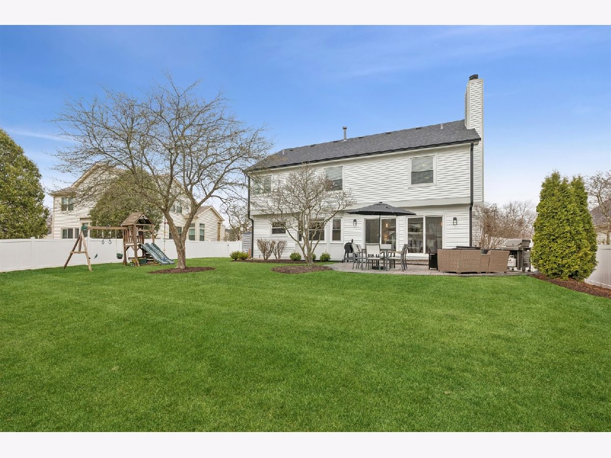 Welcome to this beautifully updated 4-bedroom, 2.5-bath two-story home in the highly desirable Chestnut Corners of Lake Zurich. Thoughtfully improved from top to bottom, this home seamlessly blends modern updates with timeless comfort in an unbeatable location. The exterior has been completely refreshed with brand new siding and roof (2024), along with Pella windows and sliding patio doors (2019) that fill the home with natural light. Enjoy the newly installed stone patio, professional landscaping, and a new white fiberglass privacy fence-creating the perfect outdoor retreat. The updated garage features a new door and epoxy flooring for a clean, finished look. Inside, you'll find hardwood floors throughout most of the home, complemented by fresh paint, architectural details like vaulted ceilings, crown molding, and wainscoting, and thoughtfully updated lighting-all on dimmer switches for added ambiance. The open-concept main level connects the kitchen, breakfast area, and living space, ideal for both everyday living and entertaining. A standout feature is the custom media wall with built-ins, floating wood shelves, accent lighting, and an electric fireplace with a wood mantel-creating a warm and inviting focal point. Motorized light-filtering roller shades in the family room and Bali blinds throughout add both convenience and style. Upstairs, the spacious bedrooms offer comfort and functionality, including new carpet in three bedrooms and a beautifully designed bedroom featuring a custom accent wall. The primary suite impresses with vaulted ceilings, dual closets, and a spa-like bath with double vanity, soaking tub, and separate shower. Moen plumbing fixtures and updated faucets and showerheads are featured throughout the home. Additional highlights include a refreshed staircase, new tile flooring in the laundry room, and a finished partial basement with a large unfinished storage room and crawl space-offering excellent flexibility and storage options. Mechanically, the home is well-maintained with a newer water heater (2024), HVAC (2017), and kitchen appliances (2018). Located in a welcoming, family-friendly neighborhood with highly rated schools, this home is just minutes from parks, shopping, dining, downtown Lake Zurich, and the beach. Meticulously maintained with clear pride of ownership, this move-in ready home truly has it all.