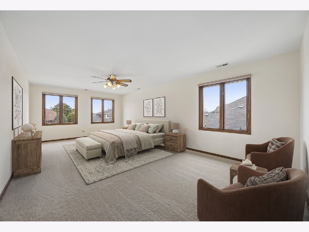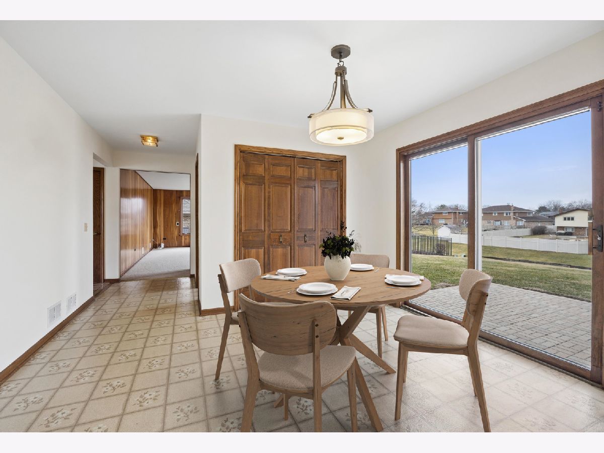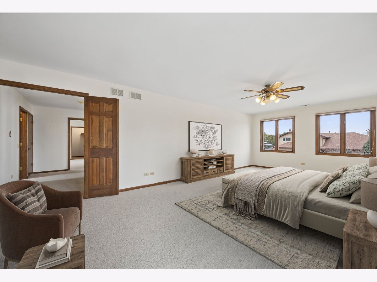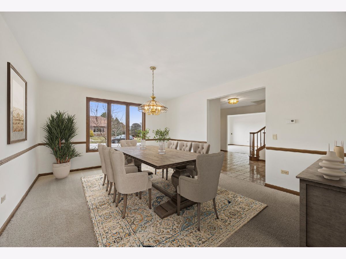 Welcome to this timeless two-story home ideally situated at the end of the block in one of Palos Park's most sought-after neighborhoods within the Sandburg / Stagg "option zone". Backing to Mill Creek, the home enjoys a peaceful, scenic setting with beautiful natural surroundings & added privacy. Complementing its beautiful surroundings, the home offers strong curb appeal that demands attention with a timeless, maintenance-free brick & Hardie Board exterior. Inside, you are welcomed by a warm & inviting layout featuring spacious living areas; abundant natural light; & a thoughtful floorplan designed for both everyday living & entertaining. As you are welcomed into the home from the spacious foyer, you'll immediately notice the generously sized living & dining rooms, both with abundant windows, fresh paint, & brand new carpeting - a blank canvas offering endless possibilities to create functional, beautifully designed spaces. The focal point of the home is the incredibly cozy family room, which was bumped-out from the original floorplan to add space where it's needed most. The family room features windows overlooking the scenic backyard, a floor-to-ceiling brick fireplace with wood mantle, & wet bar. The kitchen features a functional layout with abundant cabinetry; ample countertop space; peninsula with room for seating; sleek stainless steel appliances; window overlooking the backyard; & spacious dining area for seamless everyday living & gathering. Upstairs you'll find the expansive primary suite plus three additional bedrooms. The primary suite features a walk-in closet with shelving, vanity area, & bathroom with step-in shower. The additional bedrooms also feature ample closet space in the walk-in closets; natural light; fresh paint & carpet; & share a spacious full hall bathroom. The FINISHED basement expands the home's living space with a comfortable rec room, a spacious storage room, & a huge concrete crawl space offering plenty of additional storage. The stunning backyard is complete with a large brick paver patio overlooking Mill Creek. These original owners have loved this home & are proud to be offering it for the first time ever! Recent upgrades include: brand new tear off roof, gutters, & fascia (2025); newer Hardie Board siding & trim (2022); new water heater (2025); freshly painted throughout main & upper levels (2026); & brand new carpeting installed (2026). Located within the highly rated Palos 118 / 230 school districts & the coveted Sandburg / Stagg "option zone" in which homeowners can choose which high school their children attend. Close to abundant shopping, dining, & transportation options - all while being minutes from various forest preserves, nature trails, lakes, & more! Don't miss your opportunity to own this beautiful home!