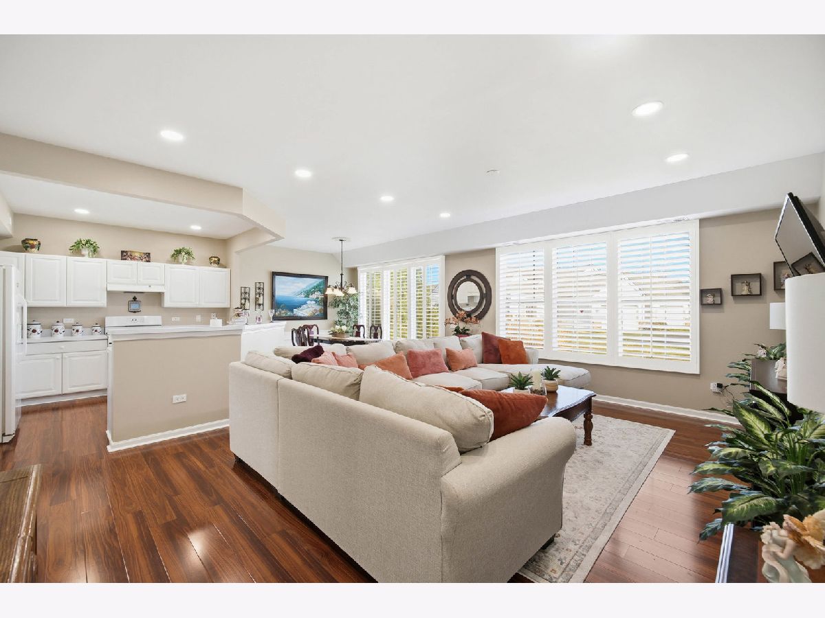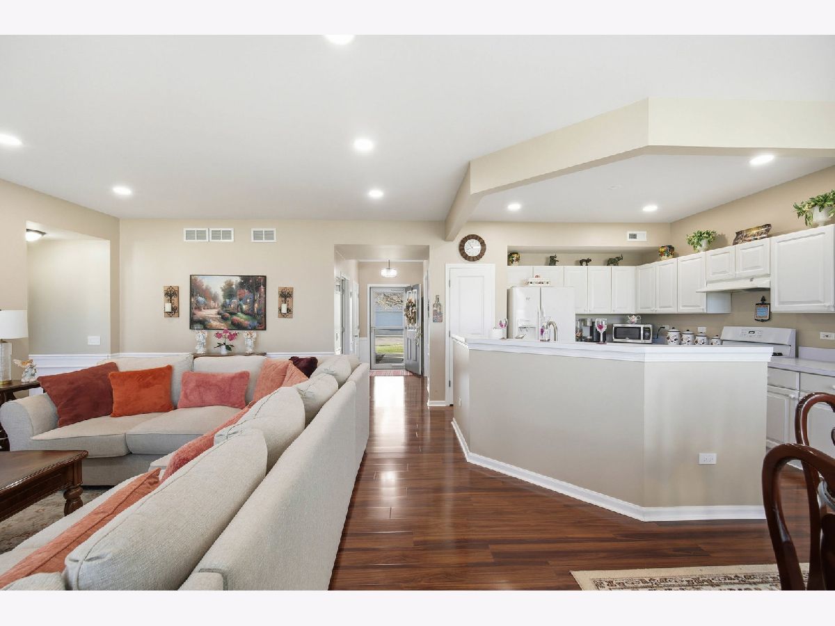 Beautifully updated with 2 bedroom, 2 baths, oversized two car garage, this unit is ready for you to move in. With 9 foot ceilings, wainscotting in living and dining rooms, canned lights in living & kitchen, recently painted in neutral tones, this unit will not disappoint you. Also features upgraded laminate floors throughout. The kitchen boasts newer white appliances and coupled with white cabinets, it overlooks the dining and living rooms, giving an open layout concept ideal for entertaining. All window treatments are in the form of white shutters for a very clean and bright appearance. Master bedroom also offers a tray ceiling and fan. Master bathroom feature a newer commode, a shower stall, dual vanity and a decent sized walk in closet The second bedroom can serve as a guest room or office with easy access to second bathroom and full linen closet. Utility room has extra cabinets for storage and access to an oversized garage. HOA has replaced the roof this year. Water heater and kitchen appliances are newer when seller purchased it five years ago. Enjoy maintenance free living and all that Del Webb Sun City has to offer, including indoor/outdoor pools, fitness centers, tennis, pickleball, bocce, golf and numerous clubs and social activities. Be a part of a resort-style living in one of Huntley"s most desirable adult community.