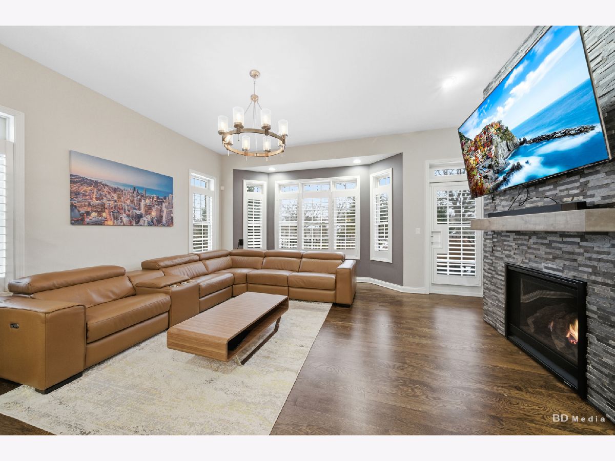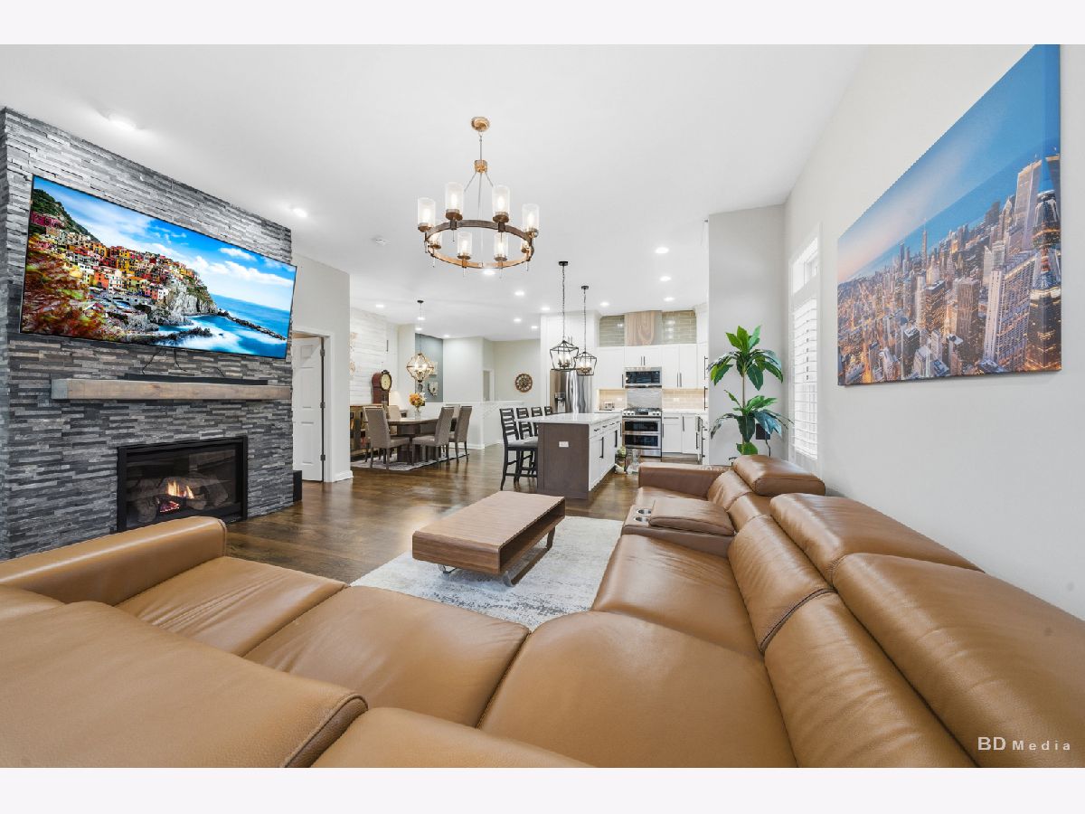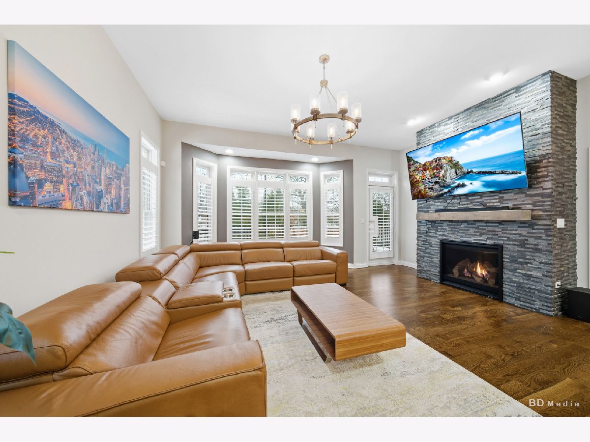 Experience luxury ranch-style living in this fully updated 4-bedroom, 3-bath townhouse located in the prestigious Estates of Montefiori in Lemont. Truly turnkey and loaded with high-end upgrades, this home offers exceptional quality that surpasses new construction. The main level features 5-inch plank oak hardwood flooring, custom 3-inch plantation shutters throughout, recessed lighting with dimmers, and premium Andersen pull-in windows that flood the space with natural light. The open-concept layout is anchored by a stunning chef's kitchen designed for entertaining. Highlights include custom cabinetry extending to 10-foot ceilings, under-cabinet lighting, pull-out drawers, quartz and granite countertops, a large center island, tile and stainless-steel backsplash to the ceiling, upgraded Samsung double oven with air fryer, microwave with grilling feature, upgraded refrigerator with pocket-door water/ice dispenser, farmhouse sink with extendable faucet, and a built-in wine/coffee bar with wine cooler. The living room showcases a floor-to-ceiling slate stone fireplace with wood mantle and picturesque backyard views. The spacious primary suite offers a custom shiplap accent wall, designer ceiling fan, walk-in closet with built-ins, and a spa-inspired bath featuring upgraded tile, custom cabinetry, quartz countertops, and tiled shower and tub surrounds. A well-appointed first-floor laundry room includes a built-in Lazy Susan ironing board with outlet, wall-mounted clothes hanger with timer, and utility sink with cabinet. The fully finished basement expands your living space with durable epoxy flooring, recessed lighting, a custom wet bar with quartz counters and full refrigerator, workout room, expansive family room with built-in fireplace feature, fourth bedroom, full bath with spa-style tiled shower, additional kitchen workspace with sink, stackable washer/dryer, and abundant storage including crawlspace access. The exterior impresses with brick and stone construction, custom landscape stone retaining wall with lighting, professional landscaping, community sprinkler system, and an extended lot featuring a two-tier deck that flows into a brick paver patio-perfect for outdoor entertaining. Ideally located adjacent to the renowned Cog Hill Golf Course, this exceptional home offers luxury, functionality, and unmatched value. Seller prefers a quick closing. Schedule your private showing today!