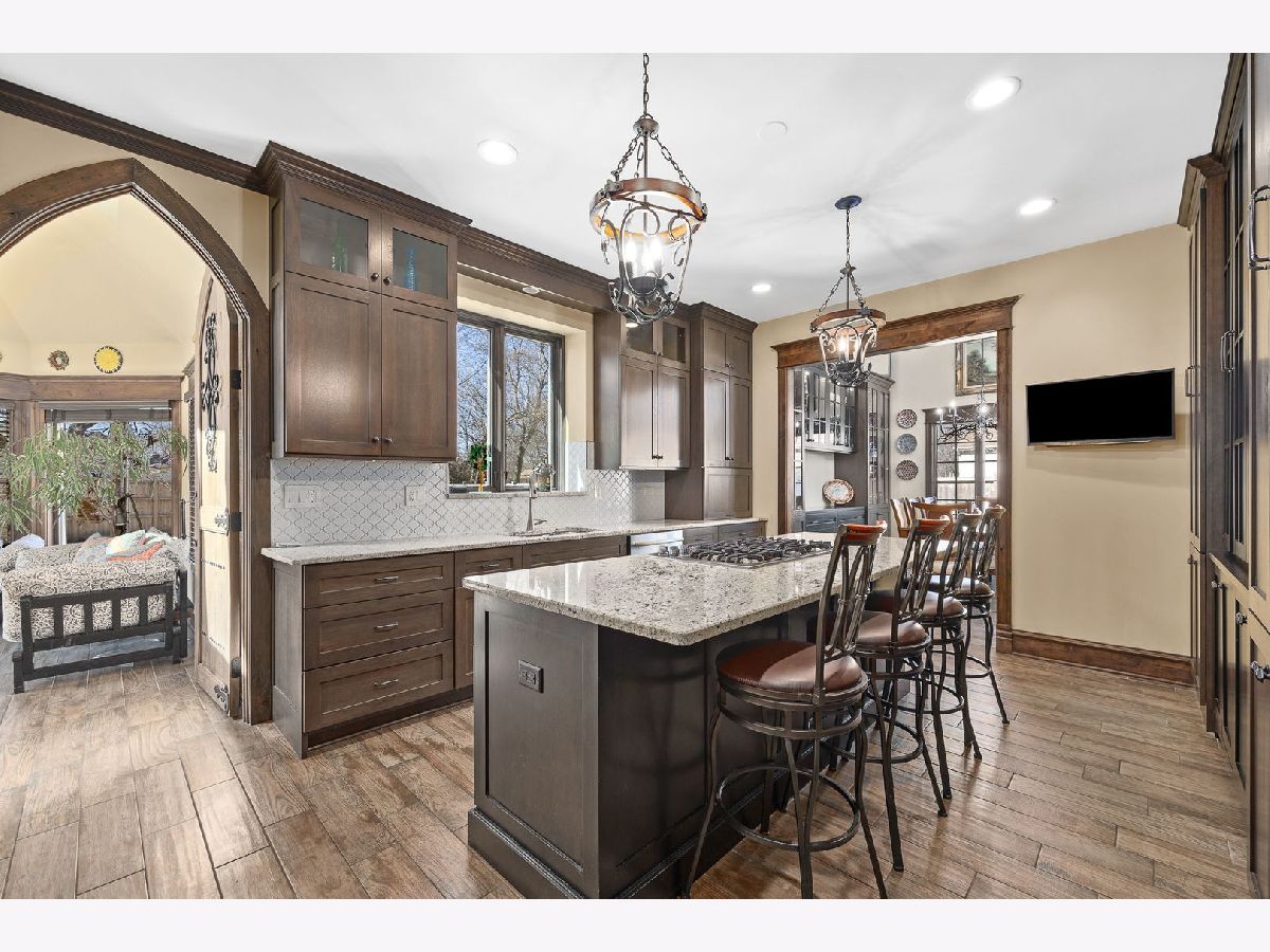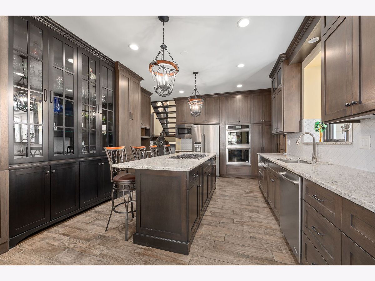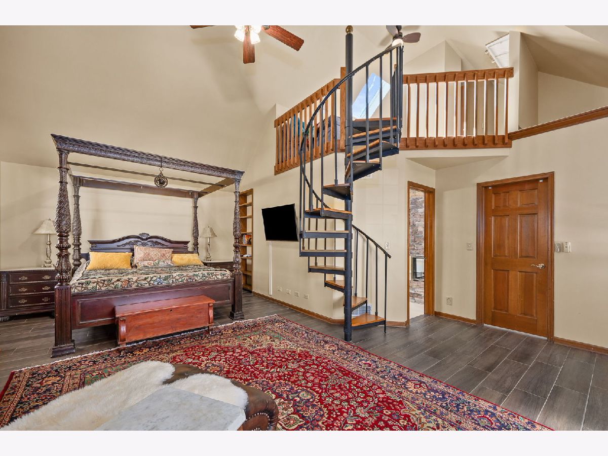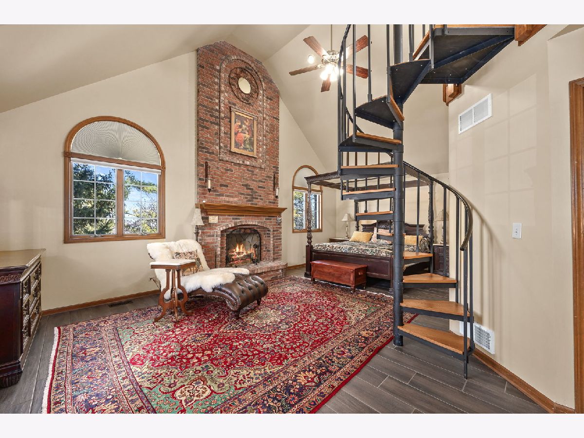 Welcome to a residence that beautifully blends timeless craftsmanship with modern sophistication. Every feature of this exceptional four-bedroom, four-bath custom home has been thoughtfully designed to deliver both comfort and grandeur. Step through the solid redwood front door, crafted from California timber, and into a world of elegance-where 19-foot ceilings, rich textures, and fine materials define each space. The family room is a statement of artistry, showcasing 150-year-old reclaimed barn wood and Vermont stone surrounding one of six hand-crafted gas fireplaces. The gourmet kitchen offers refined practicality with custom Euro Tech cabinetry, granite countertops, and soft-close drawers, flowing effortlessly to the formal dining room, where built-in illuminated cabinetry with felt-lined drawers provides a graceful showcase for fine tableware. The primary suite is a true sanctuary, featuring a dramatic floor-to-ceiling fireplace, and a spiral staircase leading to a private loft-once used as an additional custom closet. The luxurious en suite bath offers a standalone Super AeroMassage Oceania freestanding tub, separate shower, fireplace, and a dedicated tankless water heater. A spacious walk-in closet completes this serene retreat. Two additional second-floor bedrooms each include their own private lofts, offering wonderful flexibility as playrooms, creative spaces, or home offices. The third-floor loft is an impressive open area overlooking the first floor-a perfect setting for entertaining. Currently home to a pool table and piano, this inviting space once hosted parties and served as the perfect spot for a DJ. Its open design makes it adaptable to any vision-a game room, music lounge, or grand entertaining area. On the lower level, you'll find a warm and inviting family room anchored by a striking fireplace, along with a fourth bedroom featuring an updated attached full bath-ideal for guests or a private office. The finished basement extends your living options even further, complete with a full bath featuring a built-in sauna for relaxation and rejuvenation. Throughout the home, elevated design elements abound: knotty alder wood trim, Turkish wood flooring in the sunroom, and custom built-ins that highlight premium craftsmanship. Additional amenities include a heated garage with epoxy flooring, cedar shake roof (installed approx. five years ago), remodeled second-floor bath, and a whole-home Centravac system. Set on an oversized lot, this property's outdoor living is equally impressive, featuring a large brick paver patio, fenced yard, and a two-story shed with endless possibilities-convert it into a studio, entertainment pavilion, or luxury she-shed. Every inch of this home reflects expert design, impeccable care, and inviting comfort-a residence where timeless materials and thoughtful architecture come together to create a truly exceptional living experience.