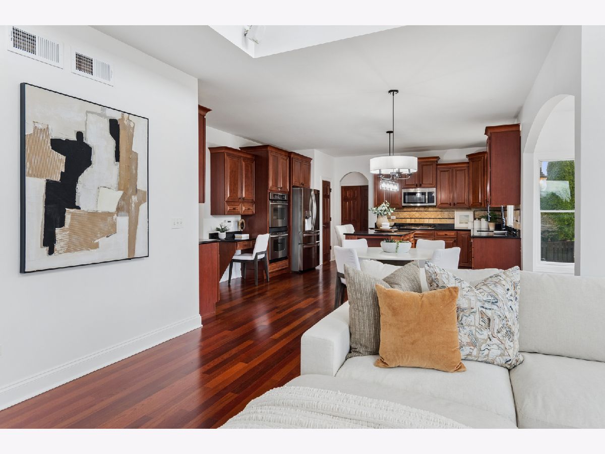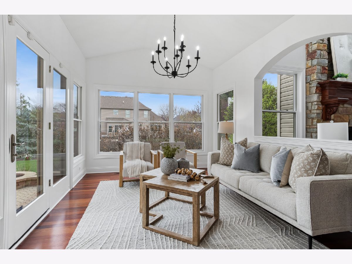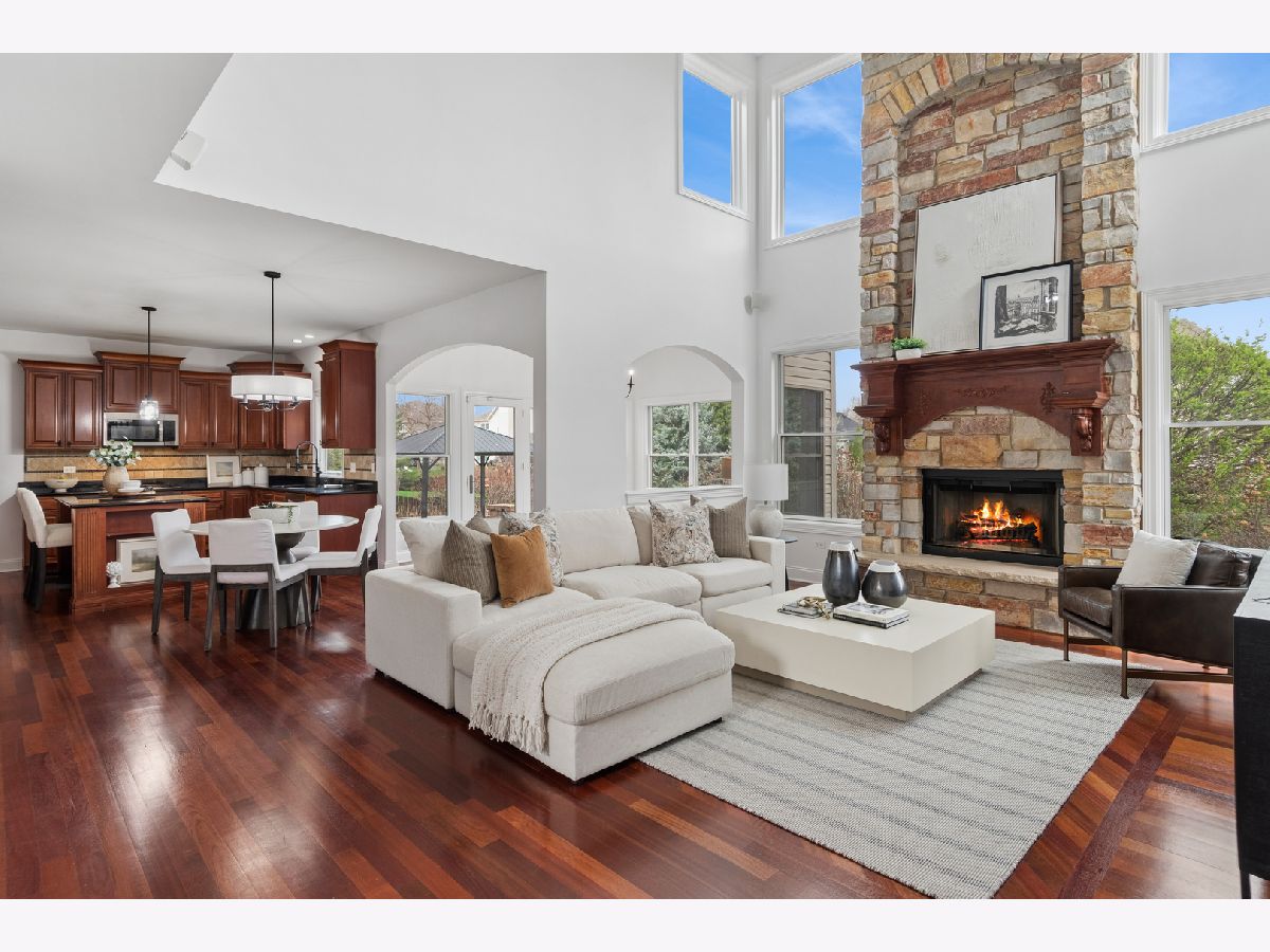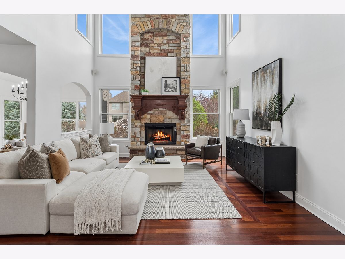 FRESHLY UPDATED, FABULOUS & JUST A SHORT STROLL TO THE GRANDE PARK POOL & TENNIS COURTS! OVER 5,000 SQUARE FT. OF LUXURIOUS LIVING SPACE including a finished basement. Recently PAINTED THROUGHOUT IN BENJAMIN MOORE'S "CHANTILLY LACE", INCLUDING trims, this home radiates light & elegance from the moment you step inside. The main level showcases NEWLY REFINISHED Brazilian Cherry hardwood floors, while the upper level offers BRAND-NEW PLUSH CARPETING for ultimate comfort. A dramatic two-story foyer & family room with a floor-to-ceiling stone fireplace set the tone for luxury, complemented by an elegant turned staircase, upstairs catwalk, light-filled sunroom, tray ceilings, graceful archways, bay windows, & French doors. The chef's kitchen is designed for both everyday living & entertaining, featuring a spacious eat in center island, stainless steel appliances, butler's pantry with beverage fridge, & a sunroom leading to the backyard FENCED IN retreat-complete with a paved patio with seat wall, fire pit, pergola and lush landscaping. Upstairs, you'll find 4 generous sized bedrooms, including a serene primary suite with a spa-like bath, a MASSIVE CUSTOM WALK-IN CLOSET WITH STUNNING BUILT-INS, plus an additional closet so you don't have to share! The fully finished, recently renovated basement offers incredible versatility with 3 additional bedrooms, an office, exercise room, playroom, expansive recreation area, wet bar, and plenty of storage. Additional highlights include AWARD WINNING SCHOOL DISTRICT 308 , UPDATED LIGHT FIXTURES, A REFRESHED ASPHALT DRIVEWAY, HOT WATER HEATER(2021) & THE ROOF about 5 YEARS OLD. Resort-style amenities , fantastic school & vibrant lifestyle can be yours in the picturesque Grande Park with access to pool, tennis & basketball courts, a roller-hockey court, sand volleyball, & winter amenities including 2 skating rinks & a sledding hill!