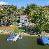Picture-perfect and lake-life ready! This stunning 4-bedroom, 3-bath home sits on a flat lot with a private sandy beach, walk-out basement, and front-row seats to the best of Lake Holiday. Thoughtfully and continuously upgraded, both the home and grounds are completely move-in ready. Inside sports a brand-new kitchen featuring indigo blue cabinetry, quartz countertops, a porcelain farmhouse sink, white subway tile backsplash and black walnut shelving. A dramatic two-story living room with a wood-burning fireplace flows effortlessly into a light-drenched sunroom where walls of windows frame forever lake views. There's a convenient first floor primary suite while two lofted bedrooms upstairs share a Jack-and-Jill bath. With three full levels of living, the walk-out basement hosts a second king-size sleeping area, additional family room, cozy seating space, and sliding doors that lead straight to the hot tub. Step outside to the best of summer living: a brand-new two-level Trex deck, heated pool, paver fire pit, and a charming walkway down to your own beach. The massive, year-round floating aluminum dock stays, making lake days effortless. A 2-car attached garage, custom cedar storage shed with a play loft, along with a short walk to the zip-line at Beach #2, put the finishing touches on this exceptional home. Lake life doesn't get better than this. Broker owned