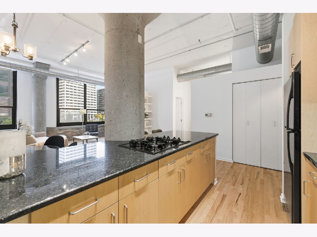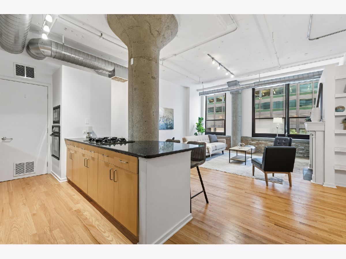 Truly a one-of-a-kind, east-facing loft in the sought-after Metropolitan Place - now featuring, new flooring (2025), new stainless dishwasher (2025) newer HVAC (2024). TWO PARKING SPOTS SOLD SEPARATELY. This expansive 2-bed/2-bath layout boasts FULLY enclosed bedrooms, soaring 11-foot ceilings, and a stylish granite/maple kitchen with a gas fireplace. Enjoy incredible natural light and lush, sunny city views through oversized east-facing windows. The primary suite stuns with a massive custom walk-in closet and spa-like marble, granite, and slate finishes. Additional features include side-by-side in-unit laundry, a sleek open-concept layout, and hardwood floors throughout the main living area. Located literally across the hall from the building's giant, common rooftop sundeck - think grilling, relaxing, and entertaining just steps from your front door. Metropolitan Place offers 24-hour door staff, onsite dry cleaning, car wash service, and unbeatable access to CTA, Metra, Union Station, and everything the vibrant West Loop and Loop Gate have to offer - from award-winning dining to boutique shopping and daily conveniences. This is urban loft living at its finest - modern upgrades, killer location, and luxury amenities. Don't miss out!