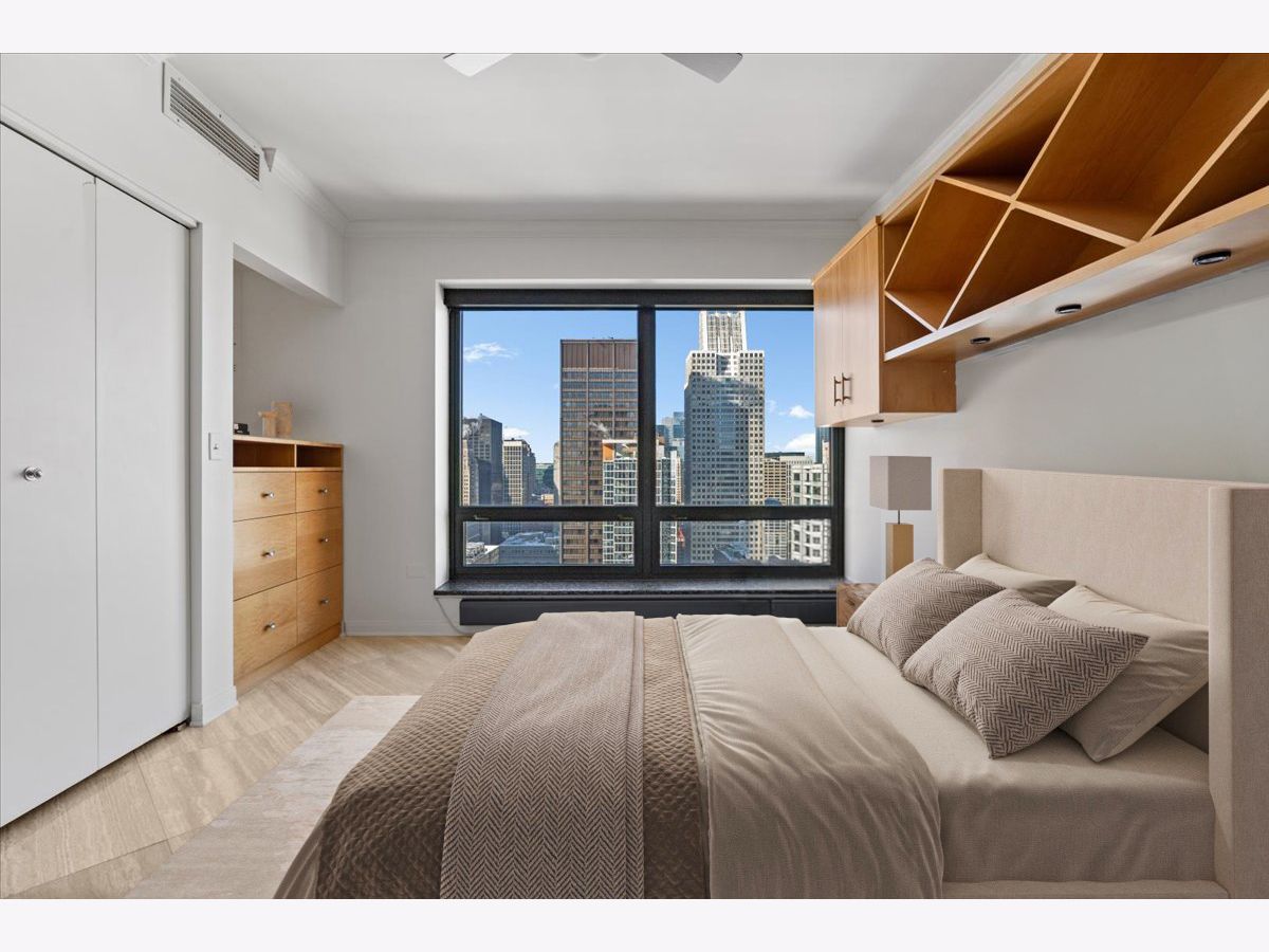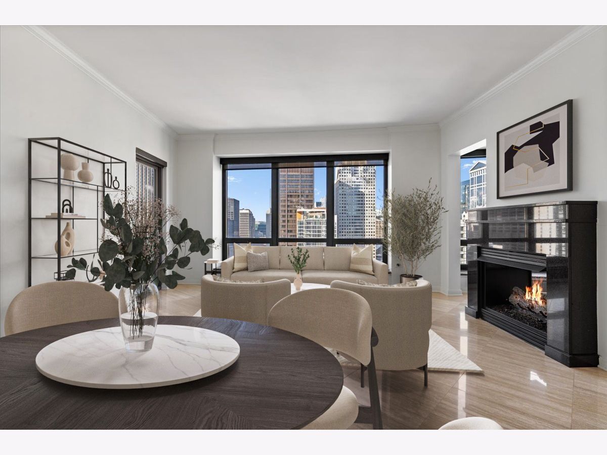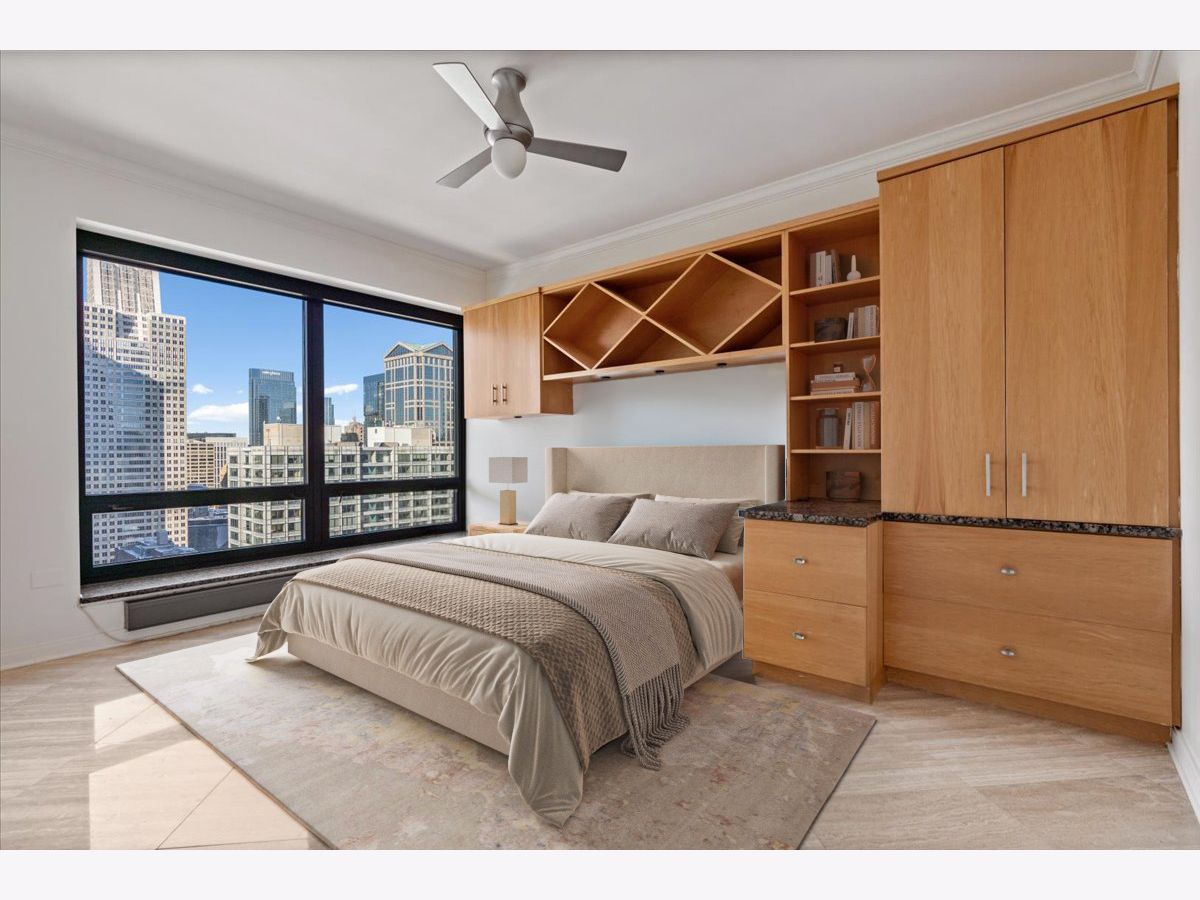 ENJOY AMAZING SKYLINE VIEWS FROM THIS HIGH-FLOOR CONDO LOCATED AT THE HERITAGE AT MILLENNIUM PARK! AN INCREDIBLE VALUE AT ALMOST 1700 SQ. FT., THIS 3BED 2 BATH UNIT HAS THE ROOM YOU ARE LOOKING FOR. MOVE THROUGH THE LARGE FOYER AND ENTER INTO THE OVERSIZED COMBINED LIVING AND DINING ROOM THAT INCLUDES A DOUBLE-SIDED GAS FIREPLACE SHARED WITH THE NOW DEN WHICH CAN BE EASILY CONVERTED TO THE THIRD BEDROOM. ENTERTAIN WHILE YOU COOK FROM THE OPEN KITCHEN OVERLOOKING THE LIVING AND DINING ROOM SPACES. THE ENTIRE HOME IS ADORNED WITH BEAUTIFUL 18" MARBLE TILE. THE SPACIOUS PRIMARY BEDROOM OFFERS A WALK-IN CLOSET AND ENSUITE BATH COMPLETE WITH SEPARATE TUB AND SHOWER. THE SECOND BEDROOM IS ALSO SPACIOUS AND FEATURES CUSTOM BUILT-IN CABINETRY. CUSTOM CLOSETS, MOTORIZED SHADES AND SIDE-BY-SIDE IN-UNIT LAUNDRY ADD TO THIS GREAT BUYING OPPORTUNITY. ENJOY PEACEFUL SUNSETS AND CITY VIEWS FROM THE PRIVATE BALCONY. THE HERITAGE IS A FULL-AMENITY BUILDING OFFERING 24HR. DOOR STAFF, ON-SITE MANAGEMENT, MULTIPLE SUNDECKS, INDOOR POOL, HOT TUB, SAUNA, FITNESS CENTER, CLUBHOUSE, AND DOG RUN. JUST OFF OF MICHIGAN AVE., ENJOY WORLD-CLASS SHOPPING AND DINING, GRANT PARK, MILLENNIUM PARK AND THE ENDLESS AMOUNT OF CULTURAL EXPERIENCES THE AREA OFFERS. ACCESS IT ALL FROM THE PEDWAY THATS ATTACHED TO THE BUILDING WHILE ALSO HAVING EASY ACCESS TO LSD, THE REDLINE AND THE INTERSTATE. DEEDED PARKING CAN BE PURCHASED FROM OTHER OWNERS WITHIN THE BUILDING.