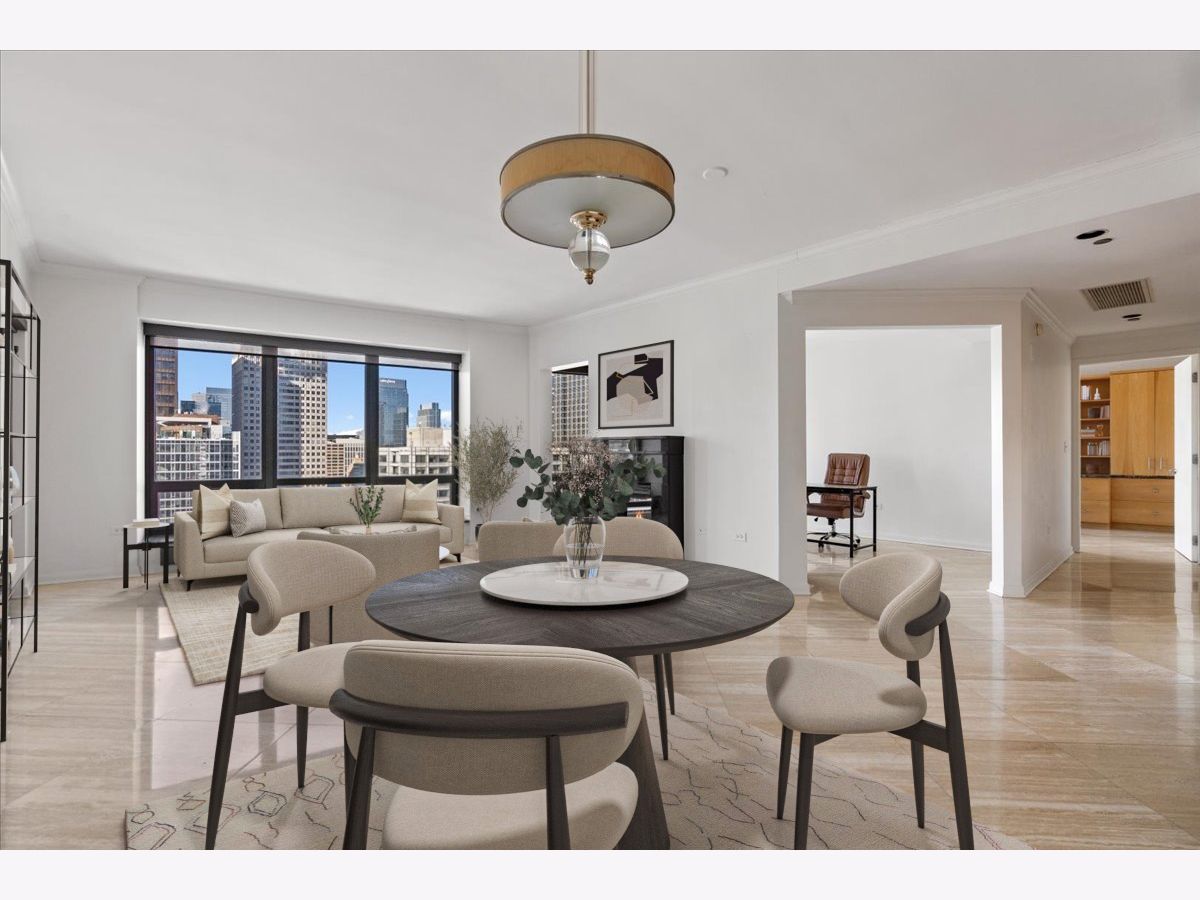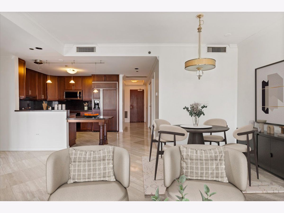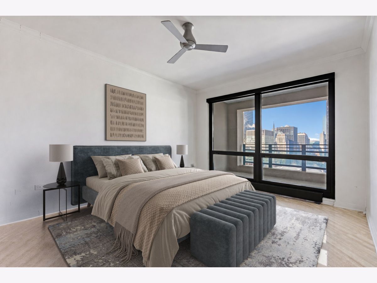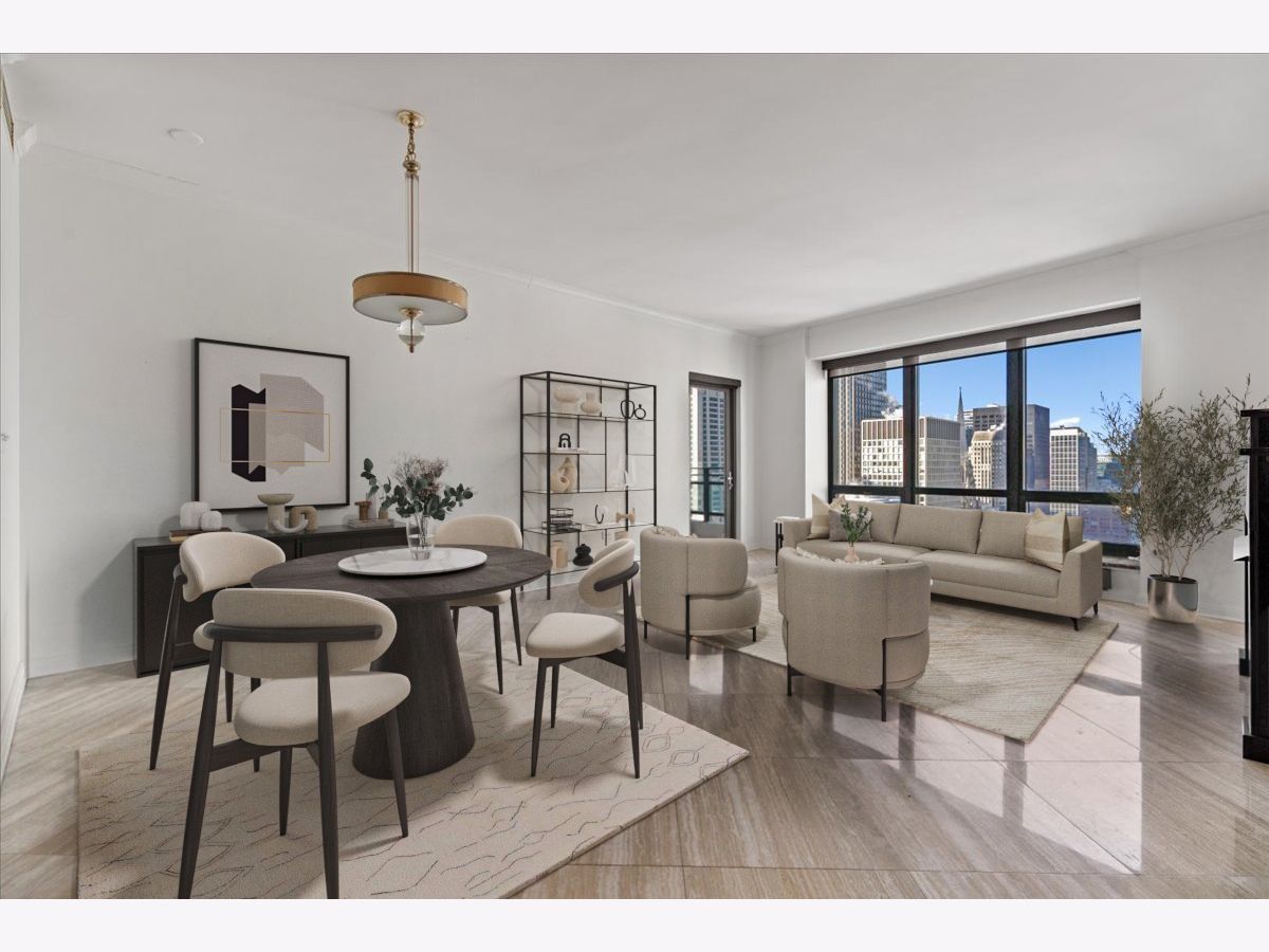 ENJOY AMAZING SKYLINE VIEWS FROM THIS HIGH-FLOOR CONDO LOCATED AT THE HERITAGE AT MILLENNIUM PARK! AN INCREDIBLE VALUE AT ALMOST 1700 SQ. FT., THIS 3BED 2 BATH UNIT HAS THE ROOM YOU ARE LOOKING FOR. MOVE THROUGH THE LARGE FOYER AND ENTER INTO THE OVERSIZED COMBINED LIVING AND DINING ROOM THAT INCLUDES A DOUBLE-SIDED GAS FIREPLACE SHARED WITH THE NOW DEN WHICH CAN BE EASILY CONVERTED TO THE THIRD BEDROOM. ENTERTAIN WHILE YOU COOK FROM THE OPEN KITCHEN OVERLOOKING THE LIVING AND DINING ROOM SPACES. THE ENTIRE HOME IS ADORNED WITH BEAUTIFUL 18" MARBLE TILE. THE SPACIOUS PRIMARY BEDROOM OFFERS A WALK-IN CLOSET AND ENSUITE BATH COMPLETE WITH SEPARATE TUB AND SHOWER. THE SECOND BEDROOM IS ALSO SPACIOUS AND FEATURES CUSTOM BUILT-IN CABINETRY. CUSTOM CLOSETS, MOTORIZED SHADES AND SIDE-BY-SIDE IN-UNIT LAUNDRY ADD TO THIS GREAT BUYING OPPORTUNITY. ENJOY PEACEFUL SUNSETS AND CITY VIEWS FROM THE PRIVATE BALCONY. THE HERITAGE IS A FULL-AMENITY BUILDING OFFERING 24HR. DOOR STAFF, ON-SITE MANAGEMENT, MULTIPLE SUNDECKS, INDOOR POOL, HOT TUB, SAUNA, FITNESS CENTER, CLUBHOUSE, AND DOG RUN. JUST OFF OF MICHIGAN AVE., ENJOY WORLD-CLASS SHOPPING AND DINING, GRANT PARK, MILLENNIUM PARK AND THE ENDLESS AMOUNT OF CULTURAL EXPERIENCES THE AREA OFFERS. ACCESS IT ALL FROM THE PEDWAY THATS ATTACHED TO THE BUILDING WHILE ALSO HAVING EASY ACCESS TO LSD, THE REDLINE AND THE INTERSTATE. DEEDED PARKING CAN BE PURCHASED FROM OTHER OWNERS WITHIN THE BUILDING.