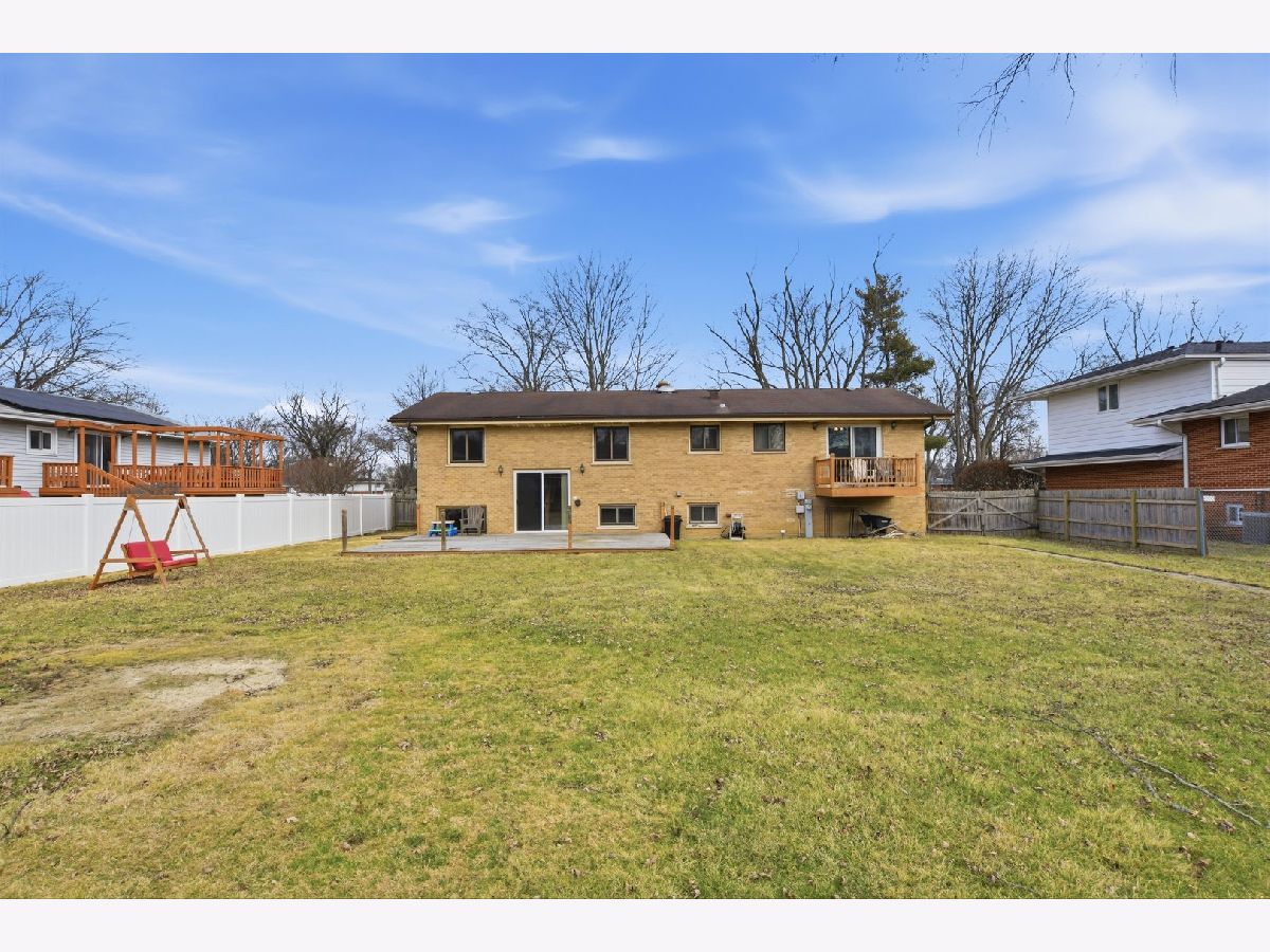 Spacious 4-bedroom, 3-bath home perfectly situated in desirable Mt Prospect's district 26 schools, Hersey High School and steps from Bluett Park and Saint Emily School. Two levels of living space. Main level features open floor plan including living room w/huge bay window and adjoining dining room ideal for hosting large gatherings. Eat-in kitchen w/oak cabinets and Corian countertops. Primary suite w/full bath and balcony overlooking huge fenced-in yard. Hardwood floors and 6-panel doors thru-out main level. Walkout lower-level features large family room perfect for entertaining and 4th bedroom which could be used as an office or workout room. Full bath w/jacuzzi tub. Laundry area and utility room w/ample storage. Newer furnace, a/c and hot water heater. Sump pump w/battery backup recently installed. 2-car attached garage w/extra storage space. Step outside to your private backyard oasis-fully fenced w/large deck and shed. House in move-in ready condition but sold as-is. Enjoy all that Mt Prospect has to offer, including downtown area for dining, shopping or explore nearby forest preserves and trails for outdoor fun.