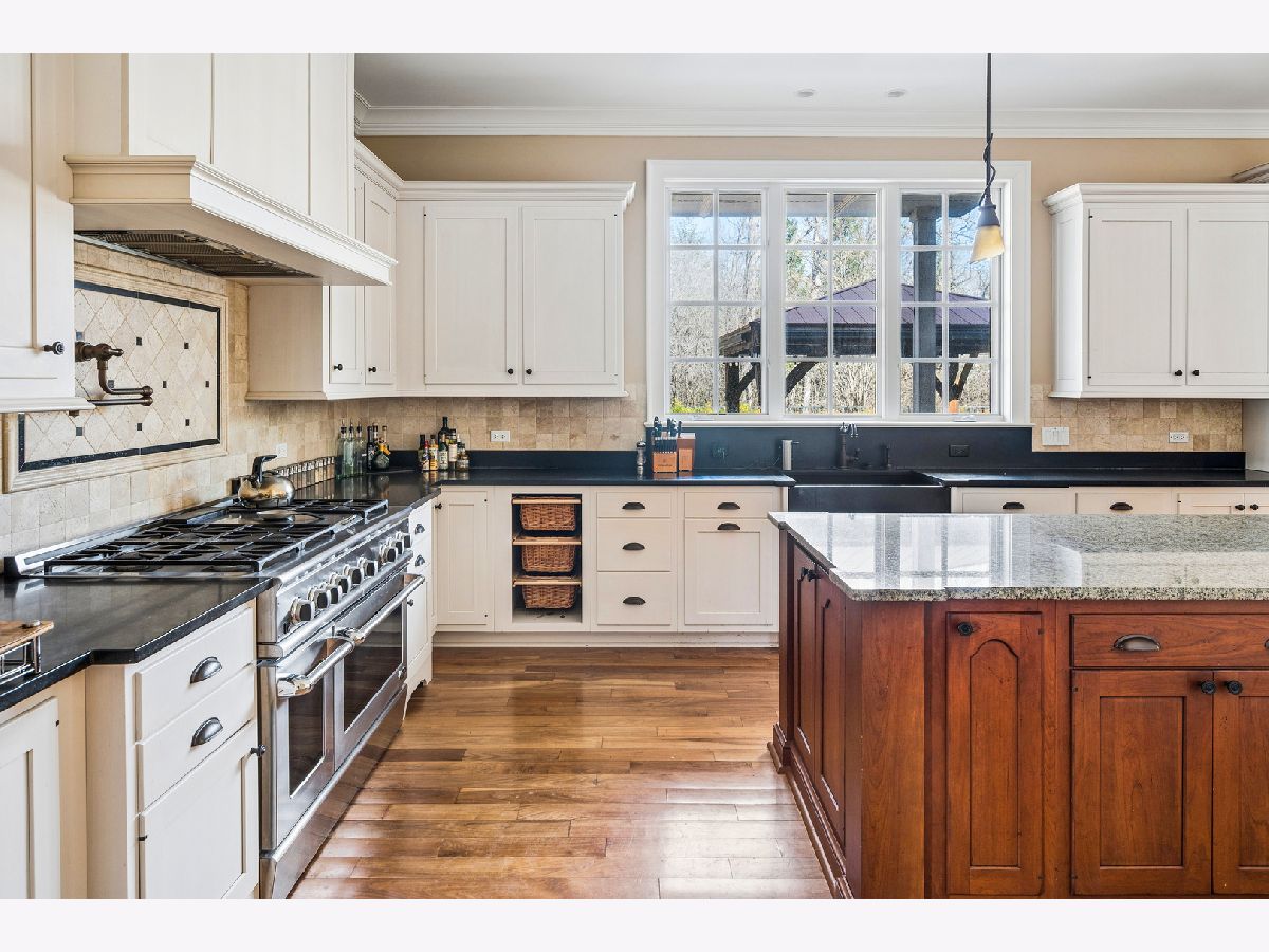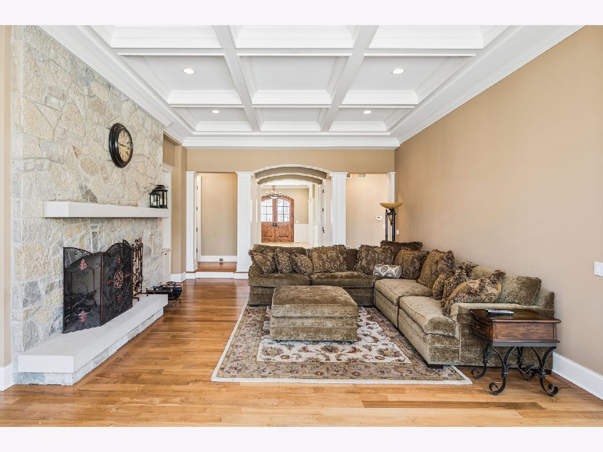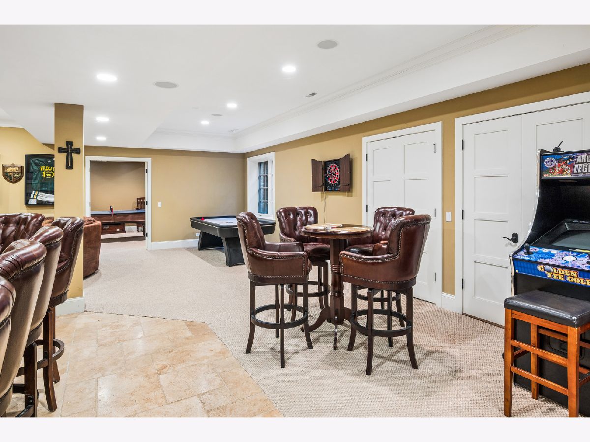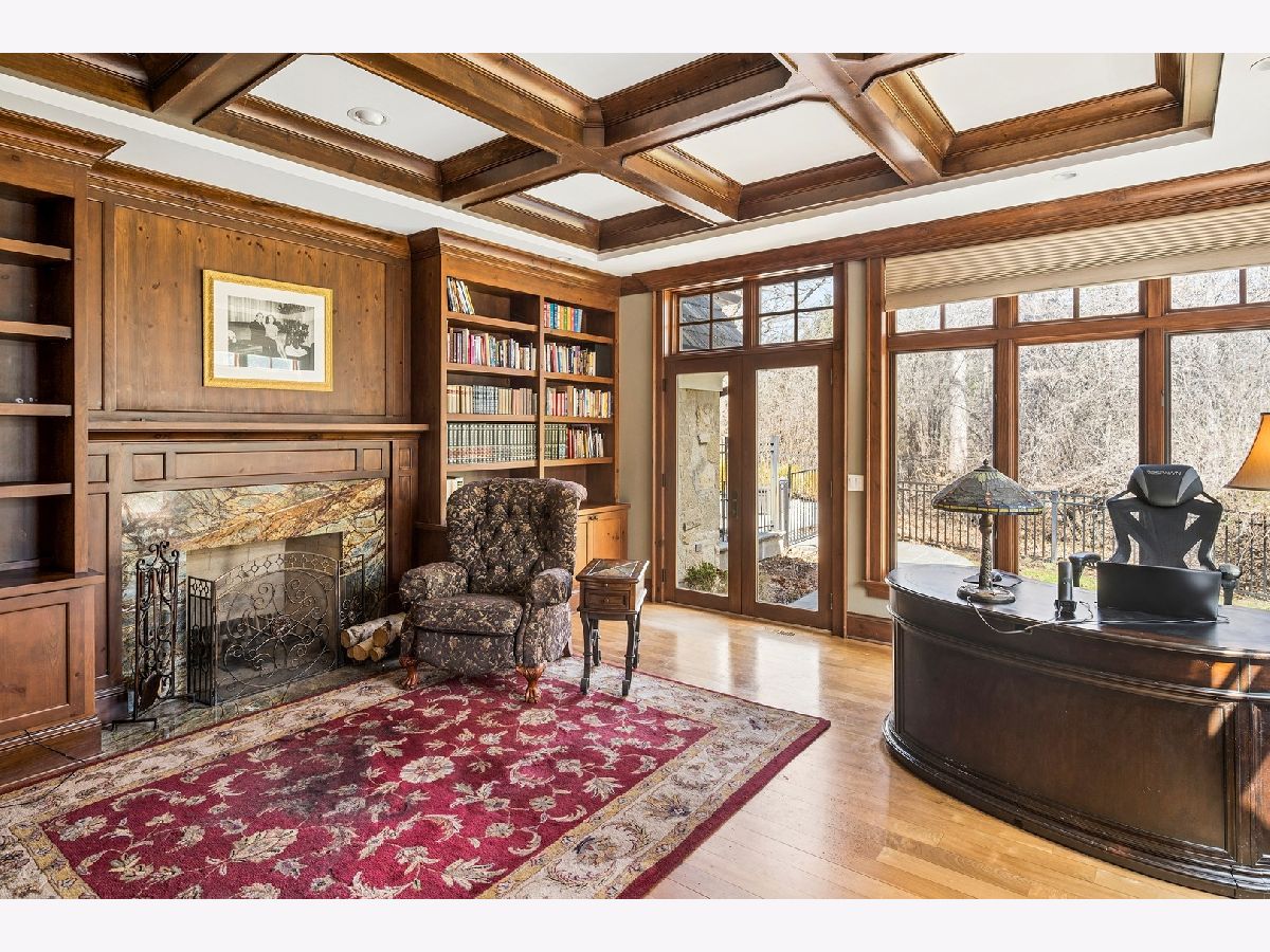 This exceptional coastal-inspired estate, built in 2008 to the highest standards, offers a rare blend of luxury, comfort, and privacy on two beautifully landscaped acres with a serene natural pond. Designed for both everyday living and gracious entertaining, the home showcases expansive indoor and outdoor spaces, including a wraparound porch, screened porch, and 40'x16' saltwater swimming pool-perfect for relaxing while taking in the tranquil surroundings. Inside, magnificent architectural details abound, including soaring ceilings, exquisite millwork, hardwood floors, a dramatic circular staircase, extensive custom built-ins, and six masonry fireplaces that add warmth, character, and timeless appeal. The gracious foyer is flanked by the formal living and dining rooms, while a stunning front-to-rear sightline draws you through to the spacious step-down family room with coffered ceiling, fireplace and built-in bookcases; it is an impressive introduction to the home's thoughtful design. A richly appointed library, featuring handsome pine paneling, a coffered ceiling, and fireplace, is tucked into a quiet corner with access to the rear grounds, offering a perfect retreat. At the heart of the home is an expertly designed chef's kitchen with tall custom cabinetry, granite countertops, premium appliances, a large center island, and an expansive walk-in pantry. The kitchen opens seamlessly to a warm and inviting hearth room, creating an ideal eating area. A nearby beverage station and generous butler's pantry further enhance the home's exceptional entertaining capabilities. There are five spacious en-suite bedrooms, including four on the second level and one in the walk-out lower level, providing comfort and privacy for both family and guests. The primary suite is incredible! It has a luxurious bedroom with fireplace, a sitting room with balcony access, a massive walk-in closet, and a light-filled bathroom with dual vanities, heated floors (NuHeat), a freestanding jetted tub, and a deluxe marble shower with steam and multiple spray heads. The fully finished walk-out basement is an entertainer's dream, complete with a full bar, billiards room, two expansive recreation rooms, 1.5 bathrooms, a bedroom, and a second full kitchen-perfect for hosting on any scale. Additional highlights include a Creston lighting system, a well-appointed mudroom with an adjacent storage room, and an attached three-car garage. This is a rare opportunity to own a truly remarkable home, thoughtfully designed for comfortable living and unforgettable entertaining!