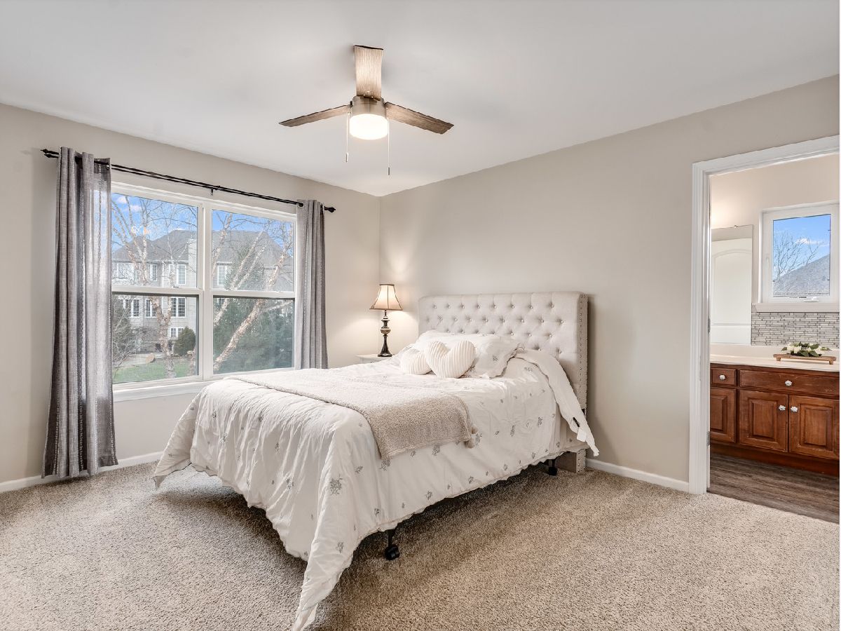 Beautifully updated and meticulously maintained home in the desirable Shenandoah subdivision, located on a quiet street with no through traffic. This spacious residence offers exceptional curb appeal with a wide driveway and a 3-car garage, along with thoughtful upgrades throughout that make it truly move-in ready. Step inside to a dramatic two-story foyer highlighted by an upgraded staircase with elegant metal spindles, setting the tone for the quality found throughout the home. Vaulted ceilings, newer hardwood flooring, and a freshly painted neutral palette create a bright, welcoming atmosphere. The spacious kitchen features stainless steel appliances-including a refrigerator with a see-through door option-staggered 42" cabinetry, a pantry, and a center island. A generous eating area opens to the spacious Family Room with a gas fireplace, providing a warm and inviting gathering space. The main level also includes a private first-floor den, ideal for a home office or flex space, along with a large laundry room complete with cabinetry and a utility sink. Upstairs, the primary suite is a true retreat, featuring a sitting area, cathedral ceiling, a walk-in closet with custom closet organizers, and a spa-like bath with a corner whirlpool tub and a double shower. Three additional generously sized bedrooms complete the second floor-two sharing a Jack & Jill bath, and a fourth bedroom with its own private en-suite. All bedrooms offer ceiling fans and ample closet space. The unfinished basement offers outstanding potential with roughed-in plumbing and two finished crawl spaces, ready for future expansion. Enjoy outdoor living in the private backyard with a paver brick patio, ideal for entertaining, along with professional landscaping and a newer fence. Major improvements provide peace of mind, including Roof (2019), HVAC (2022), water heater (2024), newer driveway, newer hardwood floors, updated staircase, upgraded stainless steel appliances, fresh interior paint, and a whole-house air filtration system. Ideally located close to downtown Plainfield, restaurants, walking trails, and shopping, with easy access to I-55 for commuting and travel, and within District 202 schools. This exceptional home offers space, style, and location-a must-see.