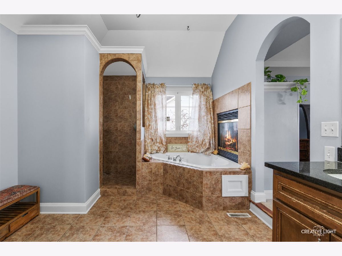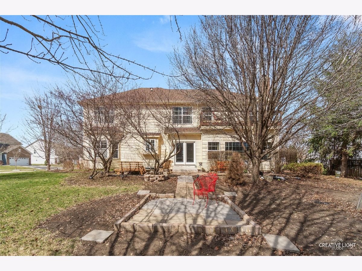 Quality built 5 bedroom, 4 bath home with 3 car garage situated on a corner lot with mature trees and backs to walking path. As you enter this custom home built by DJK, you are greeted by a 2 story entry with oak staircase and iron balusters, first floor office or sitting room and formal dining room with butlers pantry. The gourmet kitchen has a center island/breakfast bar, granite countertops, stainless steel appliances an abundance of cabinet and counter space open to the spacious family room with fireplace. The first floor includes a guest or in-law bedroom (this room has a WIC) next to a full bath. The primary suite features a two sided, direct vent fireplace, a huge walk-in closet divided into his and hers areas, a spa-like bathroom, and a balcony overlooking the back yard, additional bedrooms are all generously sized. The second floor also offers a bonus room with a balcony overlooking the foyer, a hall bath and a Jack and Jill bath. The full basement has a tall 9 ft ceiling and has been ROUGHED IN for PLUMBING for a future bathroom. Enjoy outdoor living with beautiful flowering and fruit trees, shrubs and flowers ,paver patio and fire pit, extended front porch. Recent updates include: newer roof, newer furnace and humidifier. Conveniently located near schools and shopping. Must see !