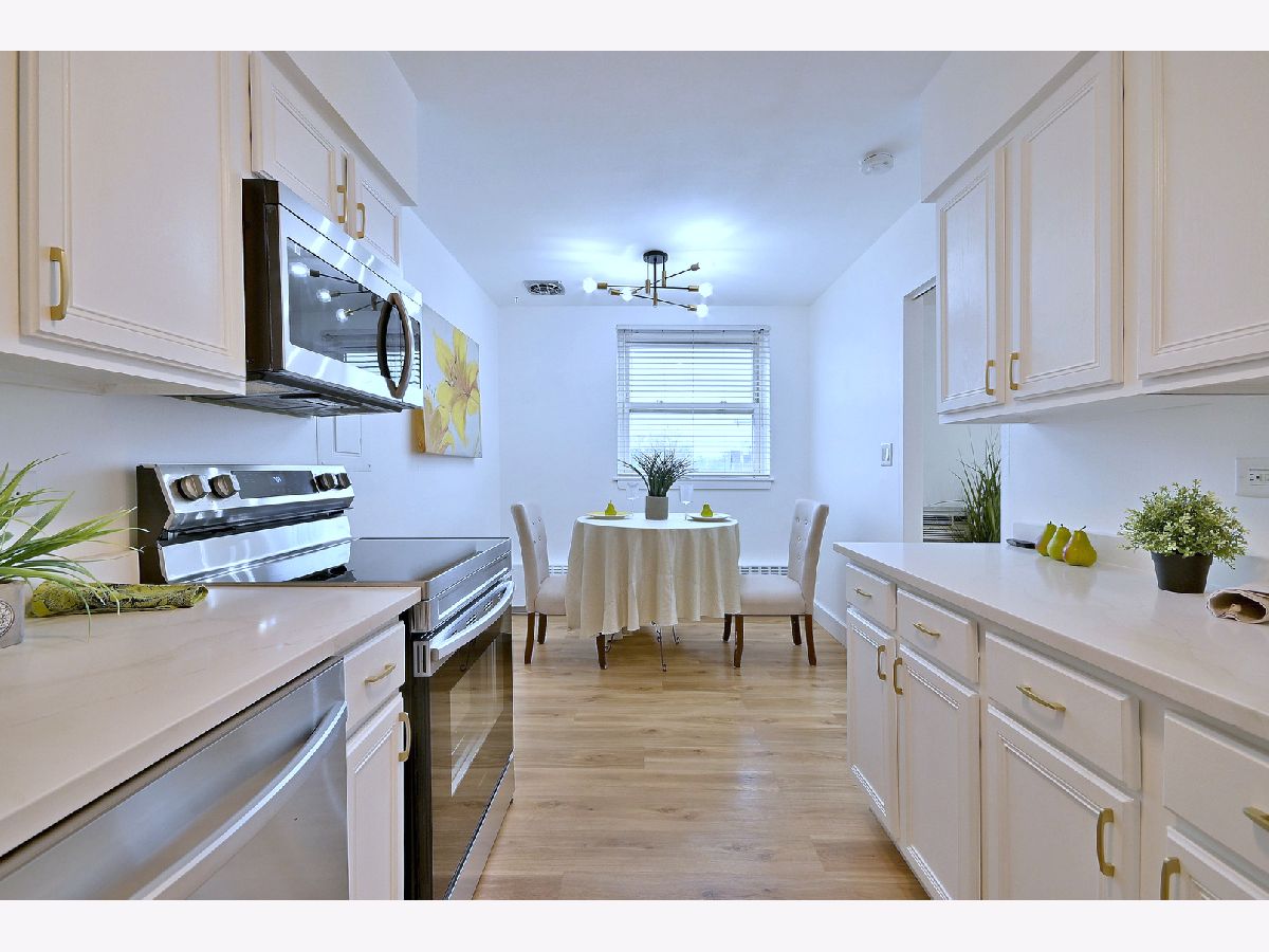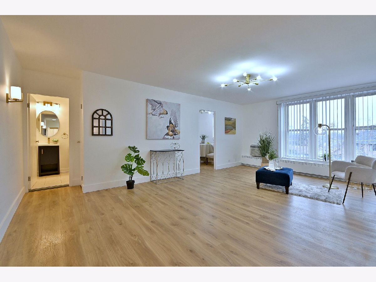 Welcome home to this bright, updated 2 bedroom, 1.5 bath condo offering 1200 sq ft of comfortable living in a prime Park Ridge location. Walk to schools, Metra, Uptown, the community pool, fitness centers, restaurants and more. This top-floor unit faces South and the residential area, not Touhy, with plenty of sun exposure. The building features an elevator, coin laundry, a ramp and assigned storage (#6). Inside you will find vinyl plank floors, quartz countertops and stainless steel appliances, including a dishwasher. Pets are welcome. Low monthly HOA includes heat and water. Exterior parking spot #56. Additional parking next to the building, with no permit required. Taxes do not reflect a home-owner's exemption (tax will decrease after a homeowners exemption is applied). Agent interest.